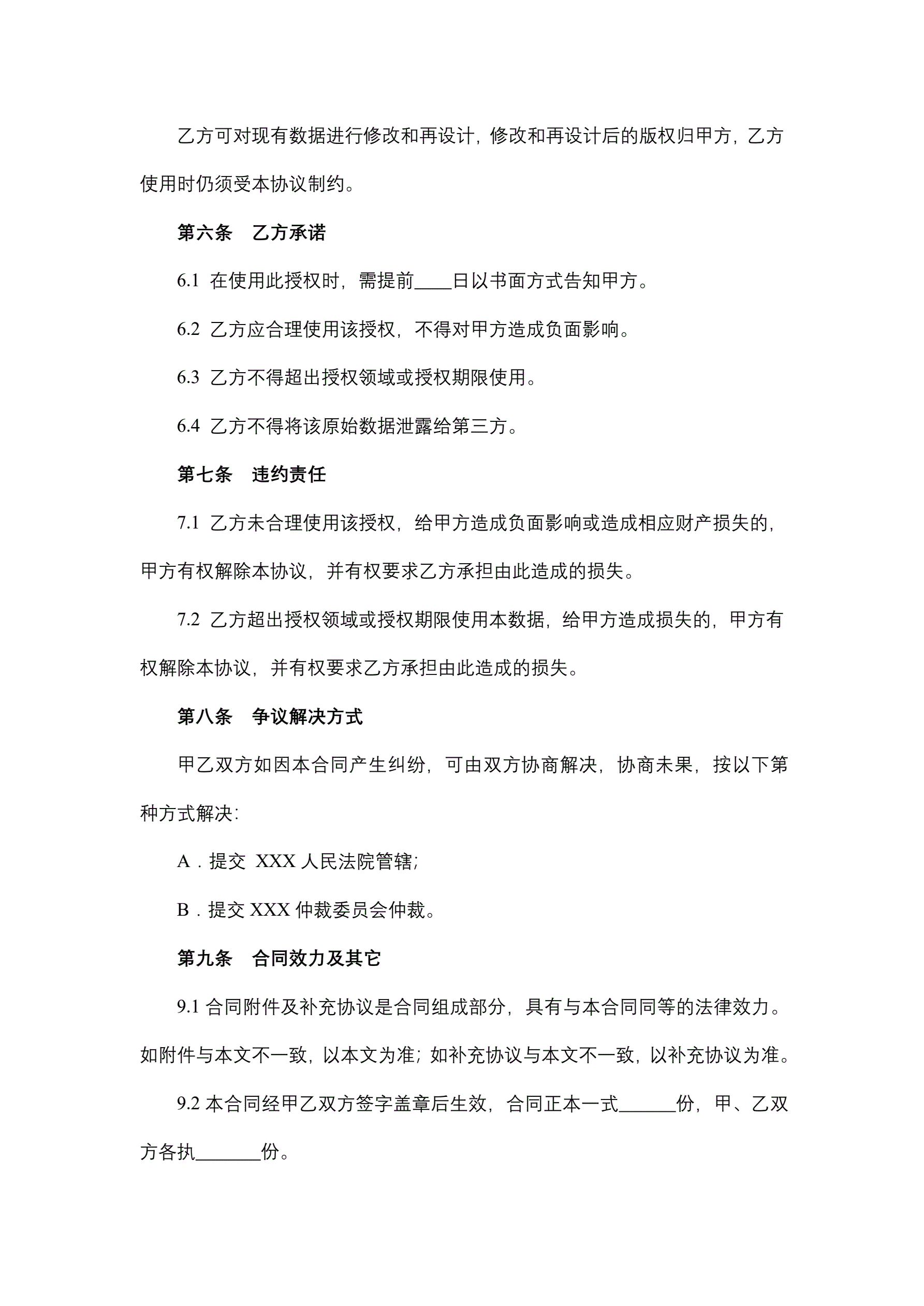 >XXXX数据使用授权协议