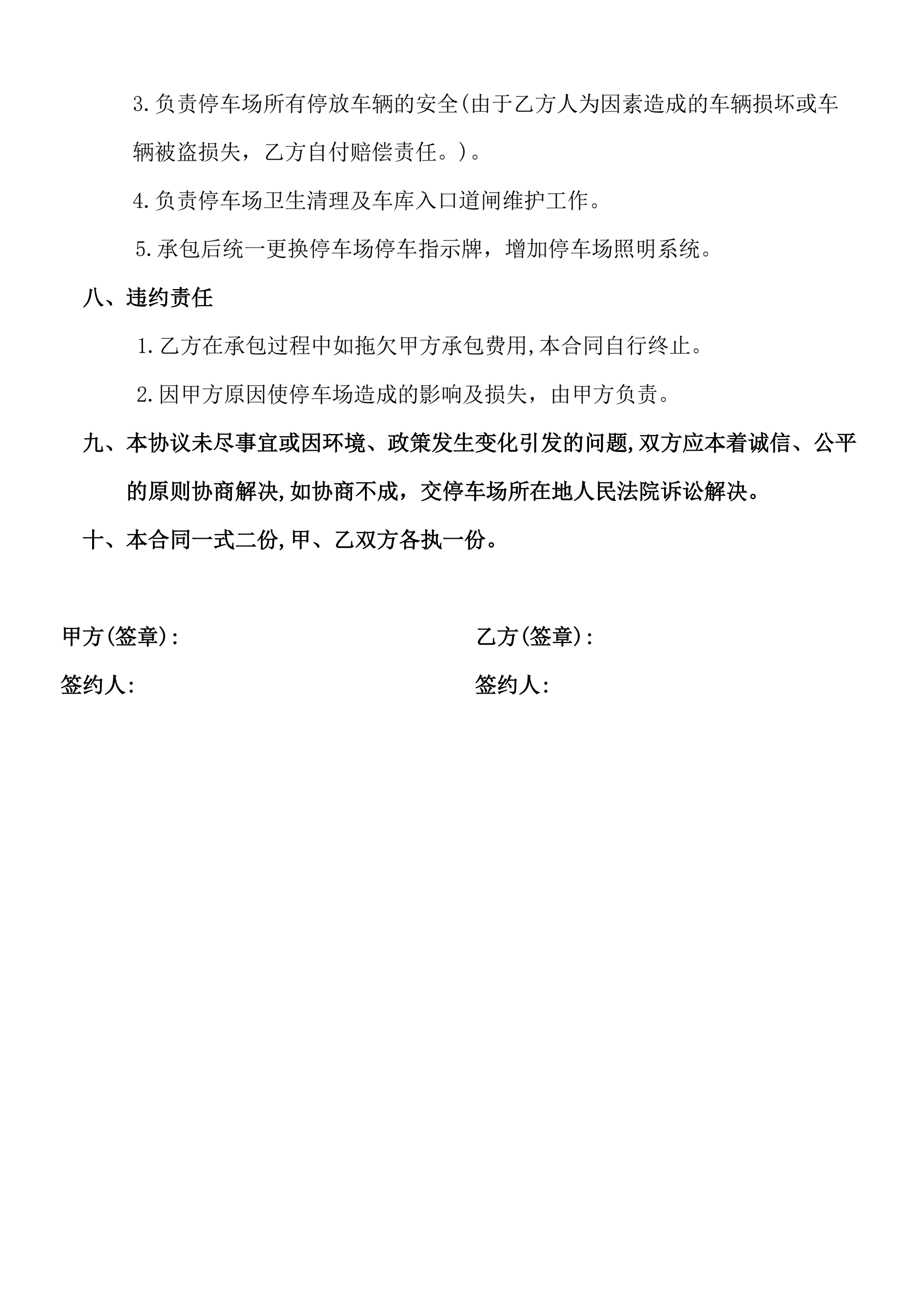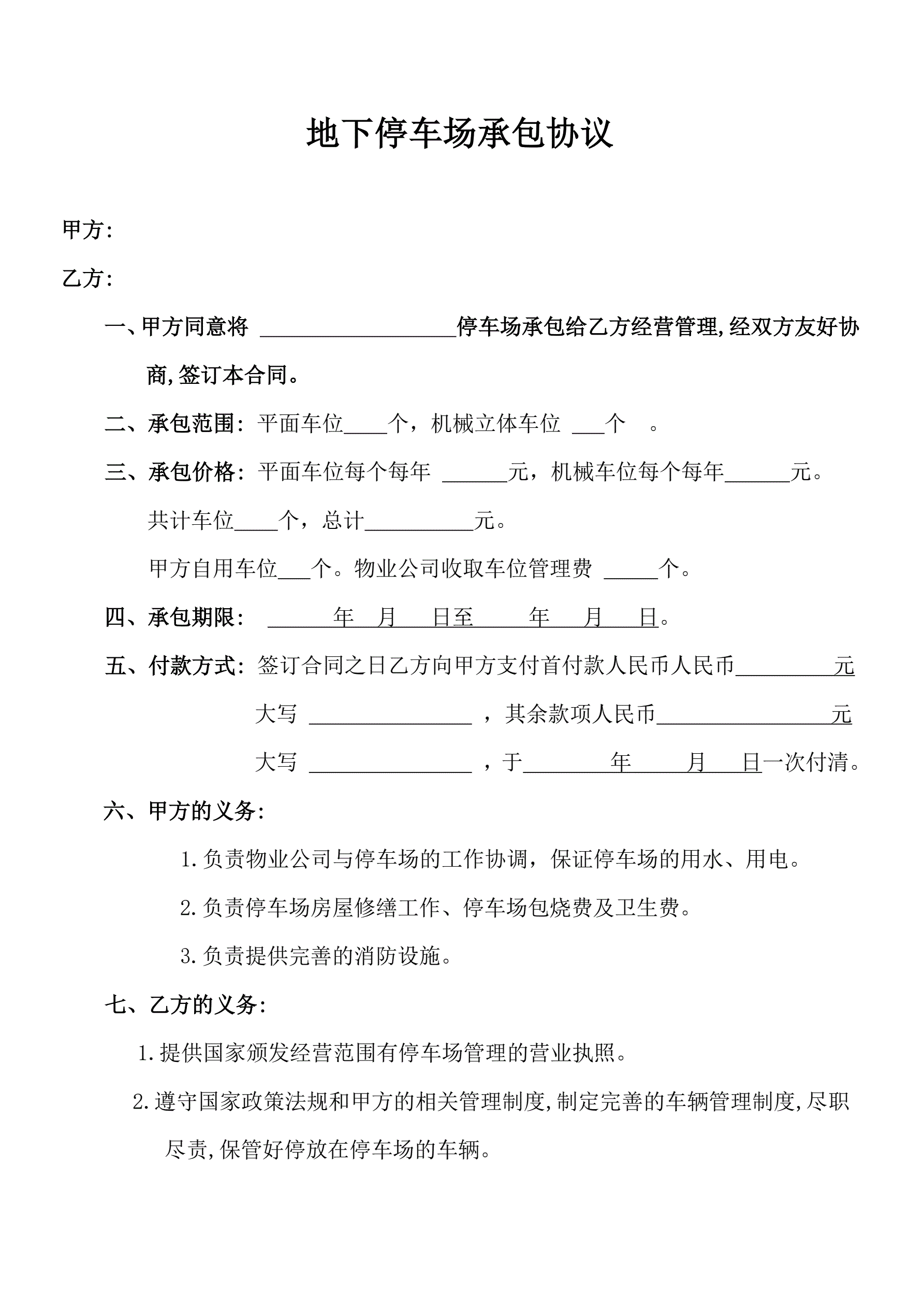 地下停车场承包合同