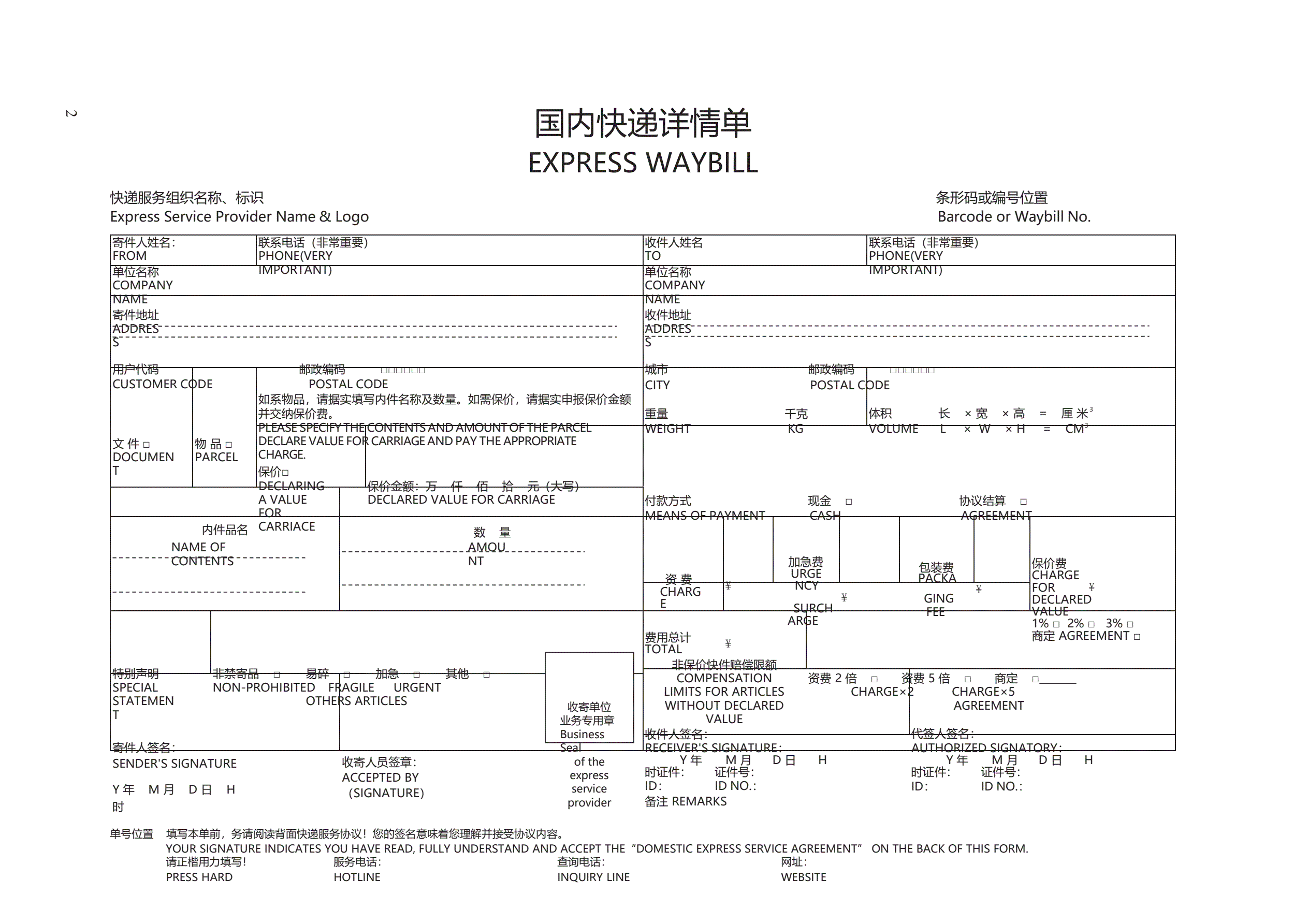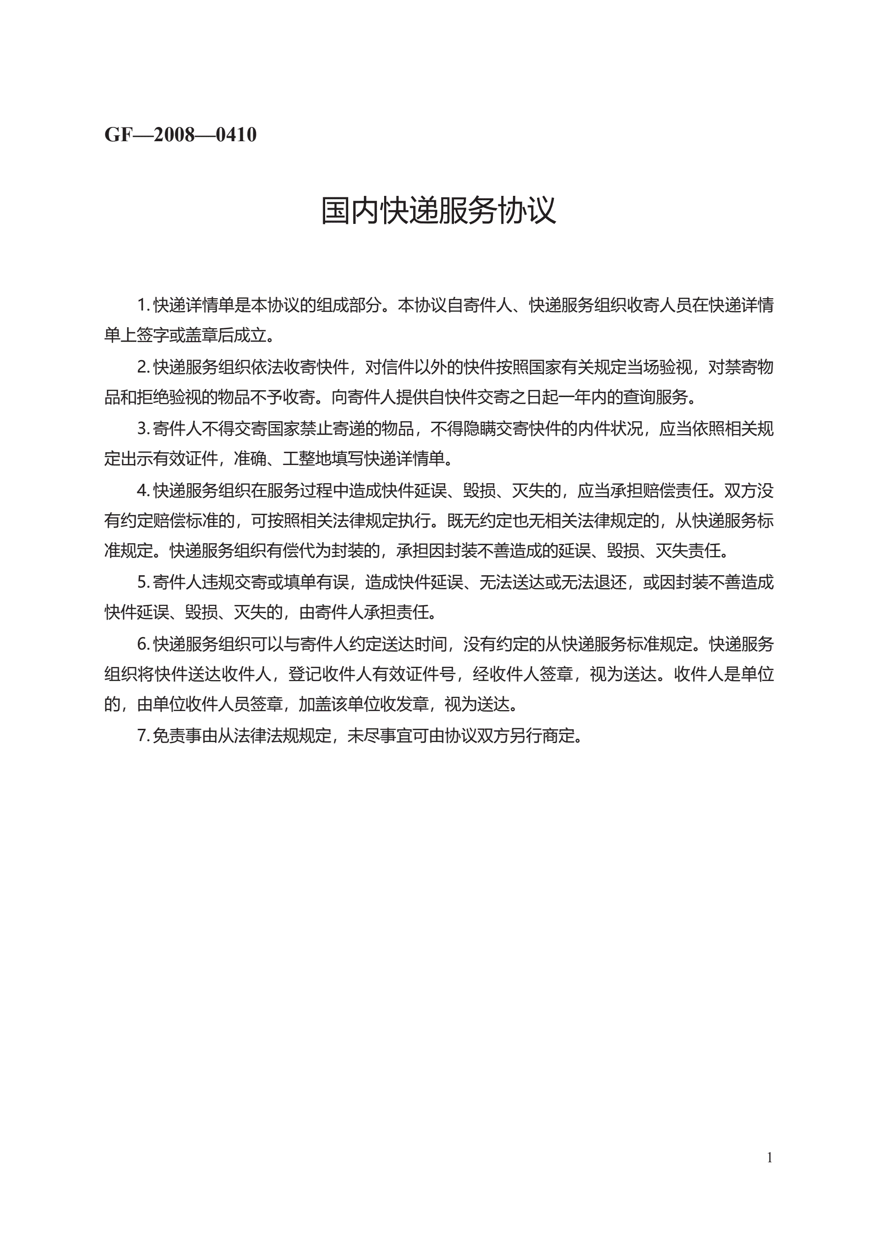 >国内快递服务协议 GF—2008—0410