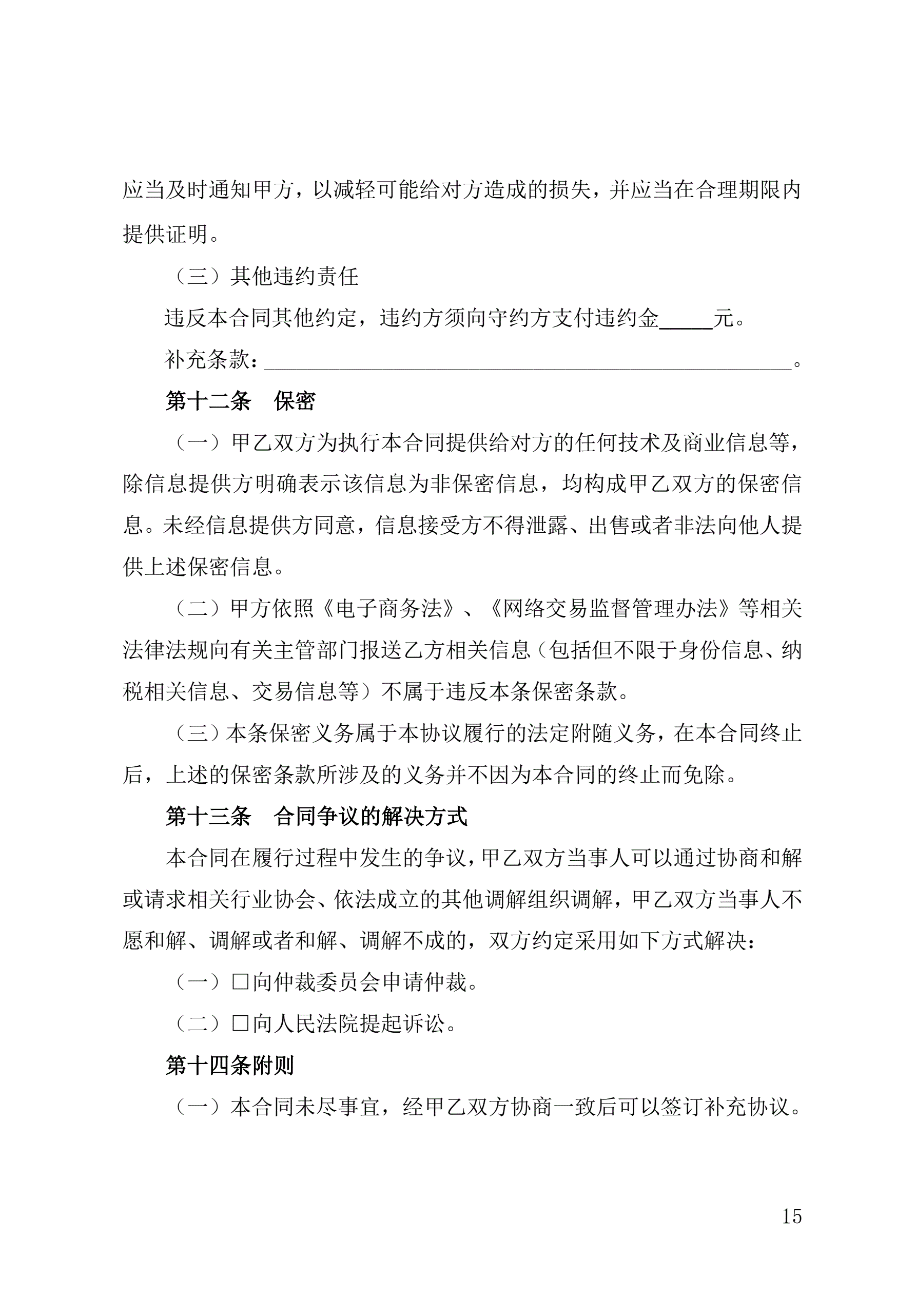 >新疆维吾尔自治区电商平台服务合同示范文本(原稿)-修订