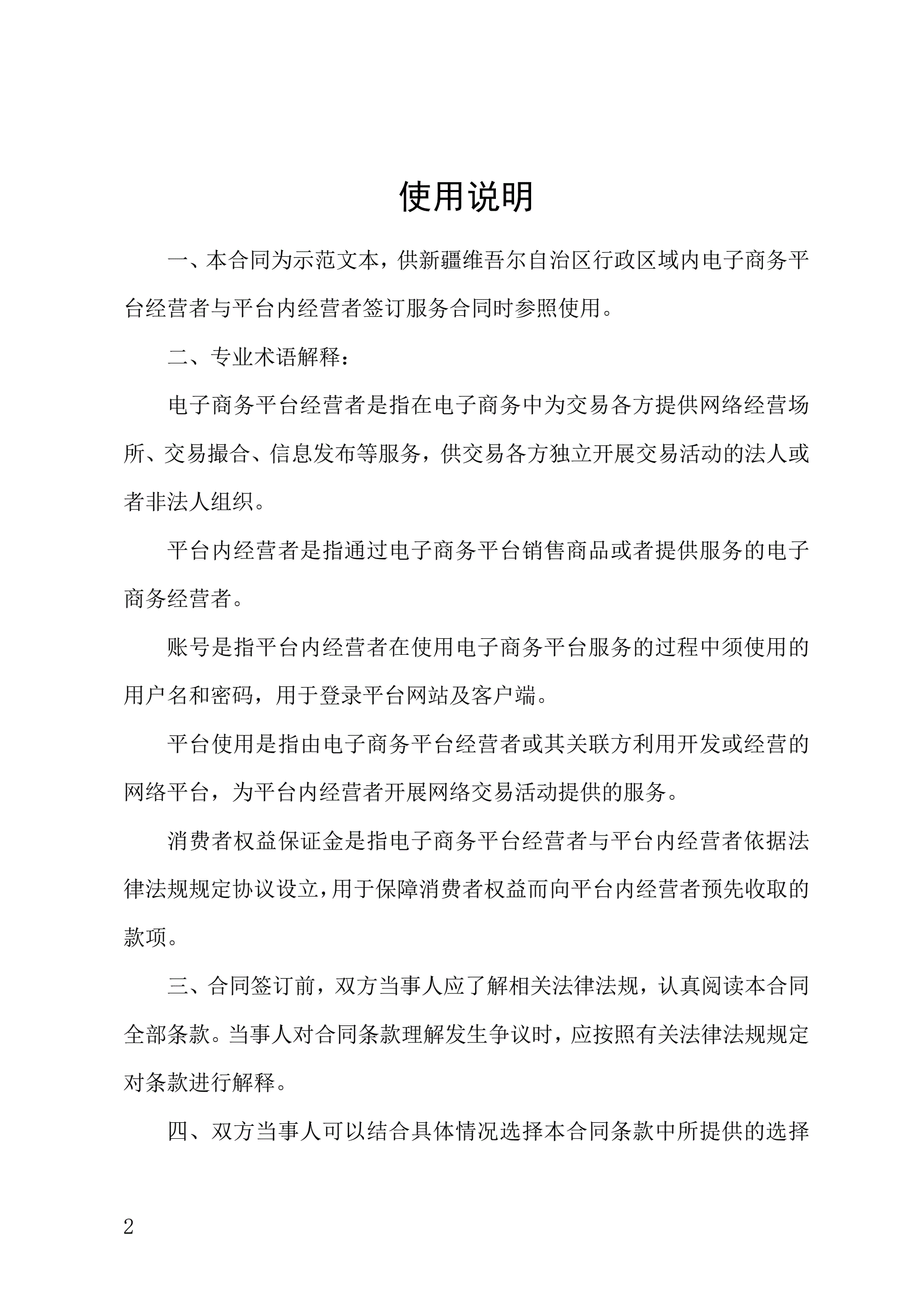 新疆维吾尔自治区电商平台服务合同示范文本(原稿)-修订