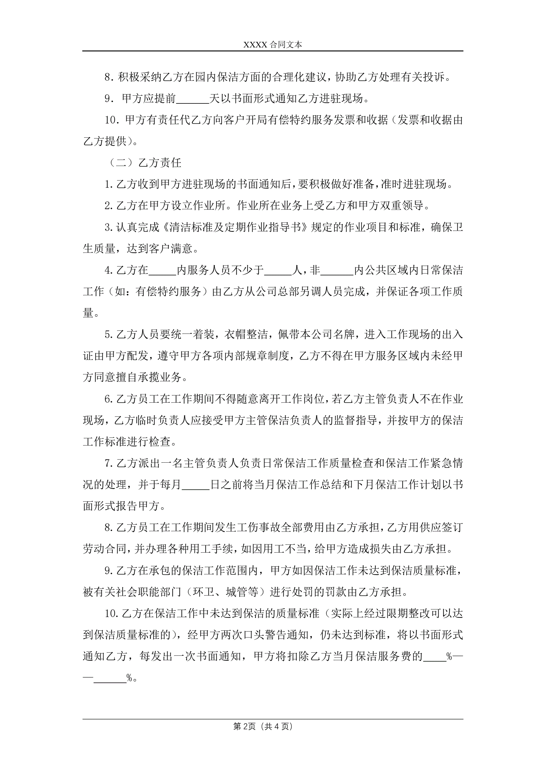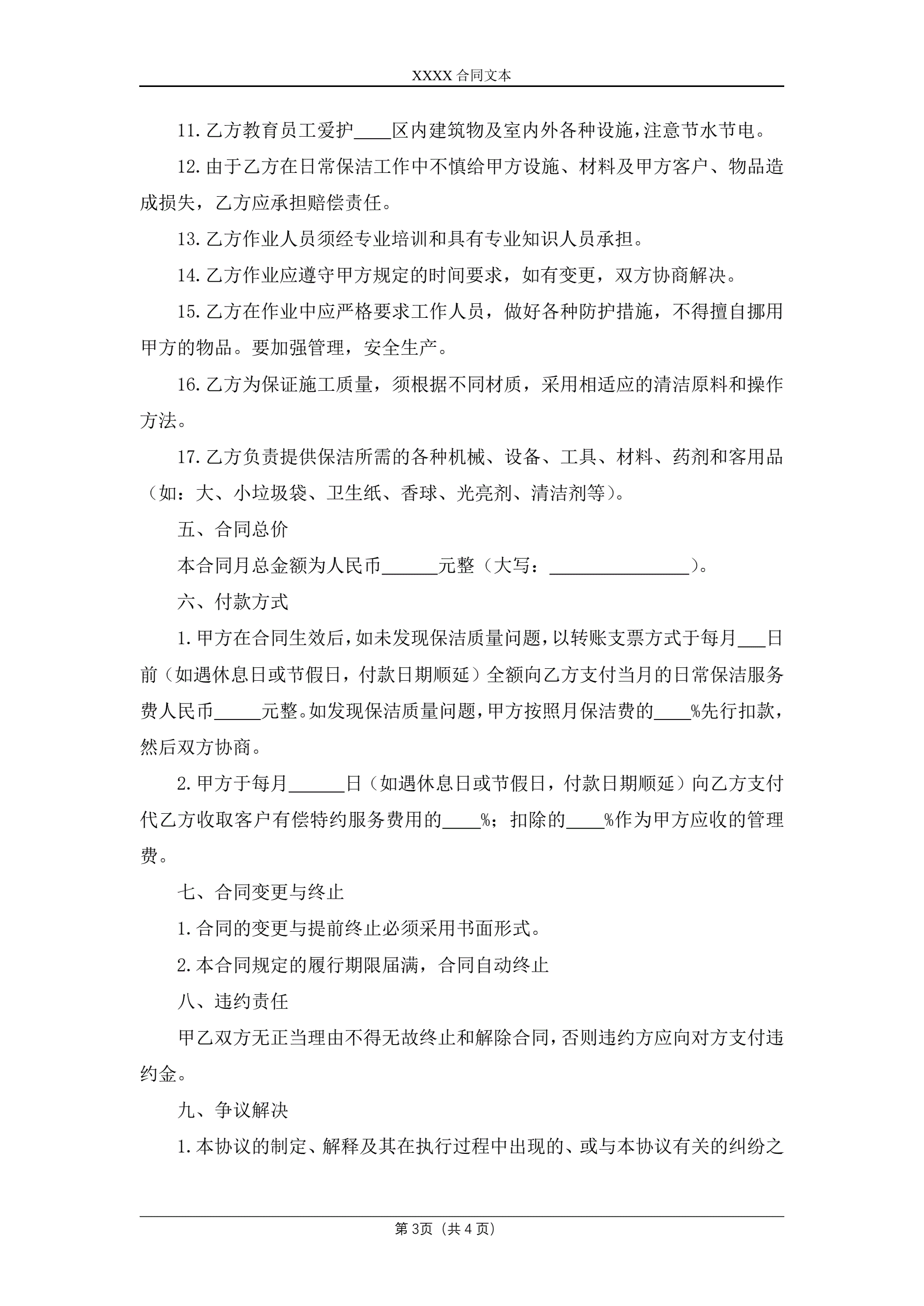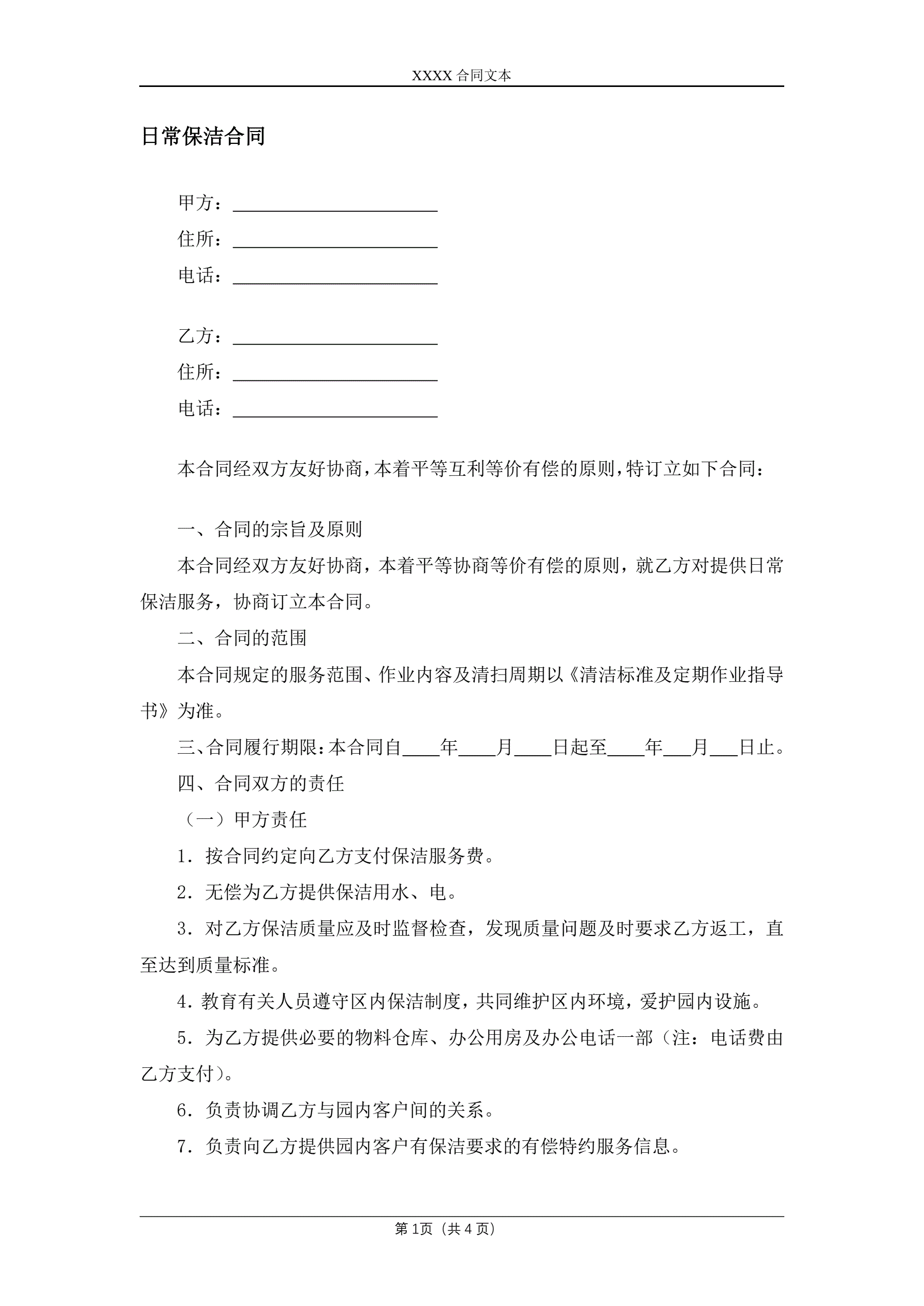 日常保洁合同