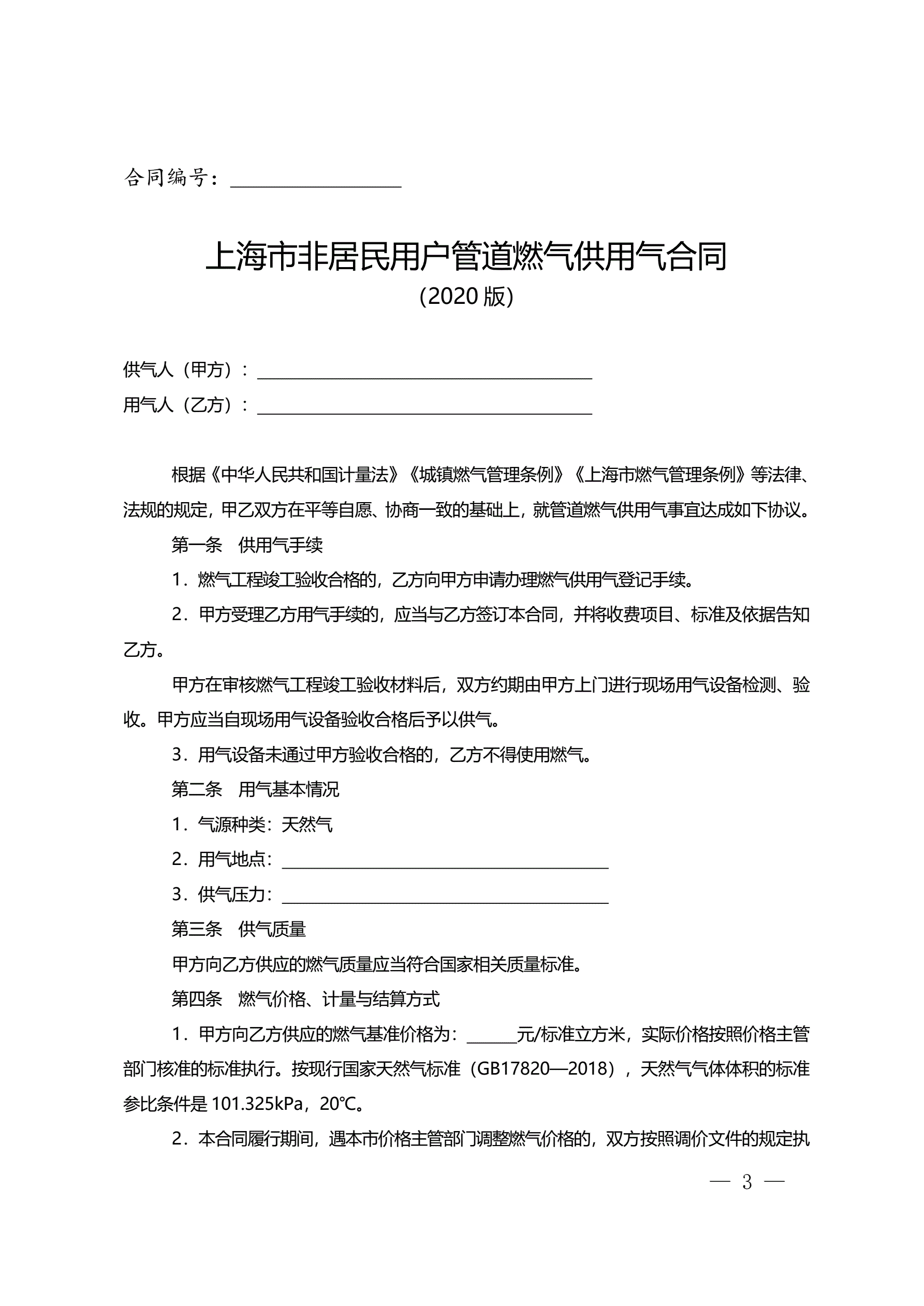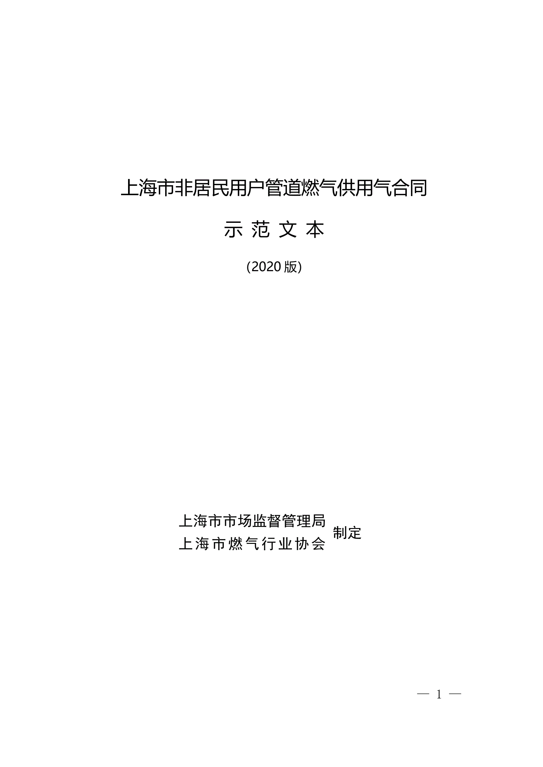 >上海市非居民用户管道燃气供用气合同示范文本(2020版)