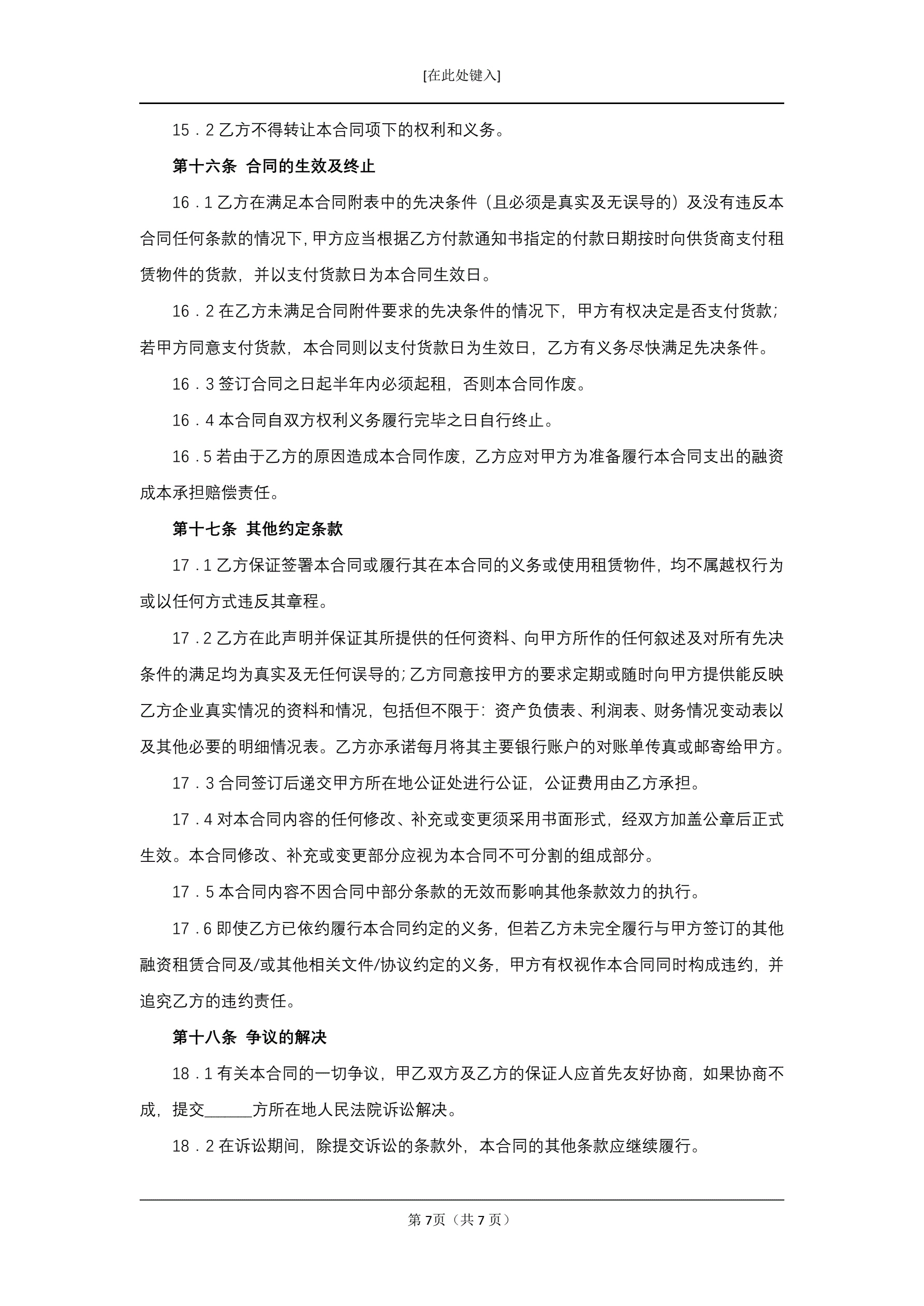 订购式融资租赁合同