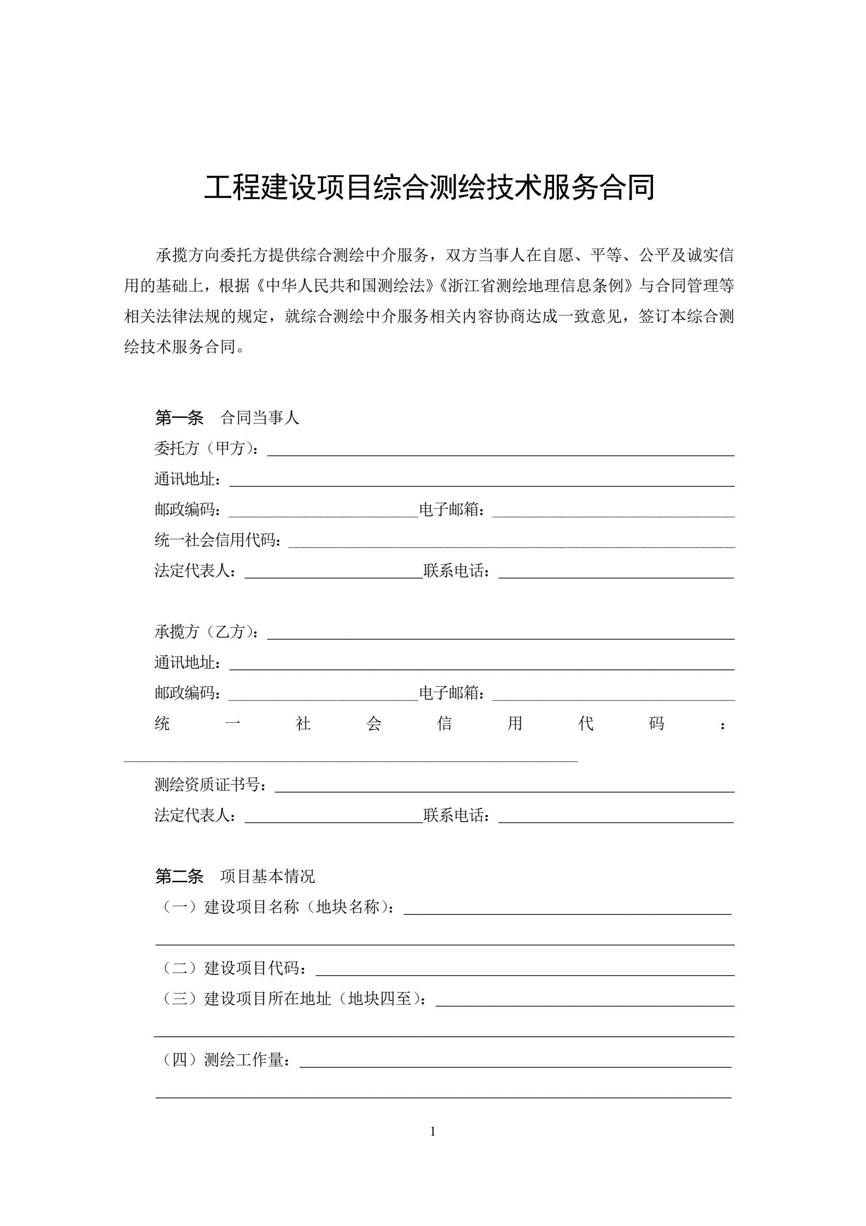 >浙江省工程建设项目综合测绘技术服务合同示范文本(2020版)