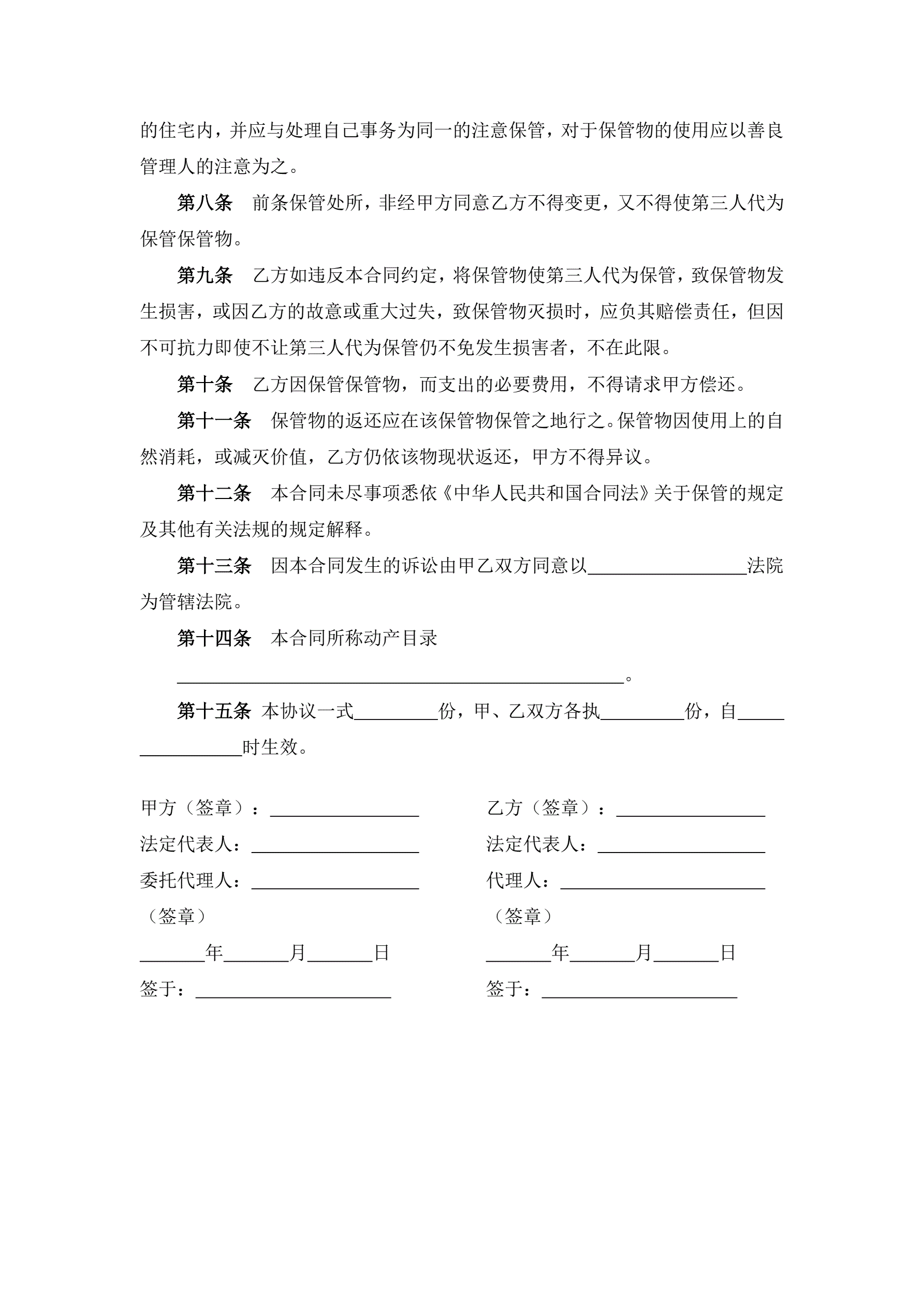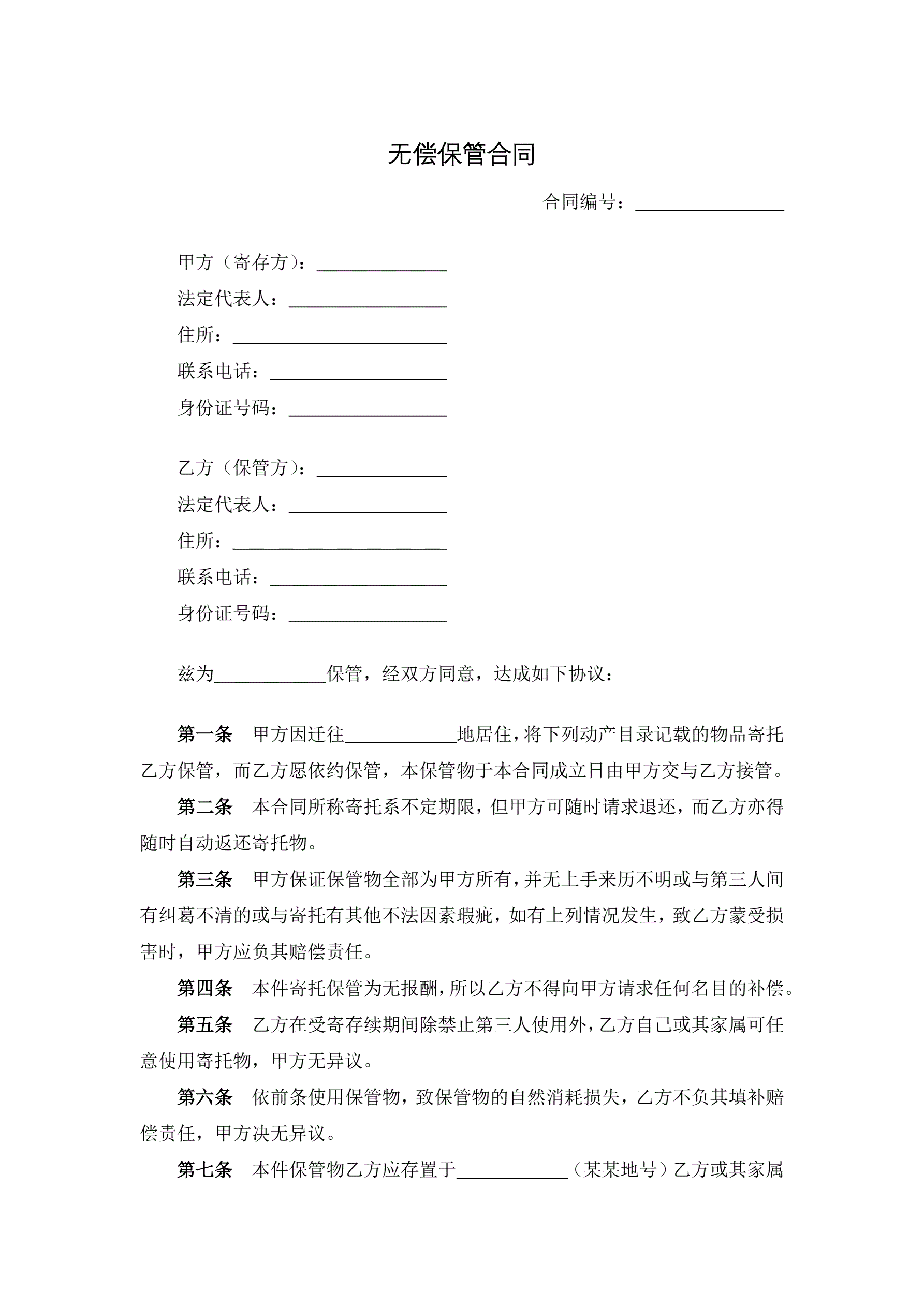 >无偿保管合同