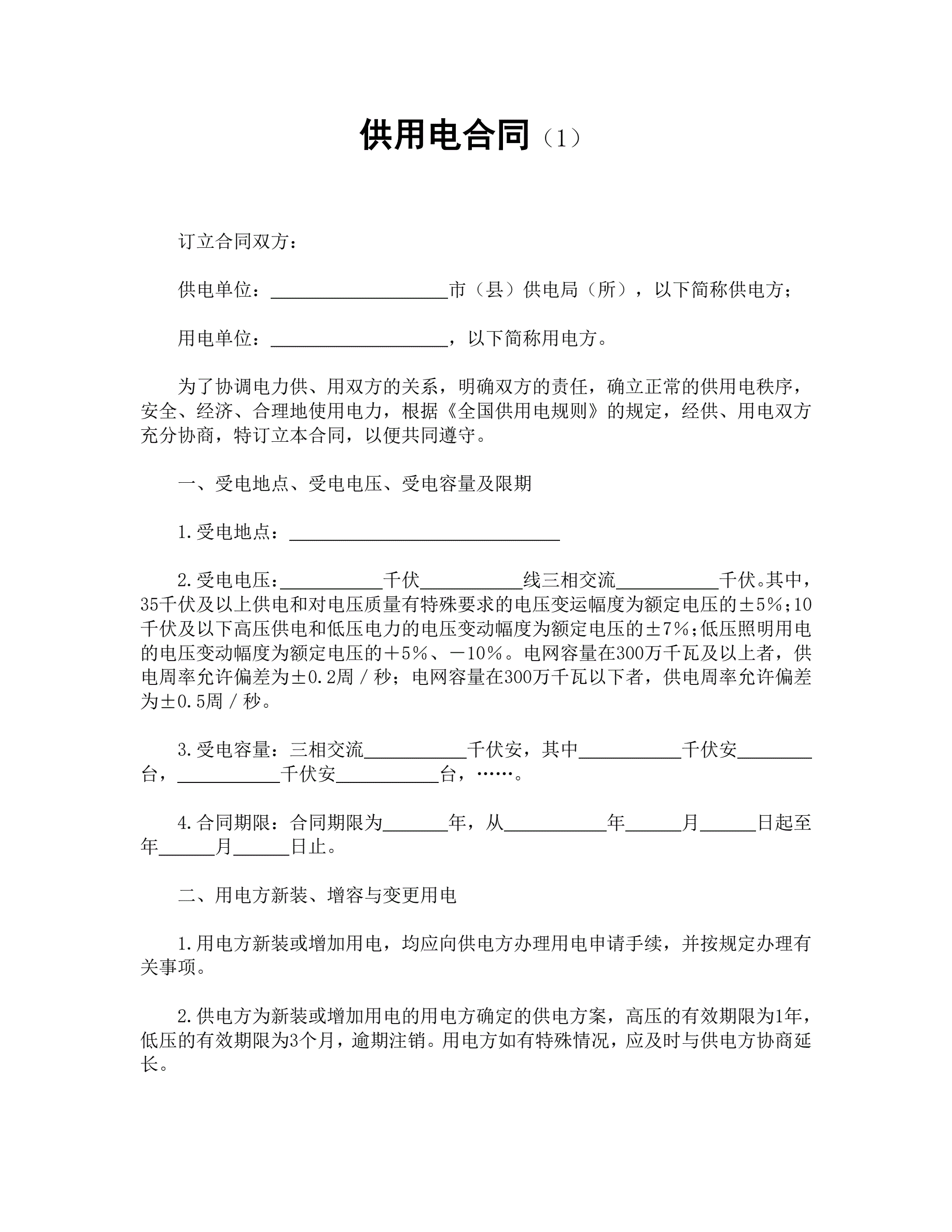 合同名称:供用电合同(1)