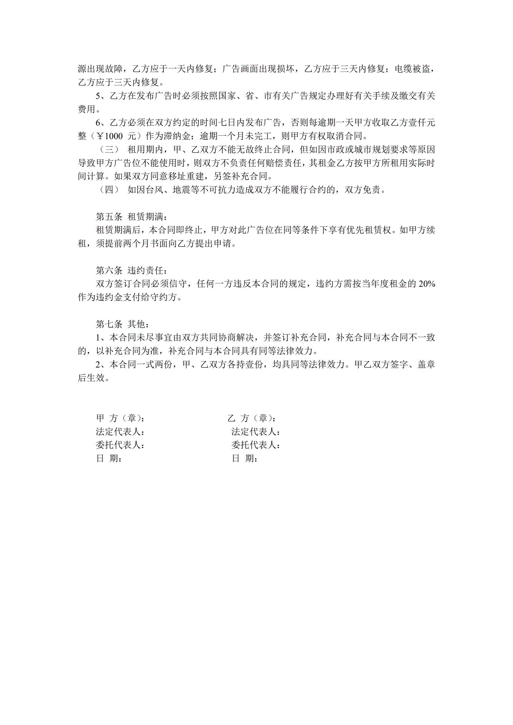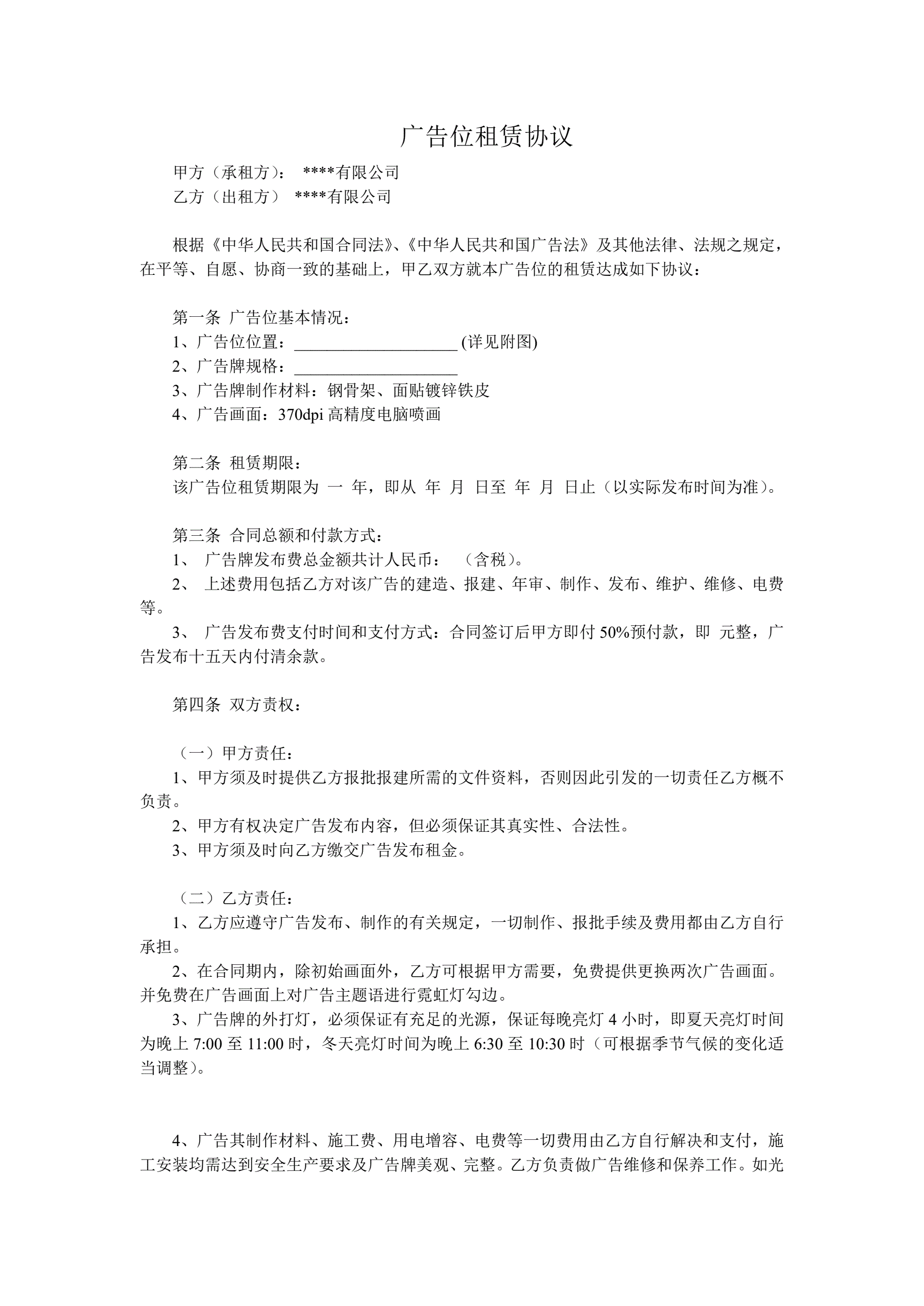 户外广告广告位租赁合同