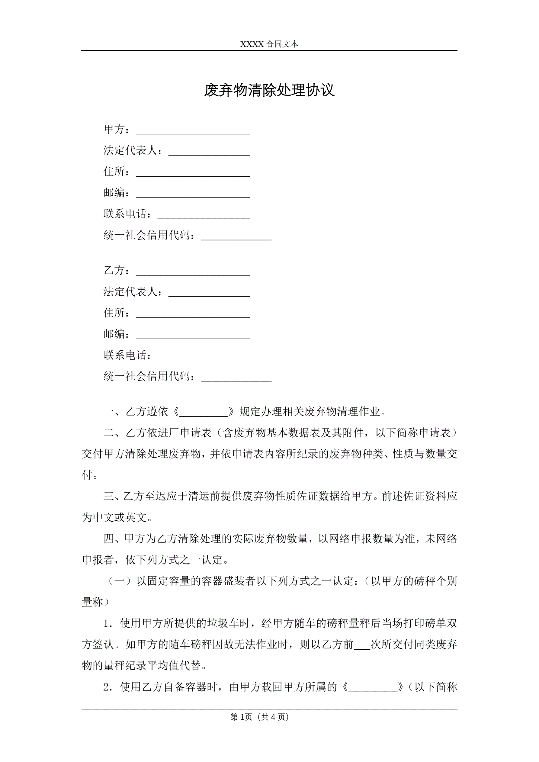 >废弃物清除处理协议