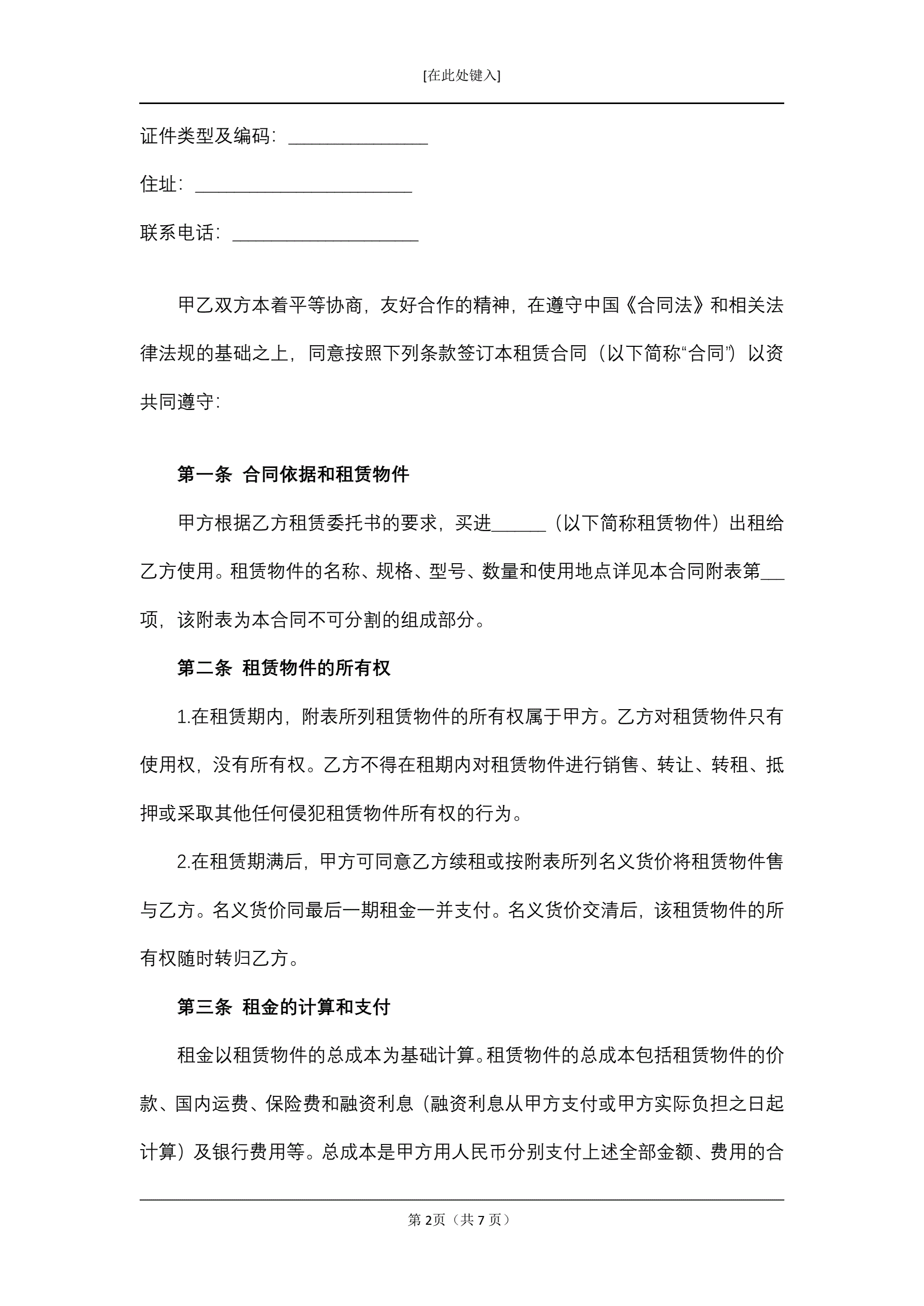 >融资租赁合同