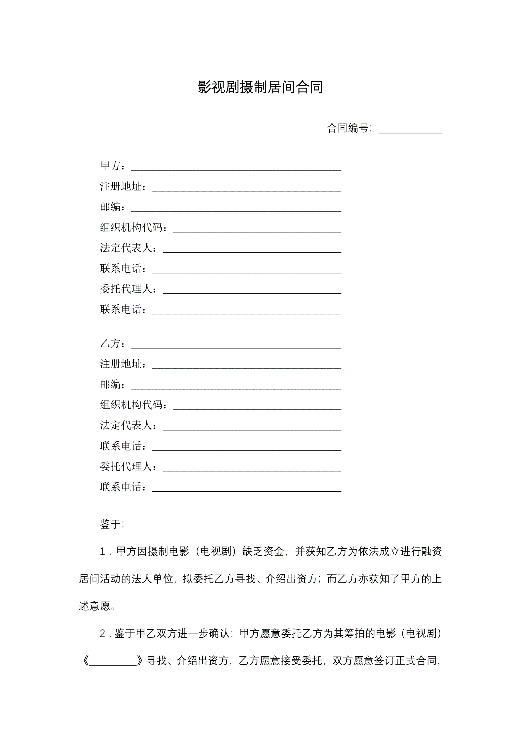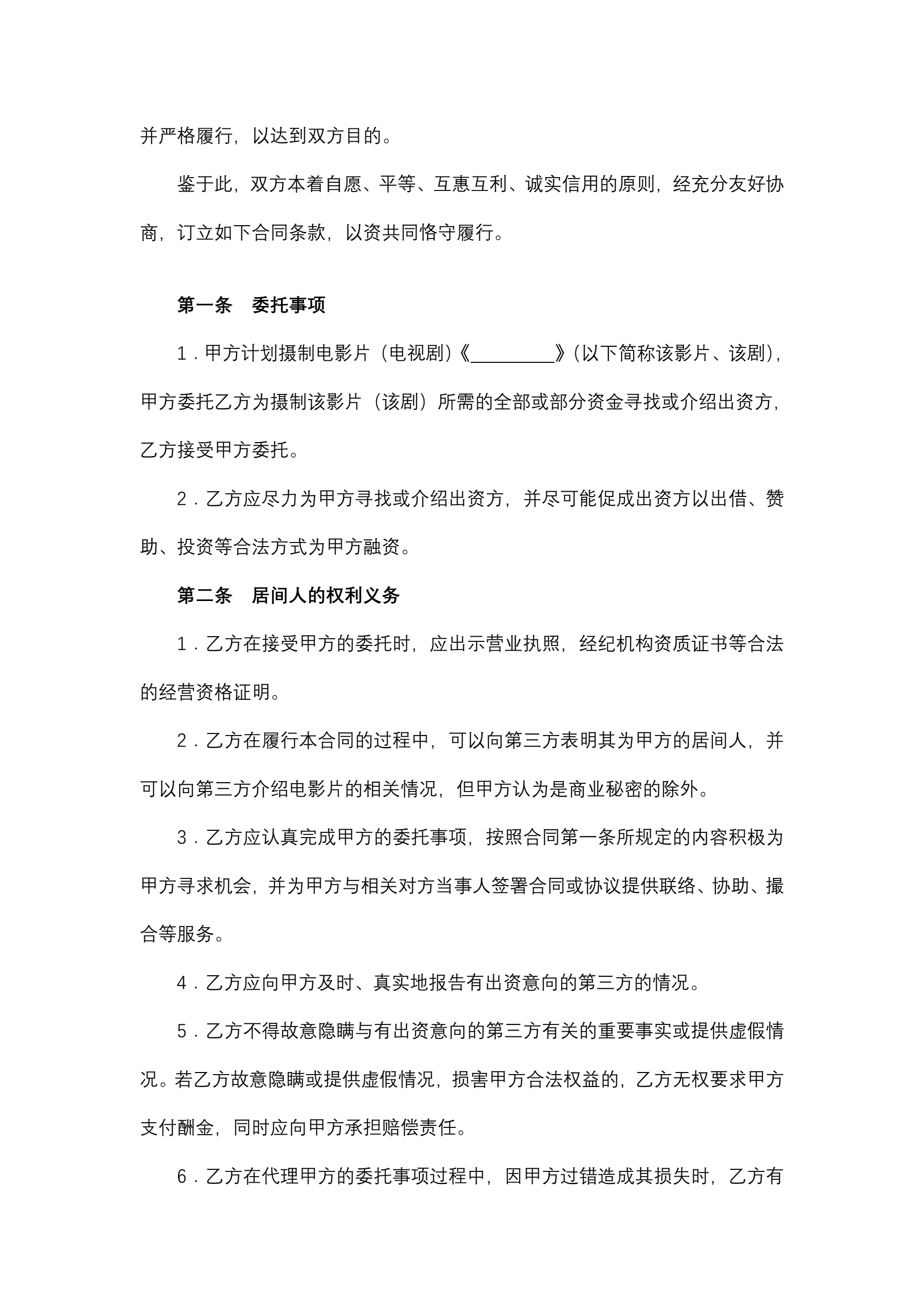 合同名称:影视剧摄制居间合同