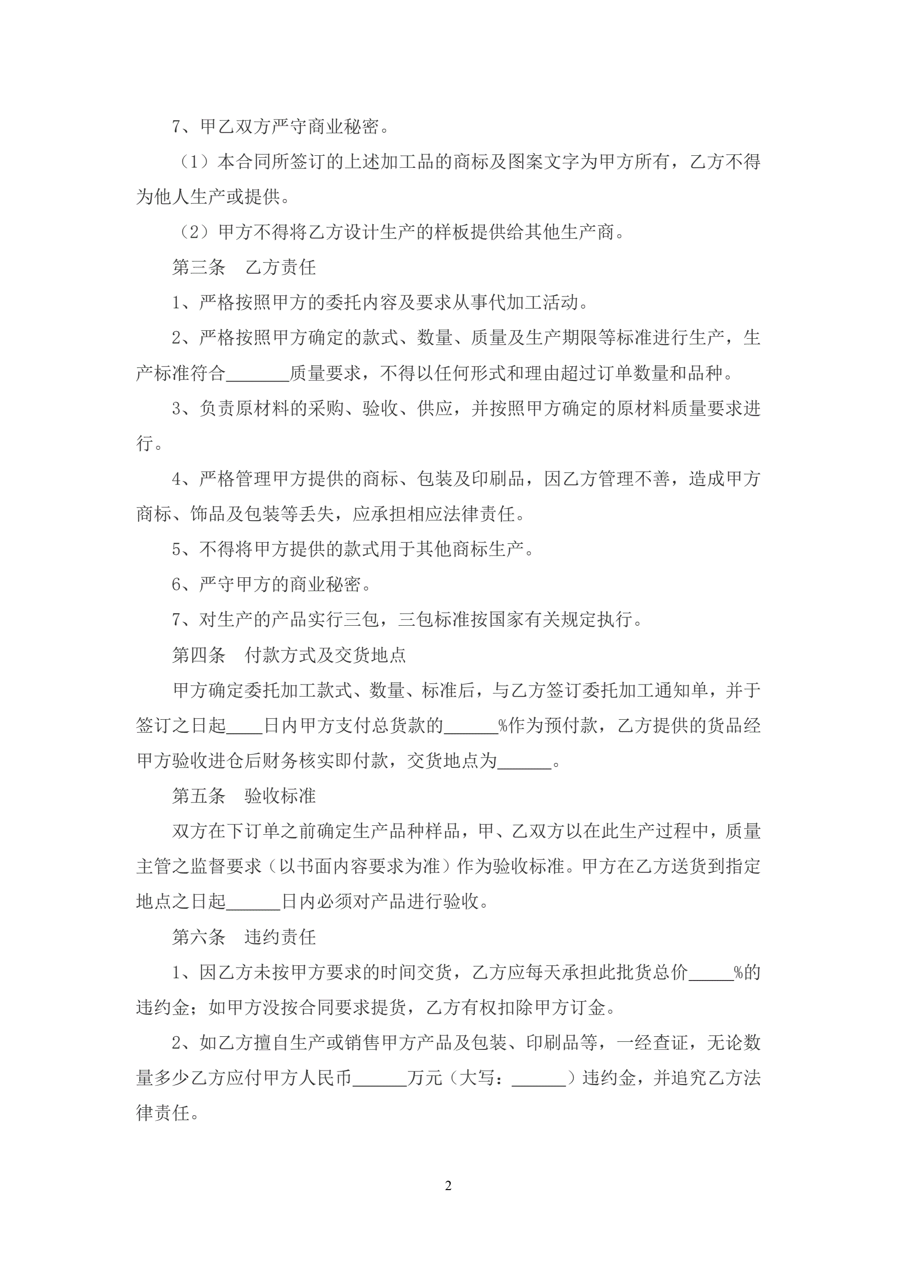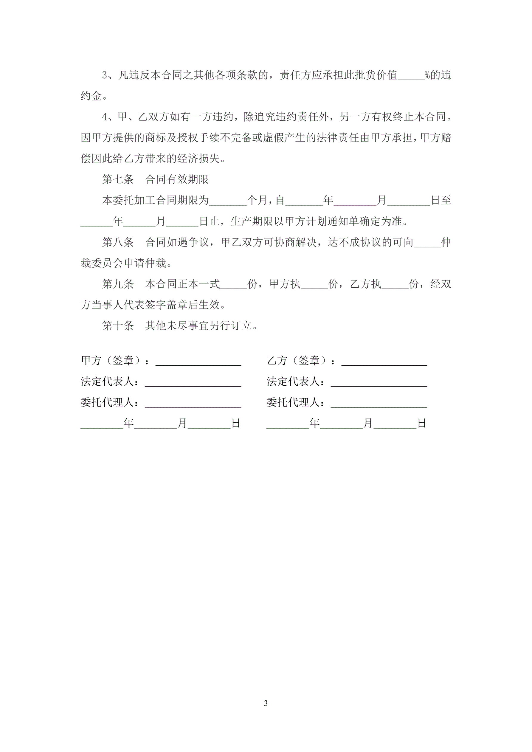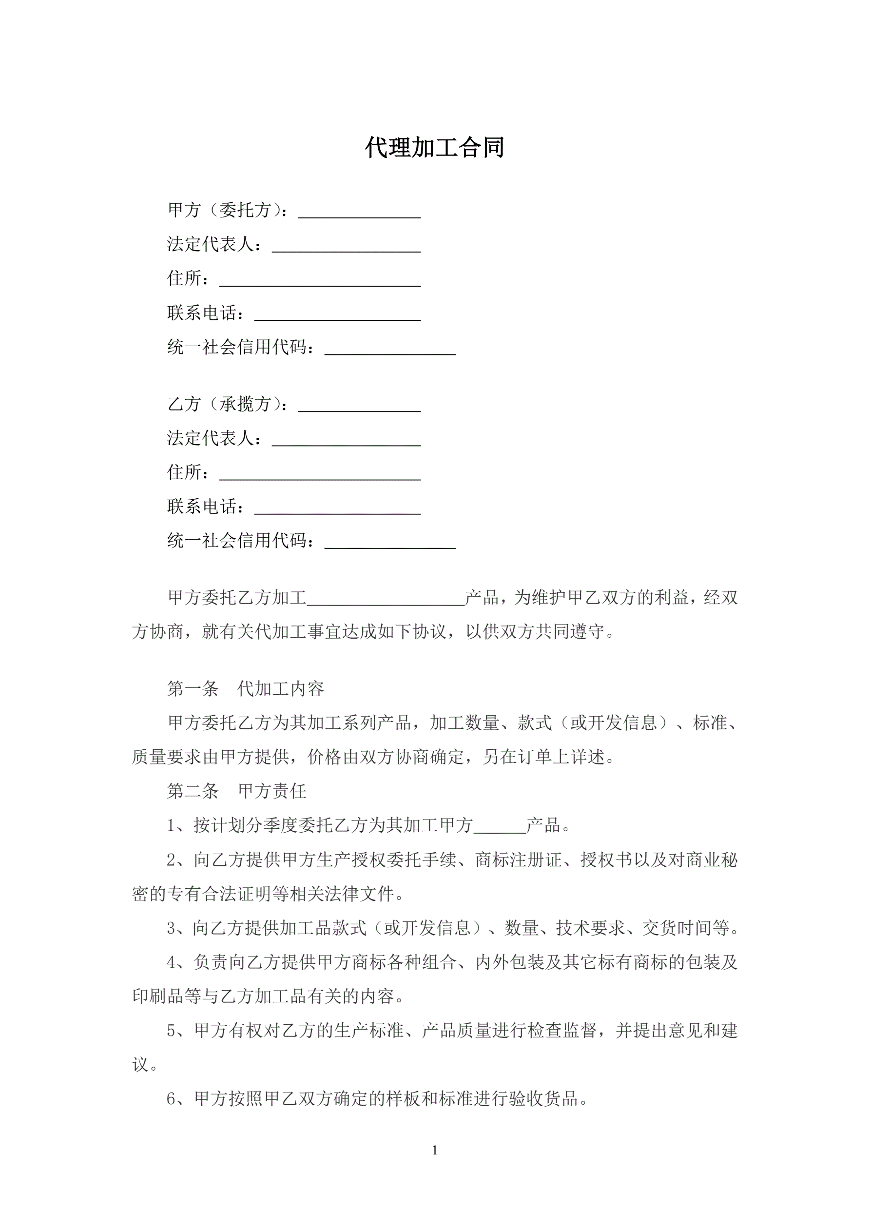 代理加工合同