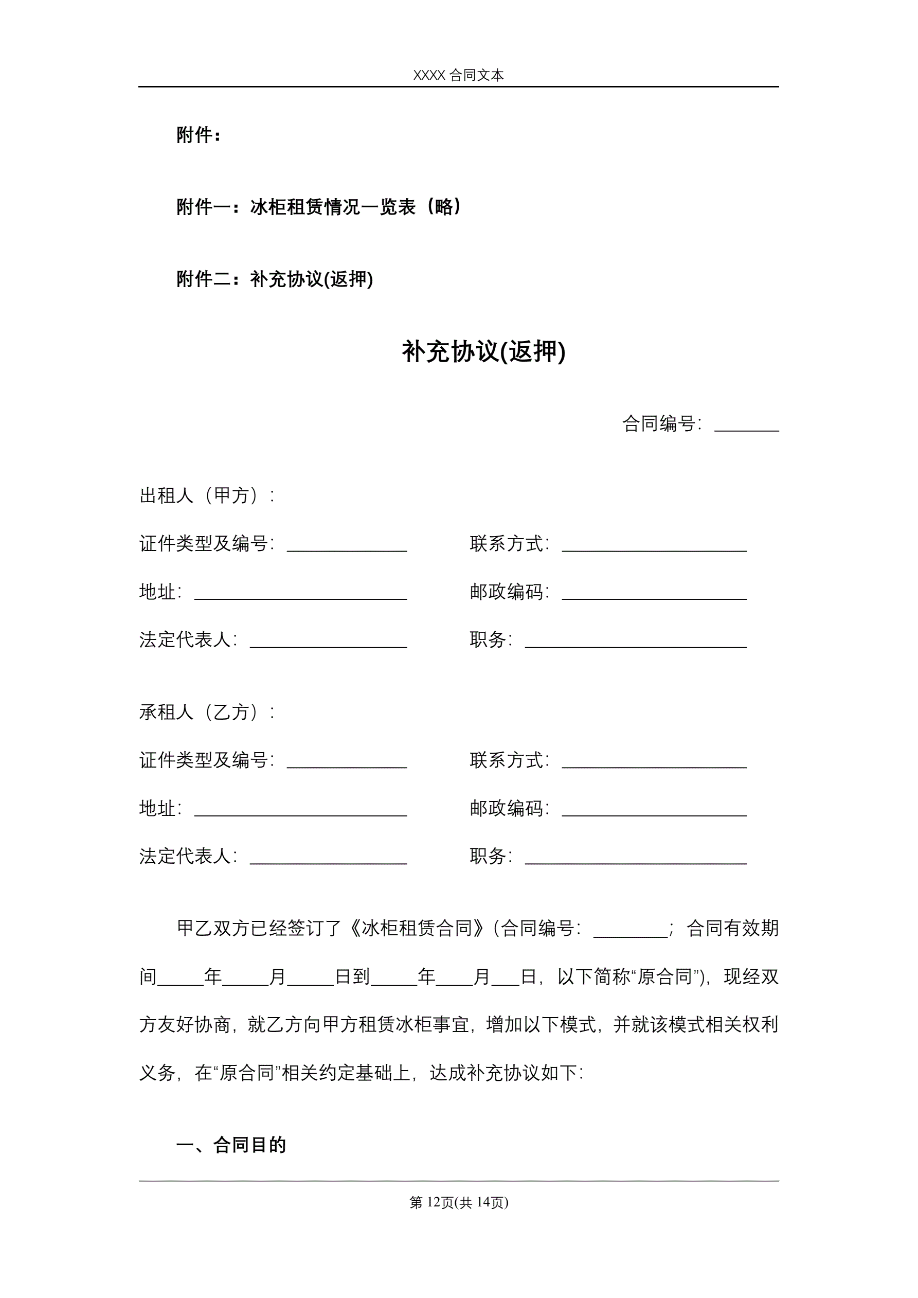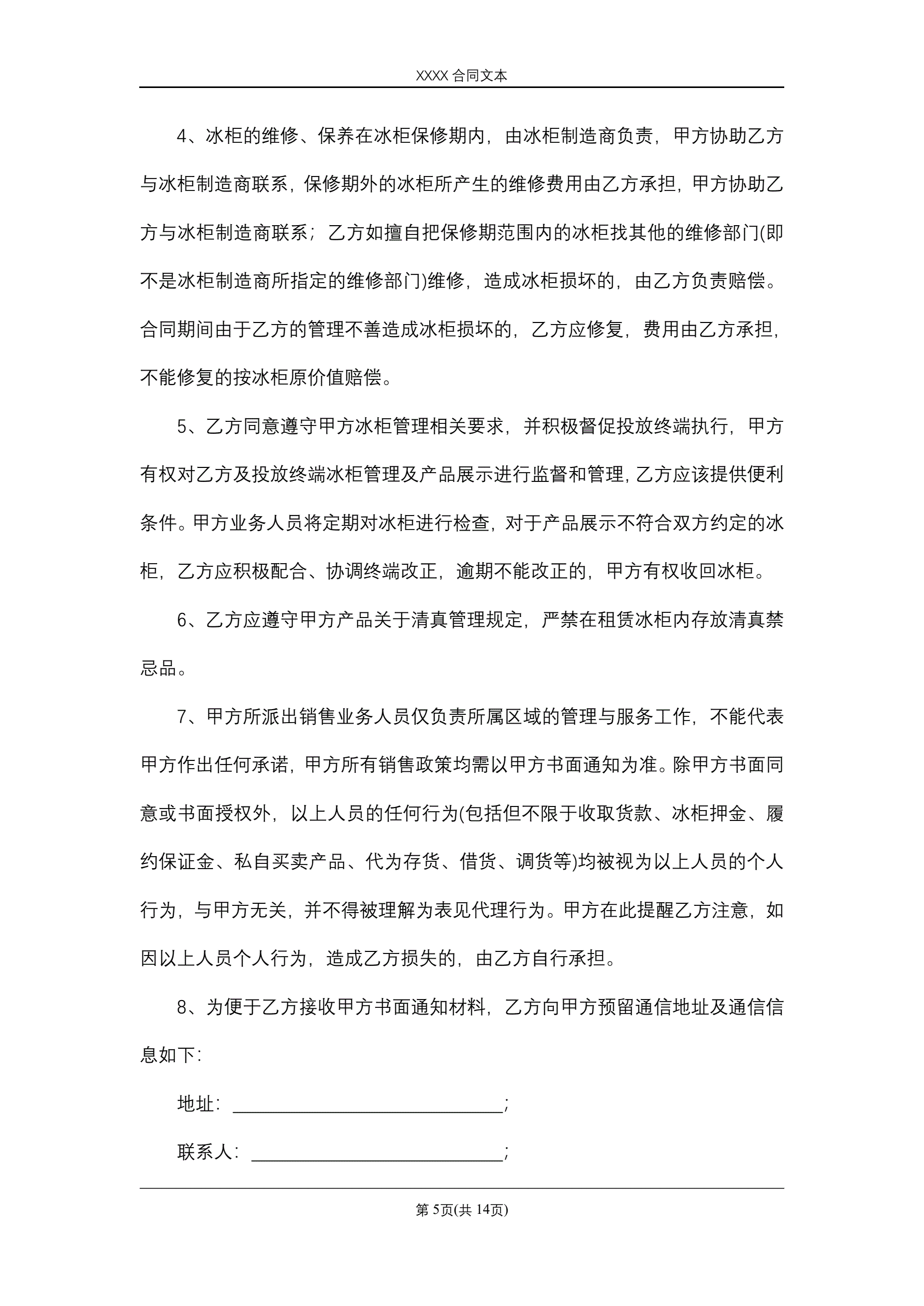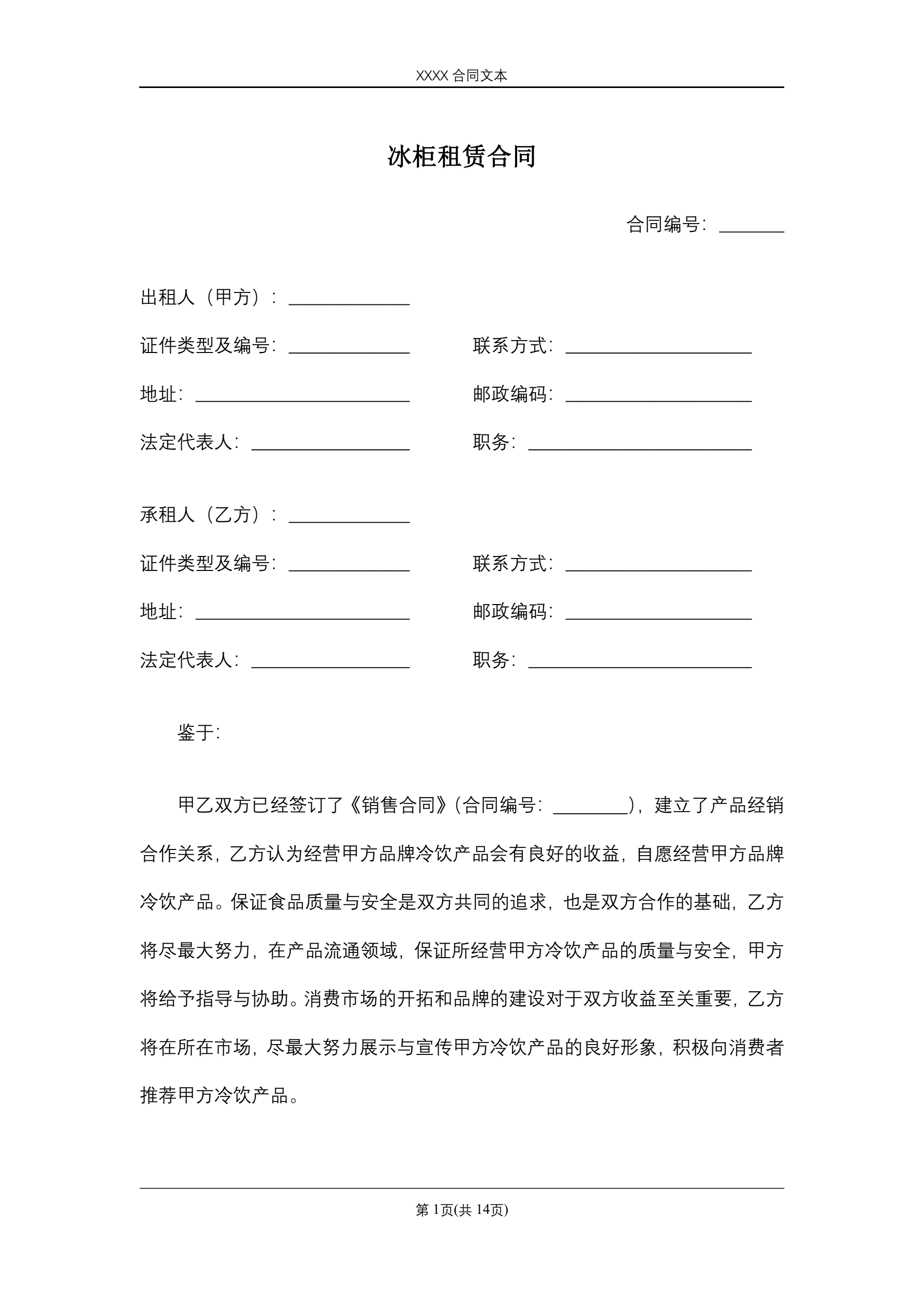>冰柜租赁合同