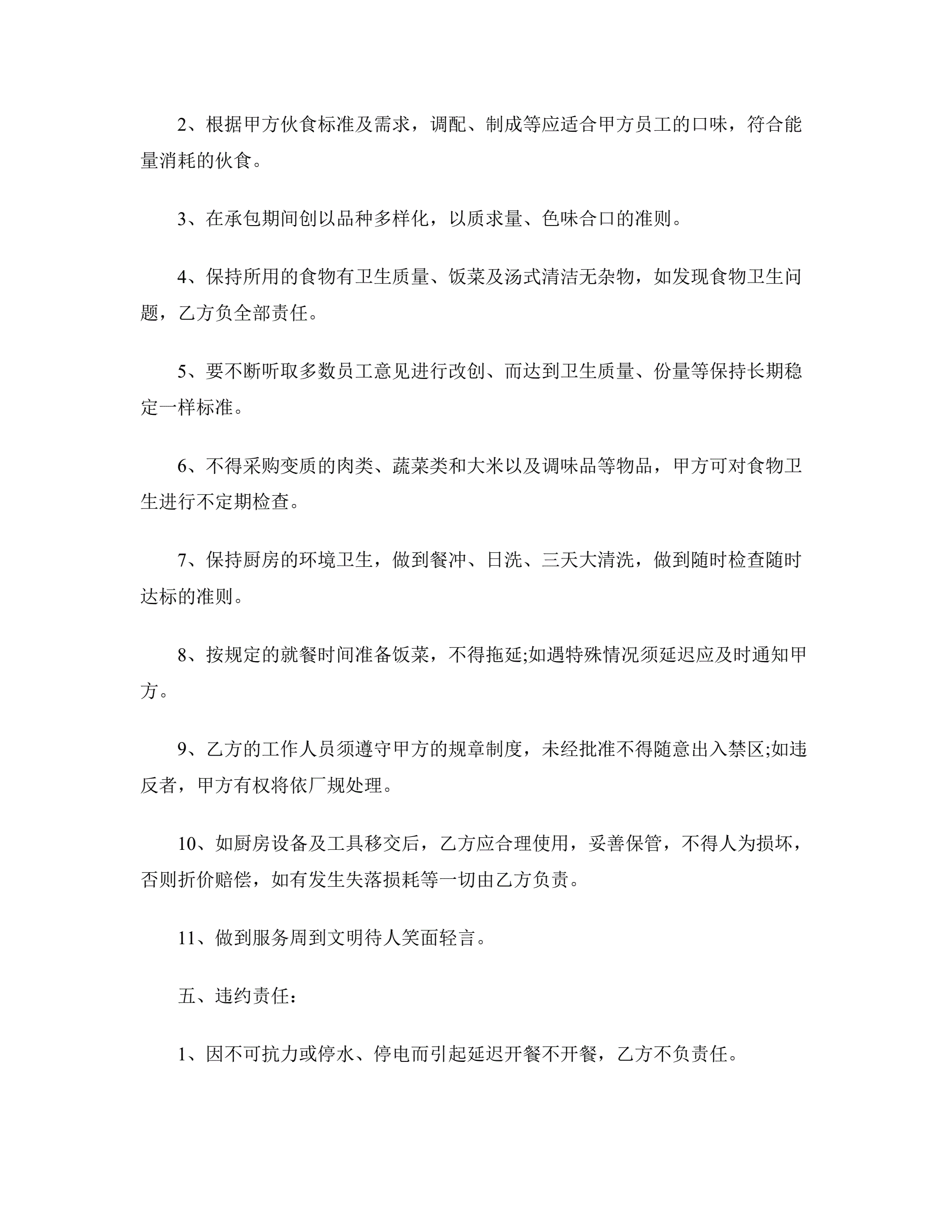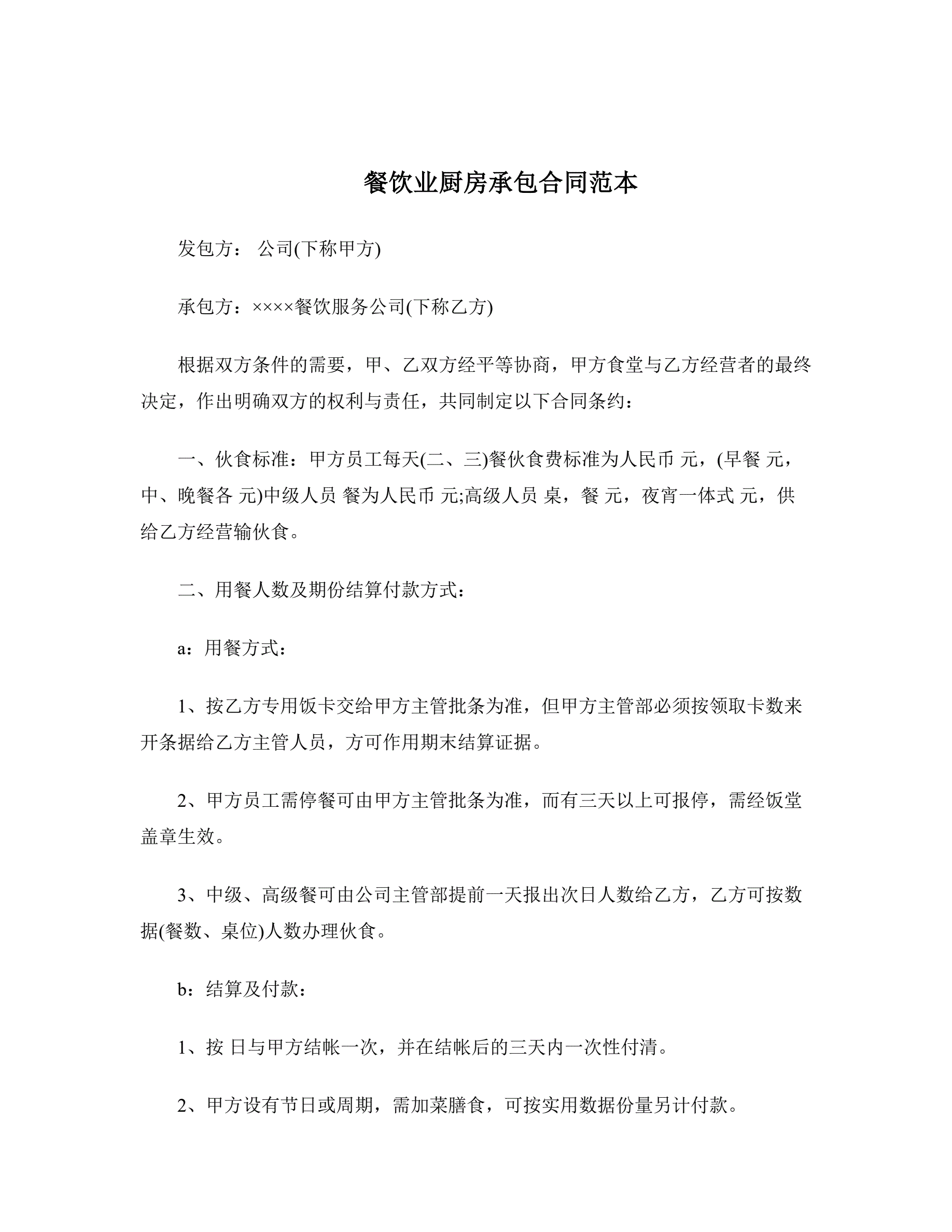 餐饮业厨房承包合同范本