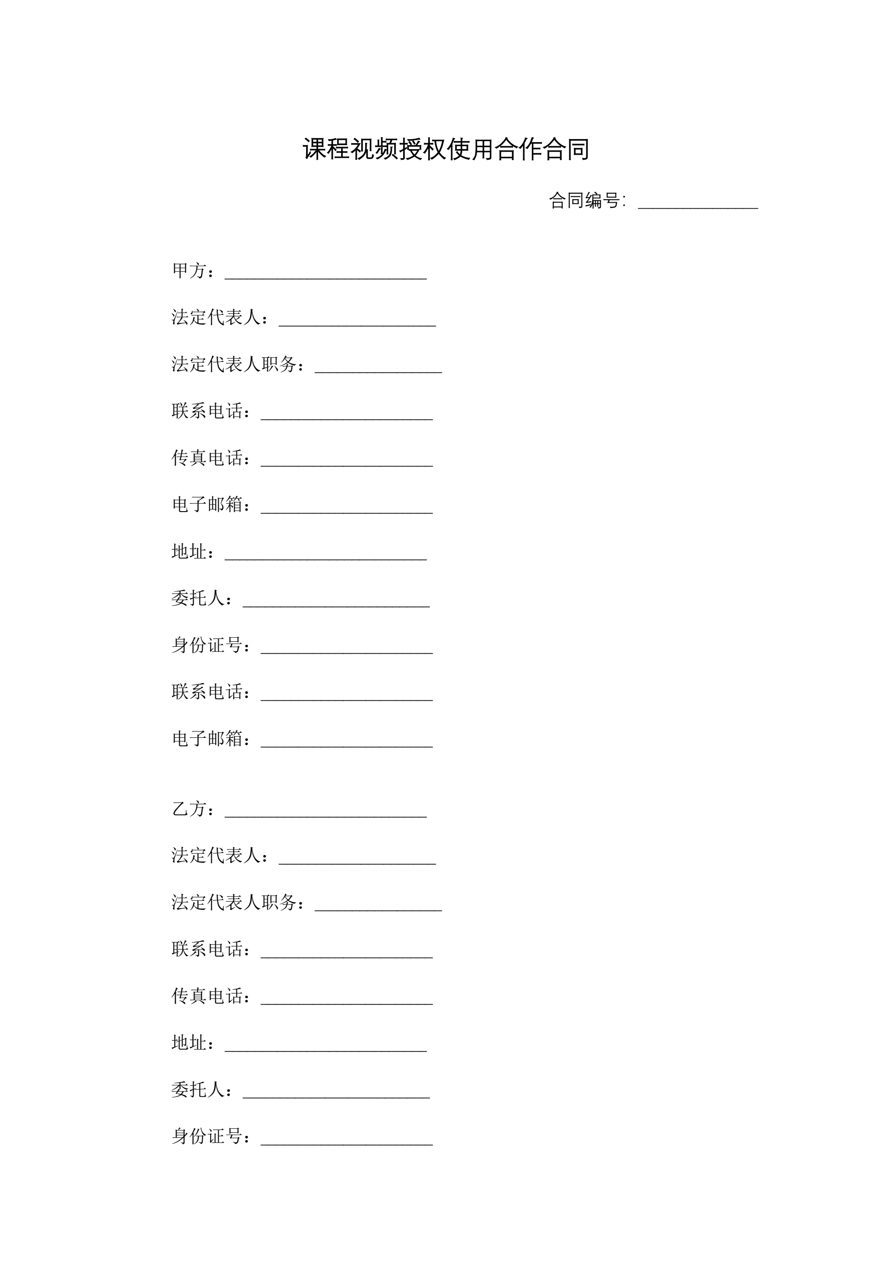 课程视频授权使用合作合同