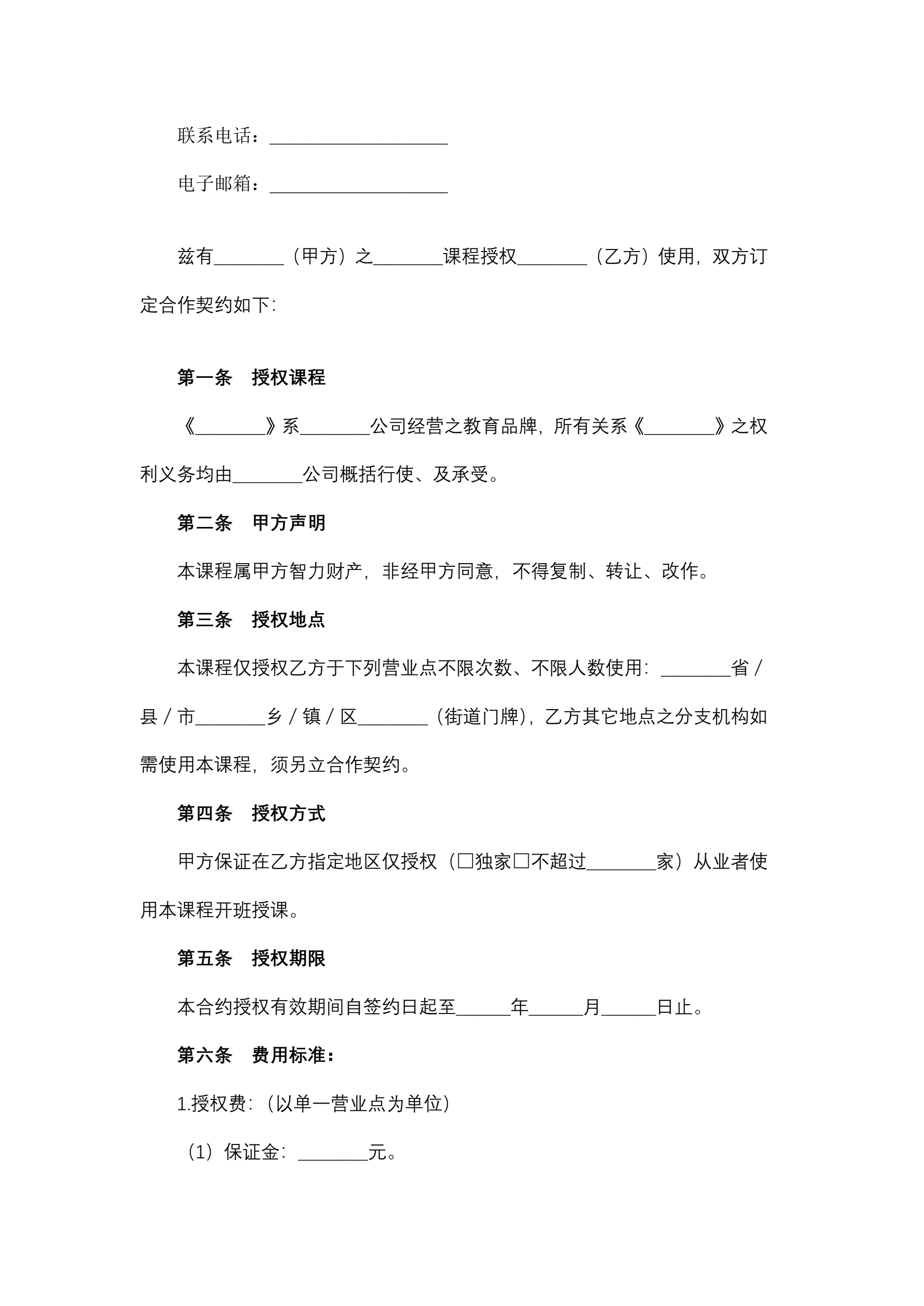 >课程视频授权使用合作合同