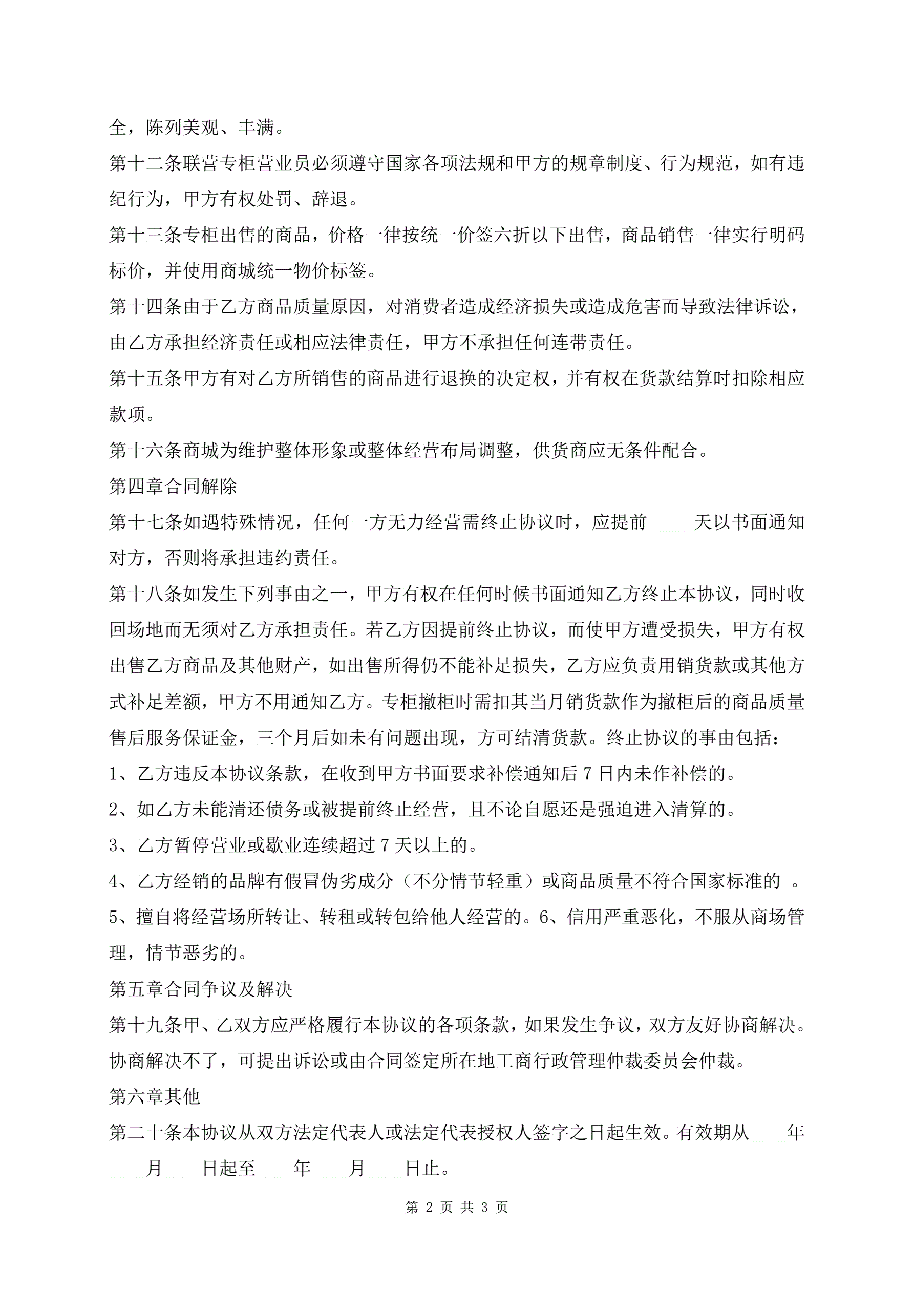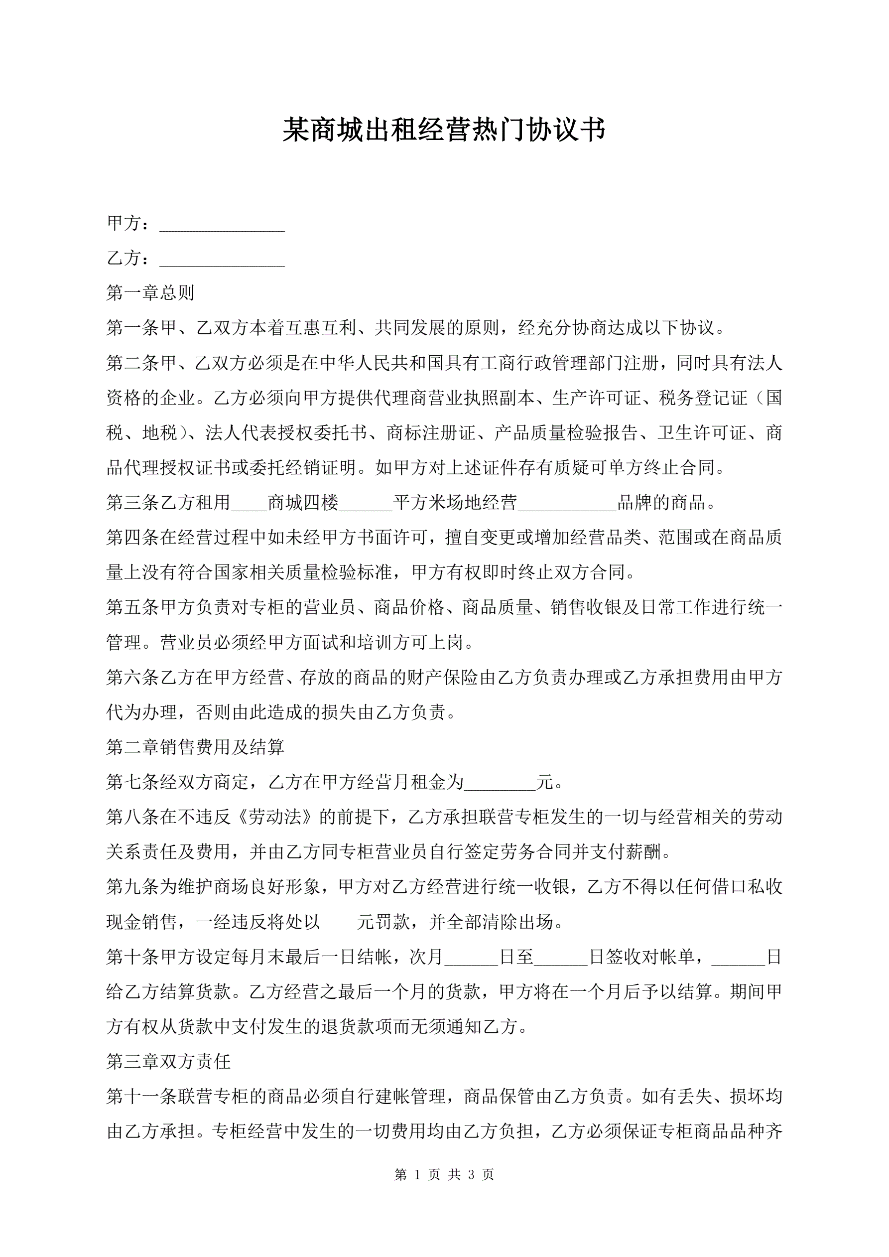 >某商城出租经营热门协议书