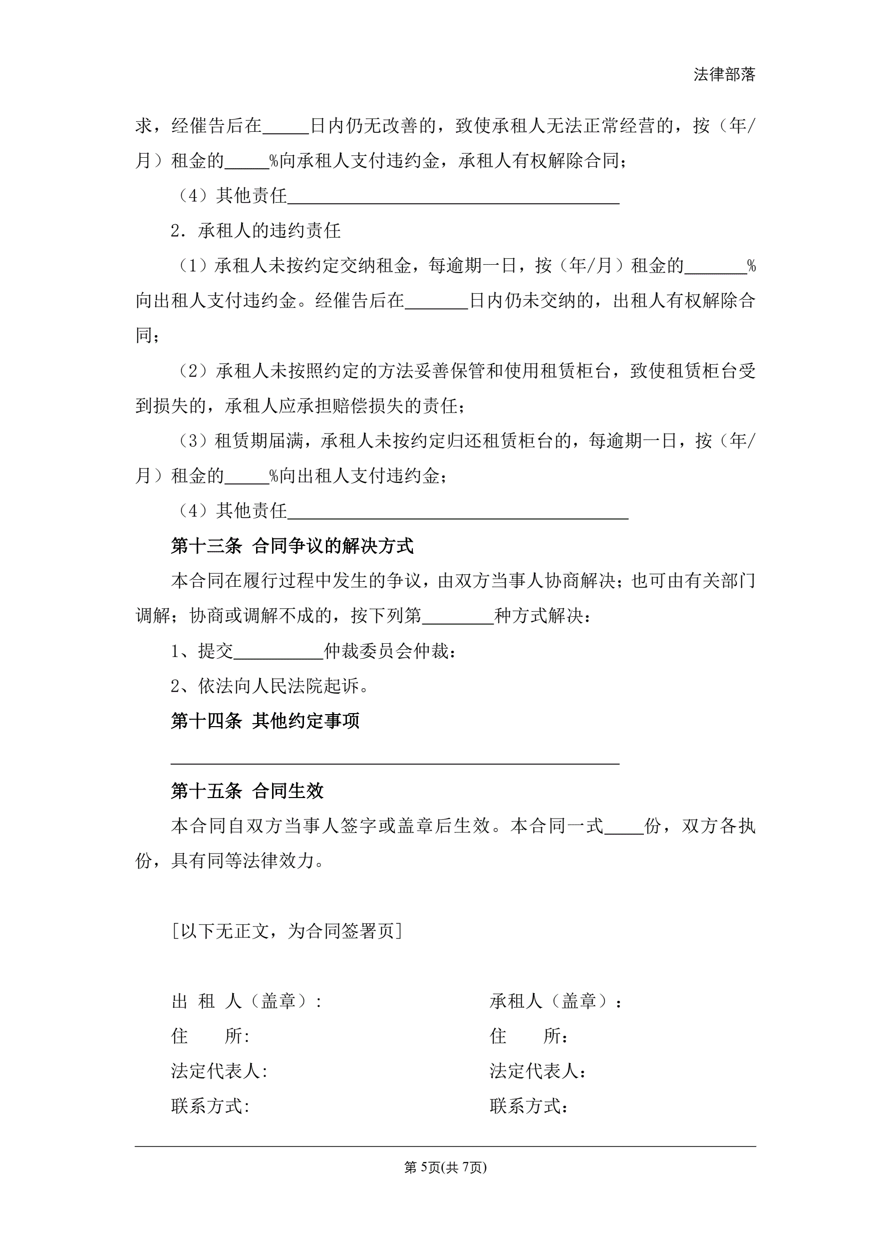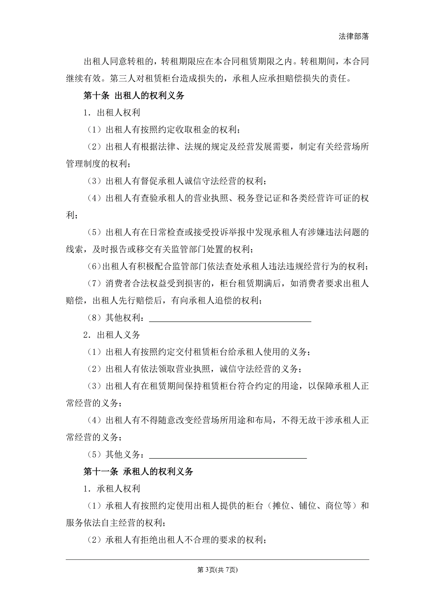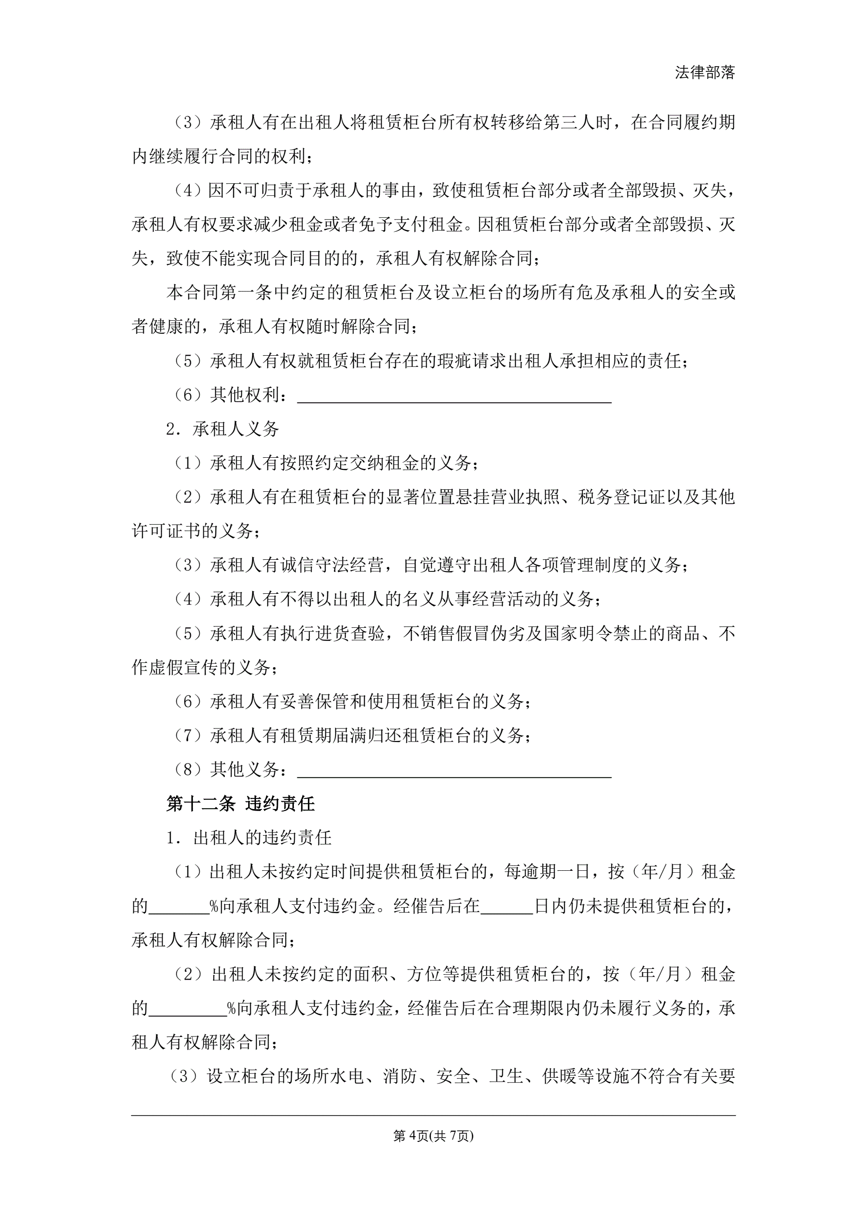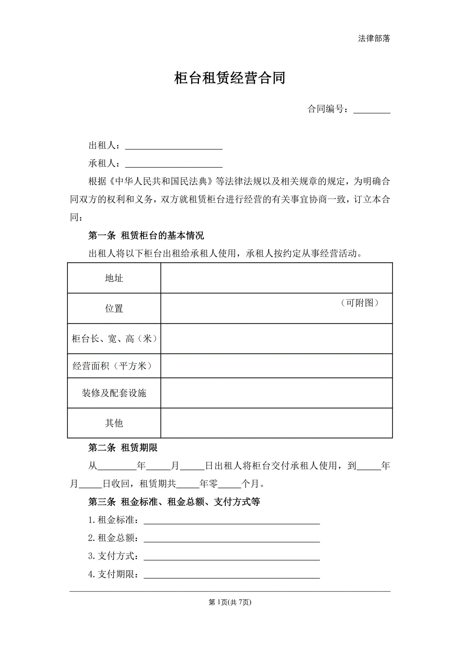 >柜台租赁经营合同