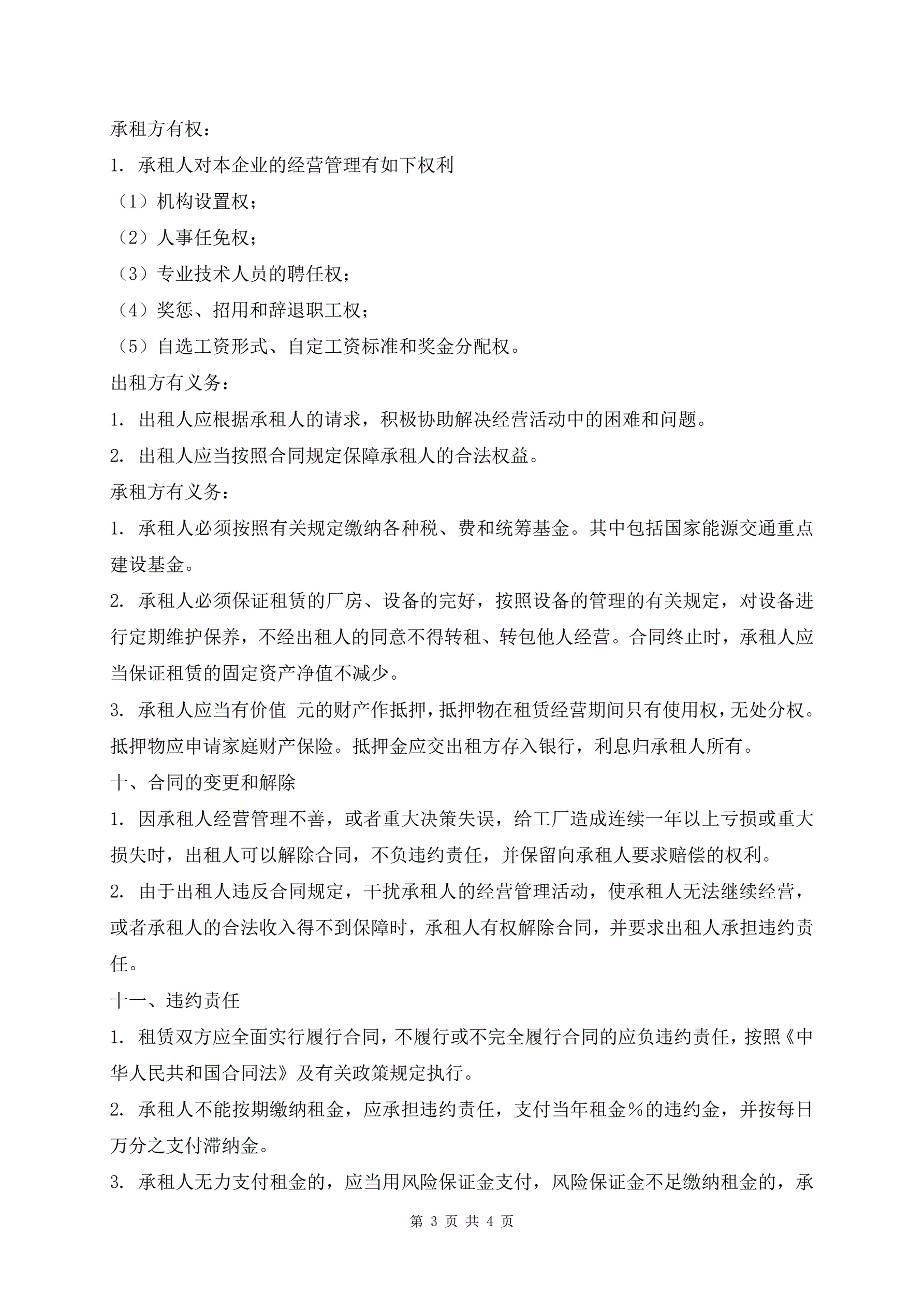 新版企业租赁经营合同