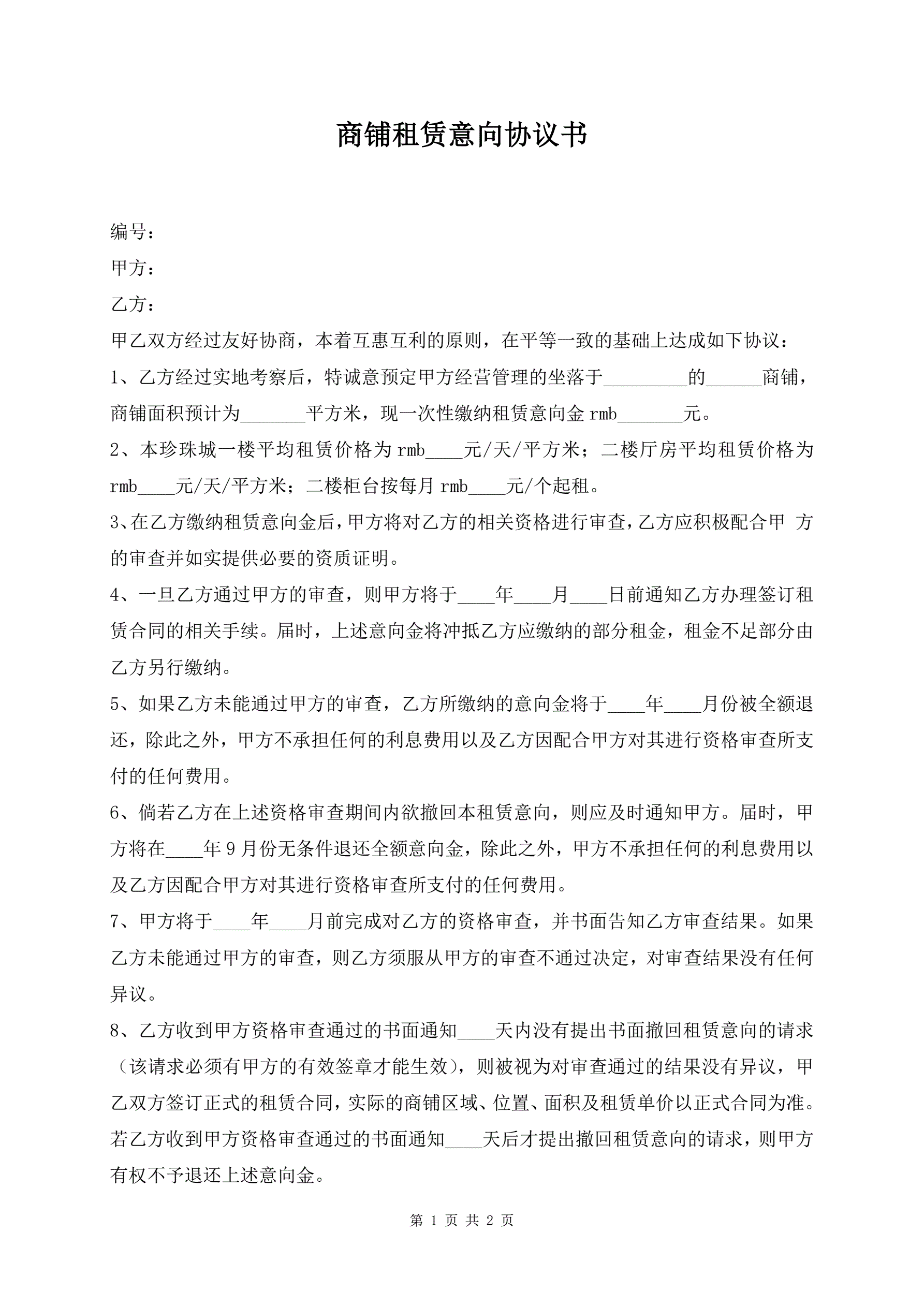 >商铺租赁意向协议书