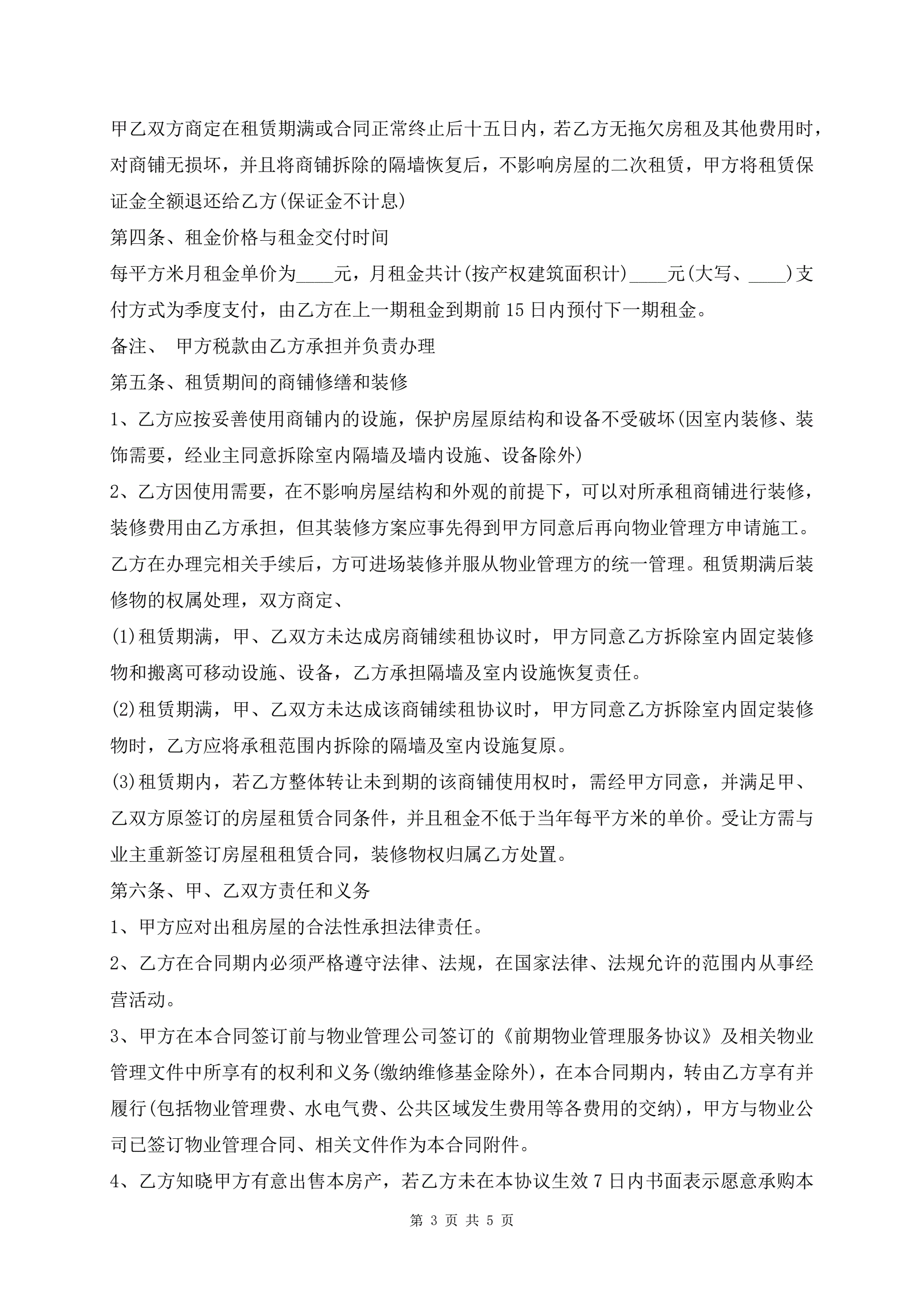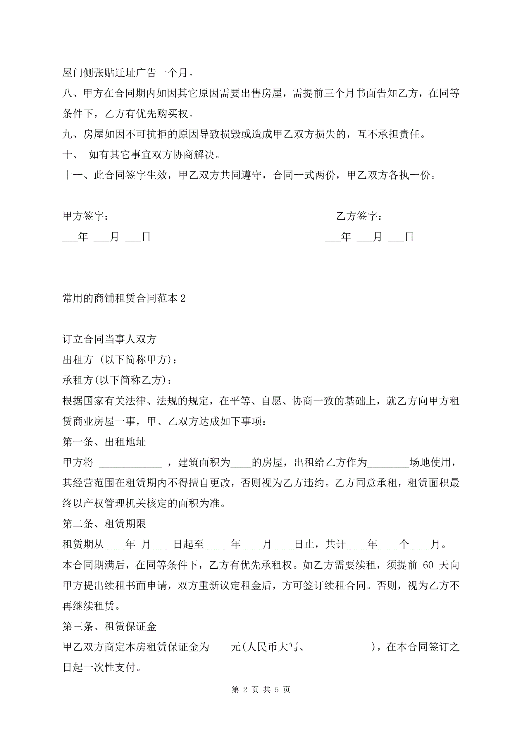 >常用的商铺租赁合同范本