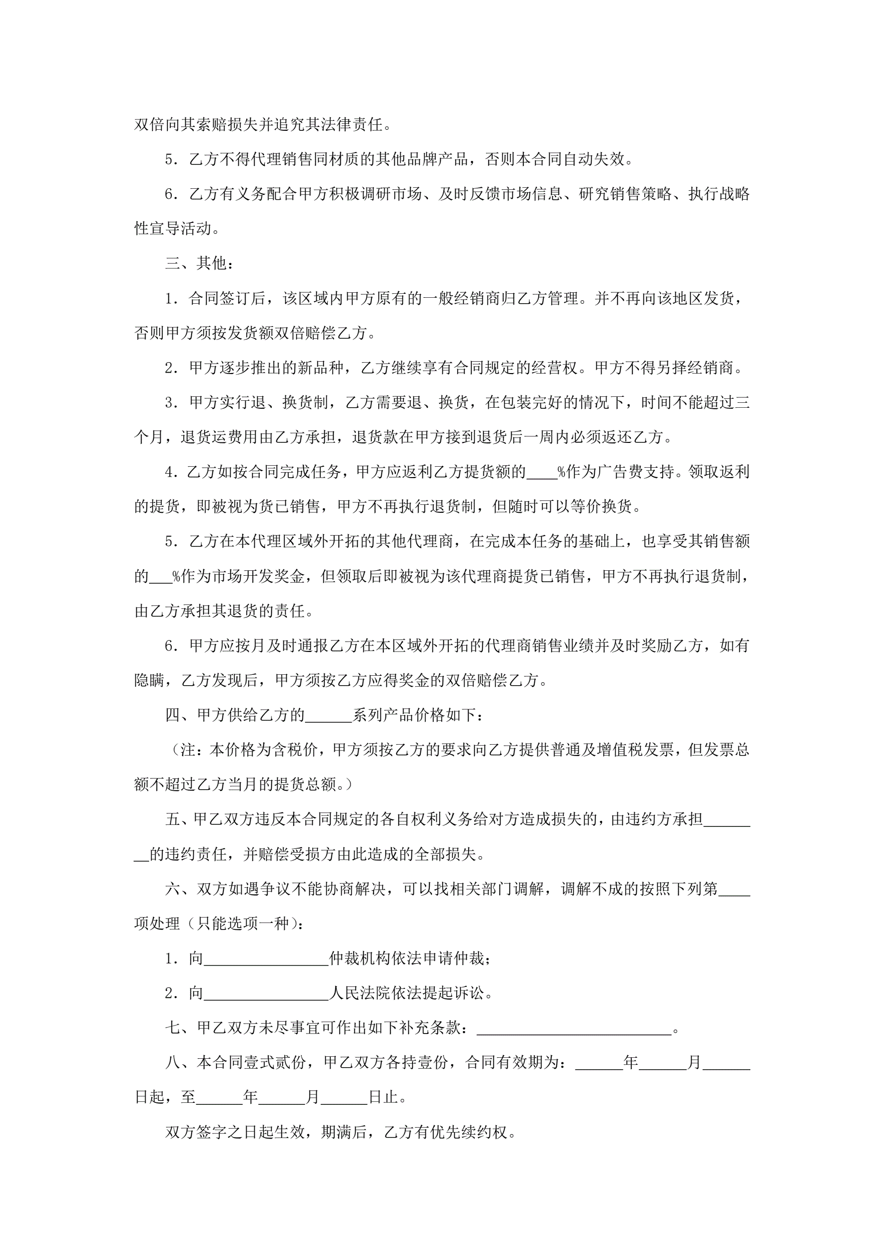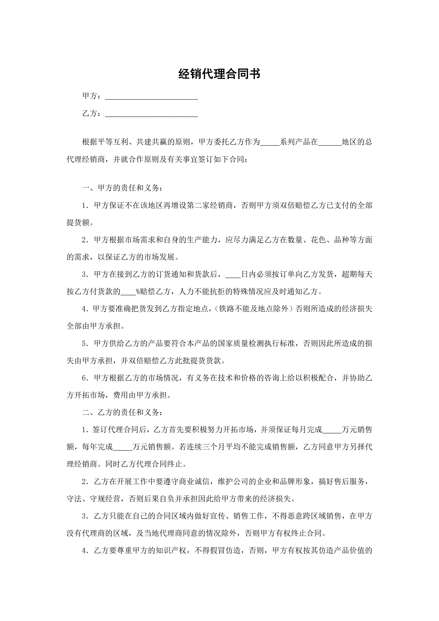 经销代理合同书