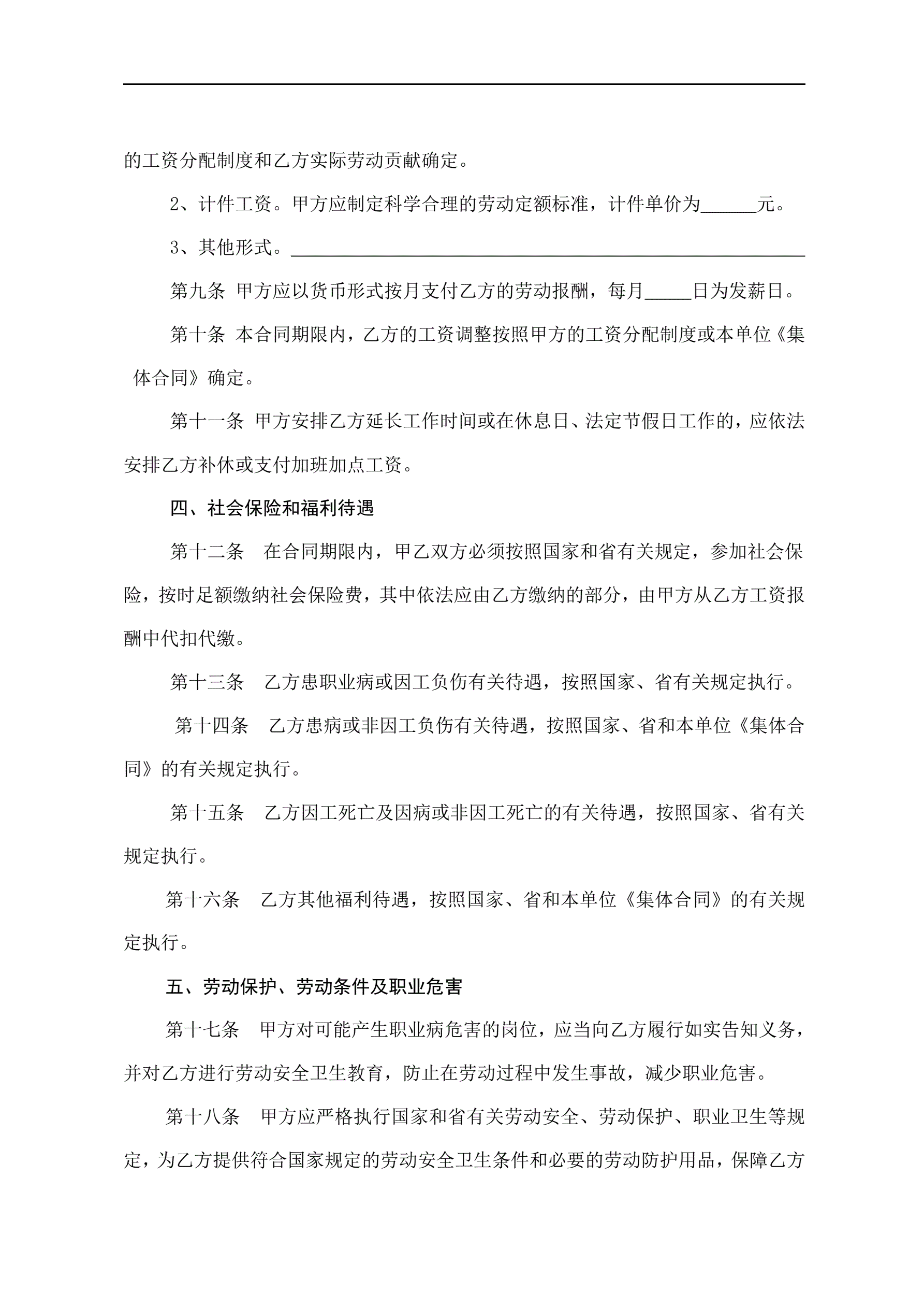合同名称:安徽新省劳动合同范本
