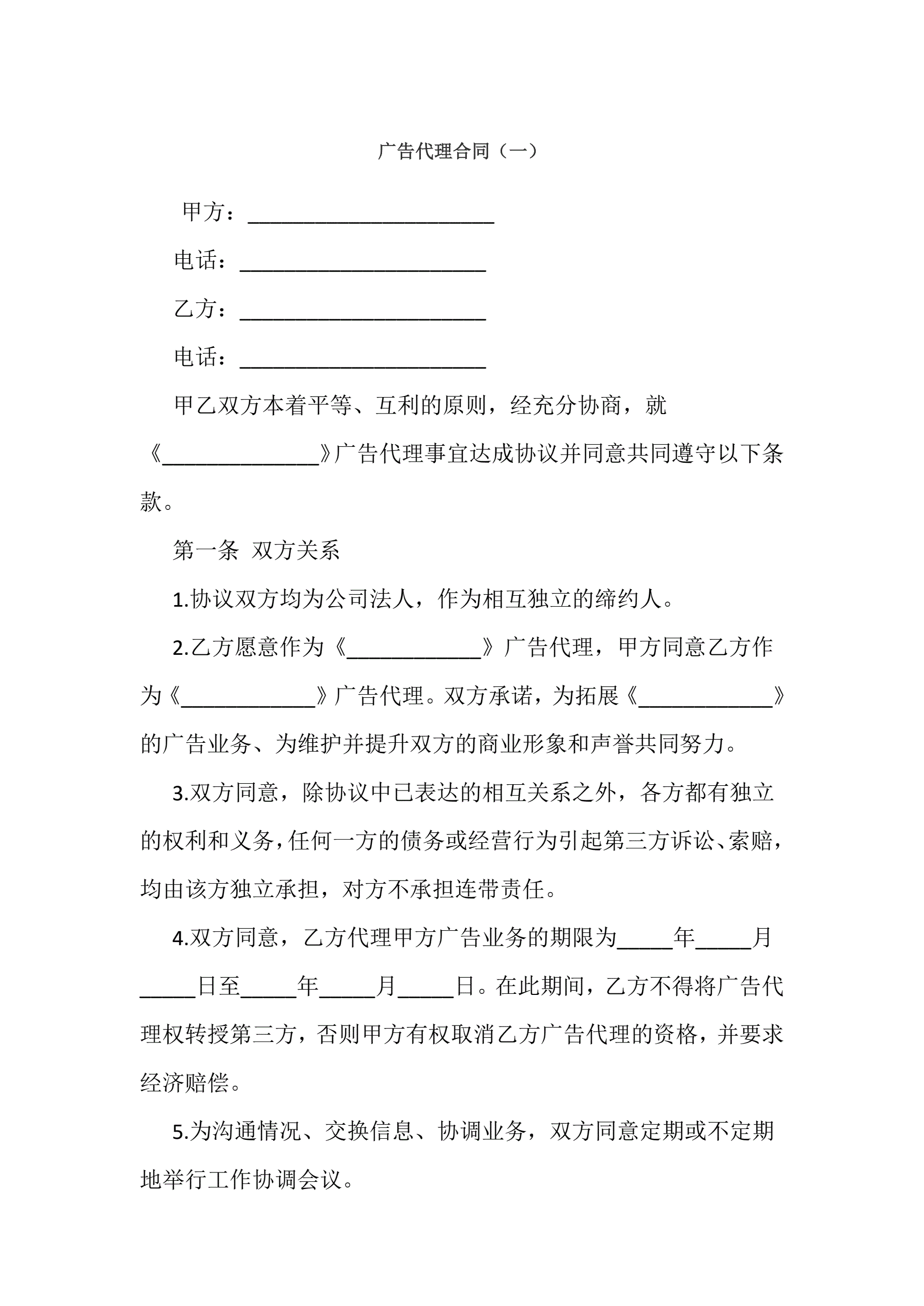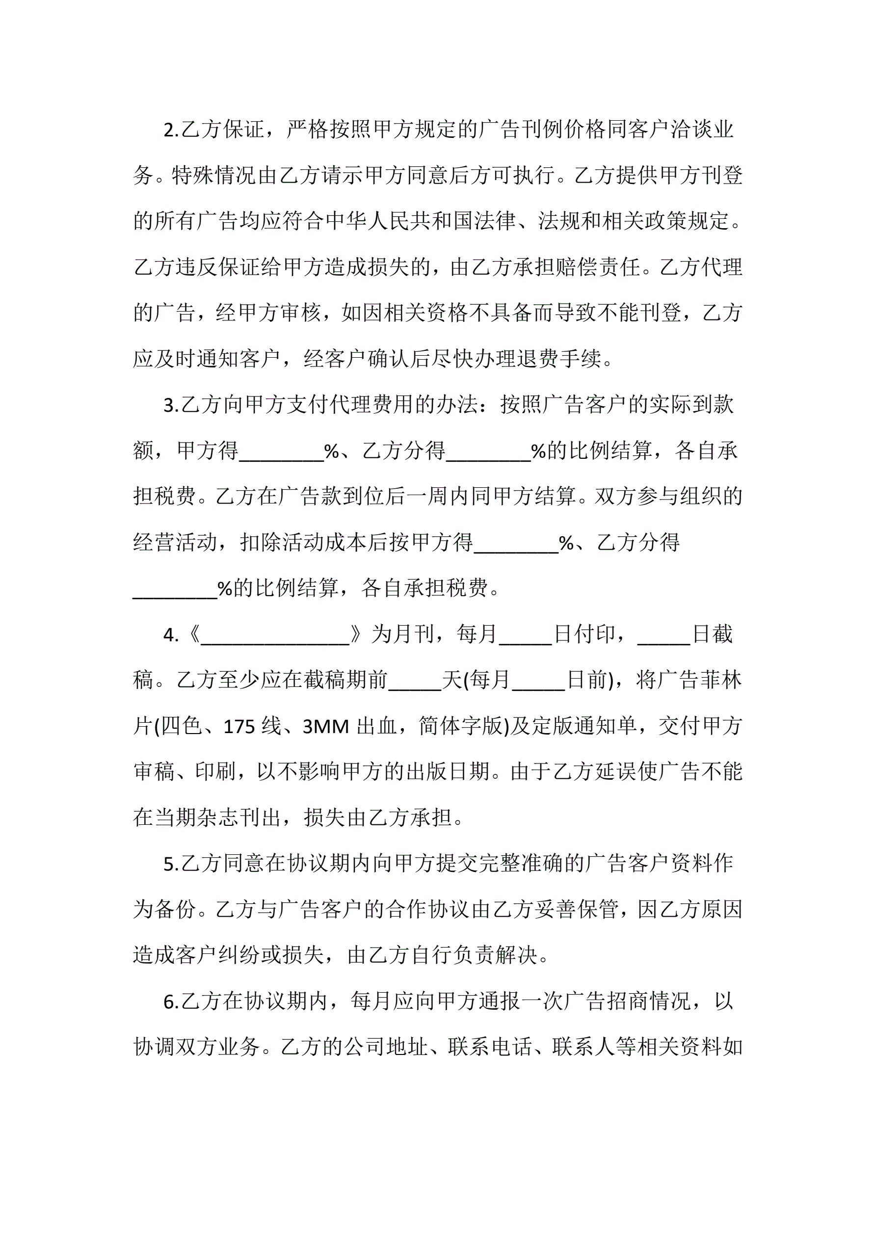 广告代理合同一