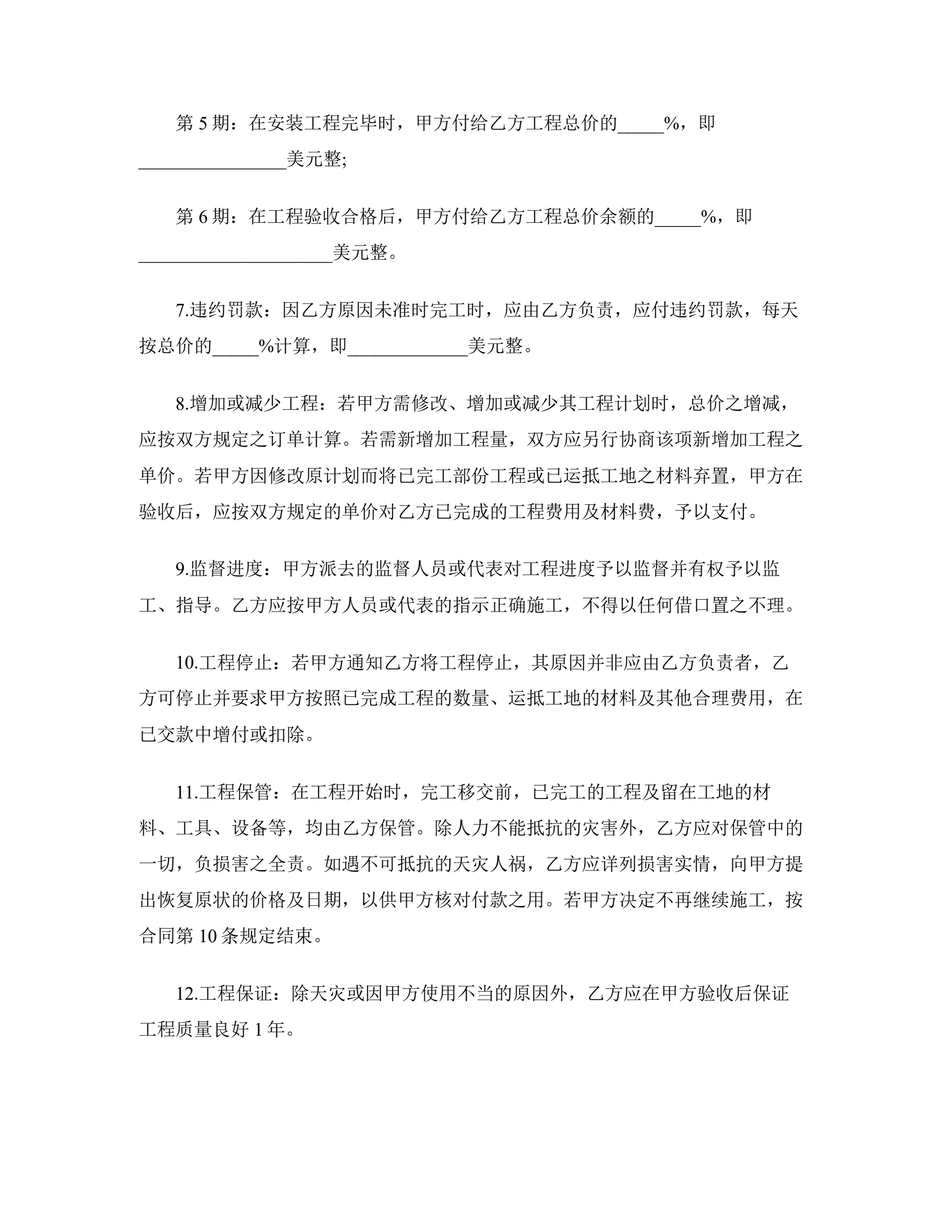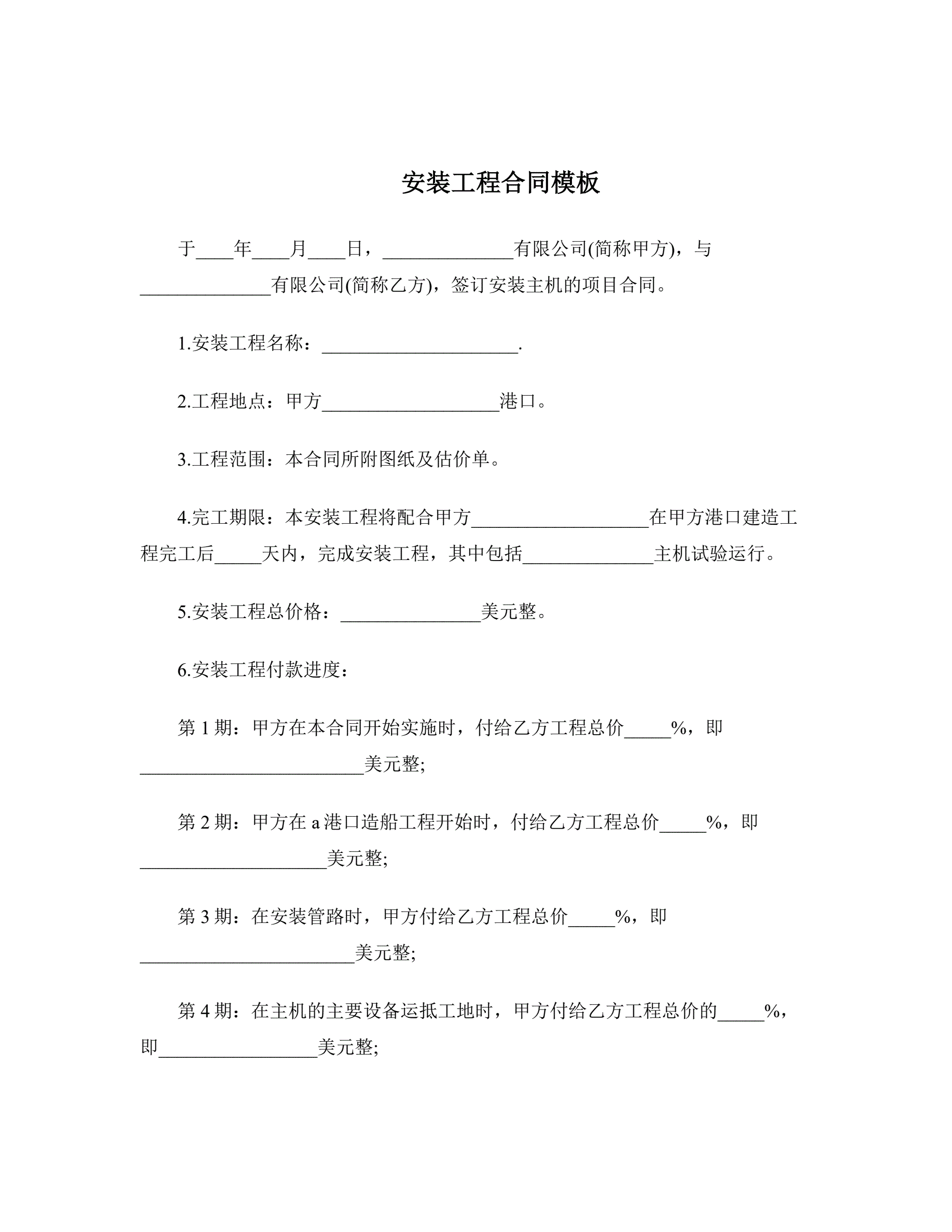 安装工程合同模板