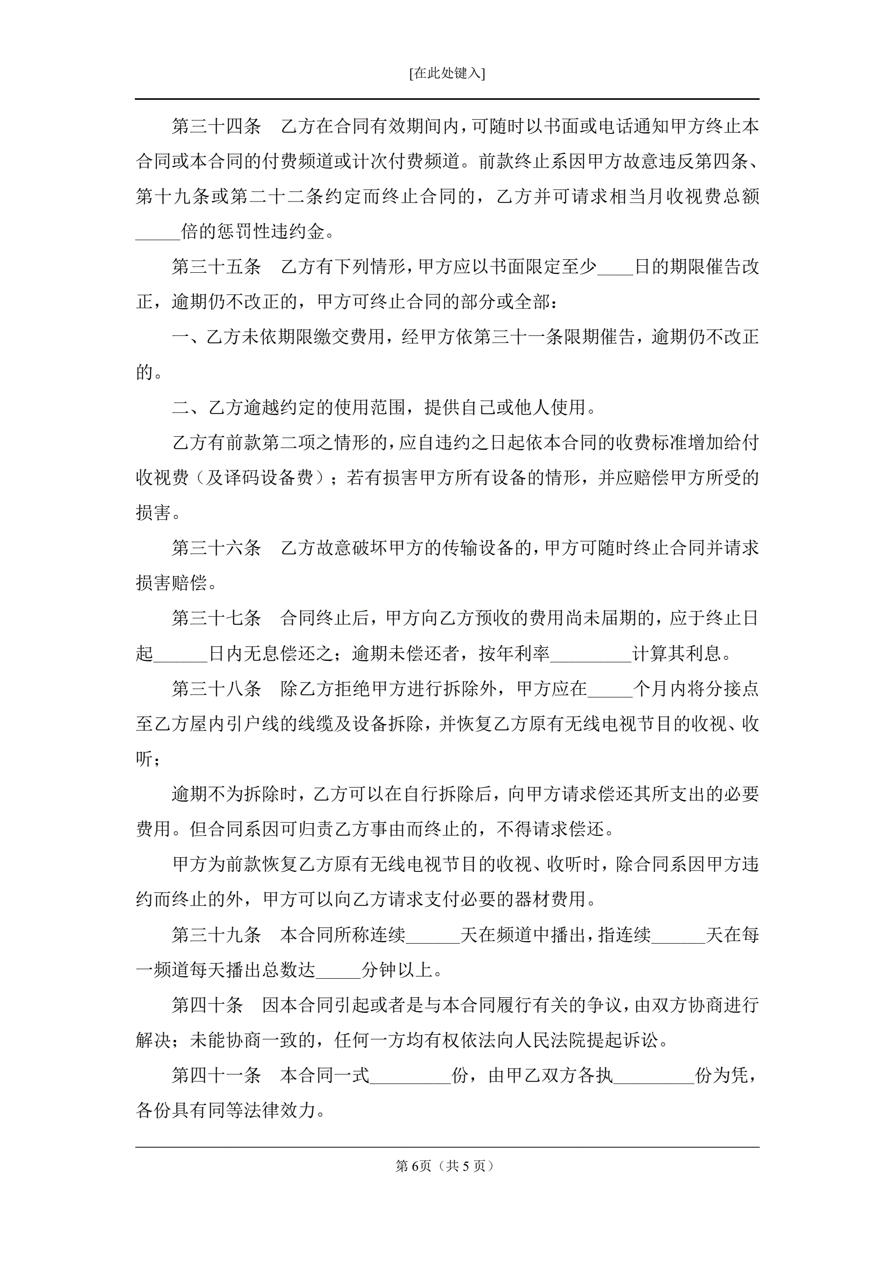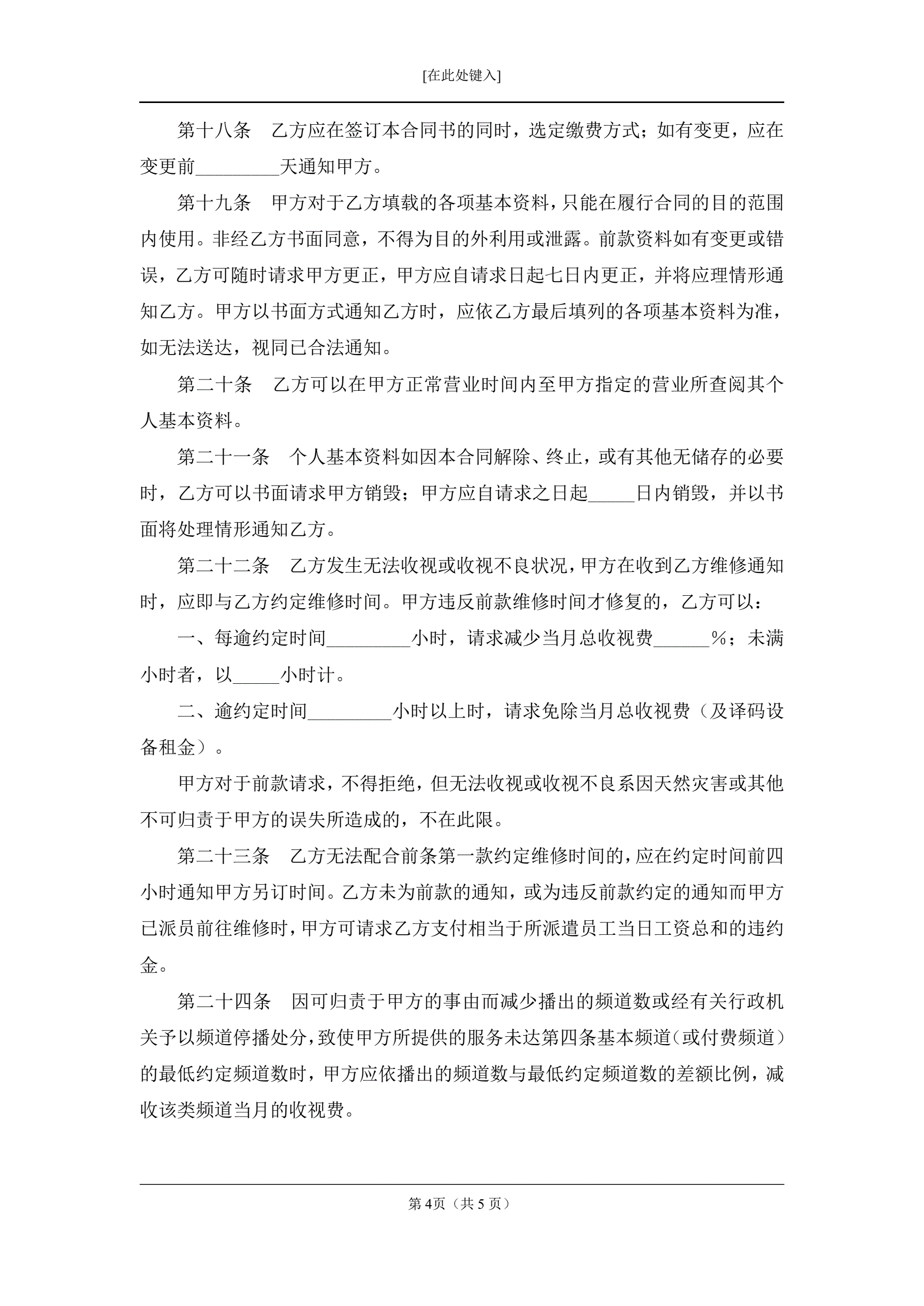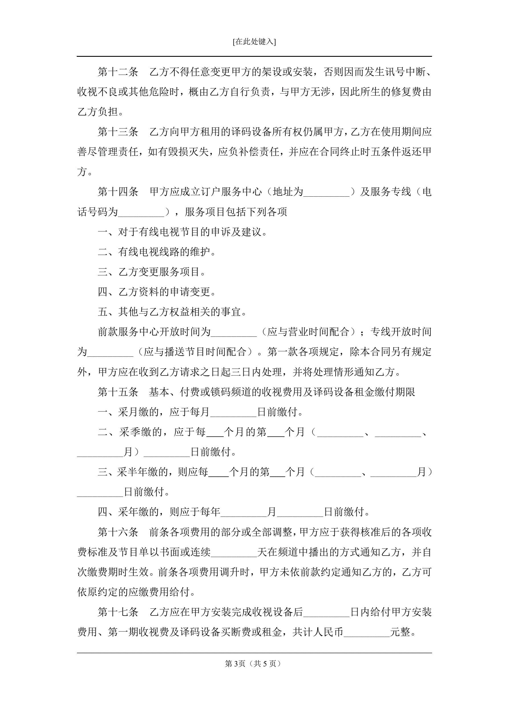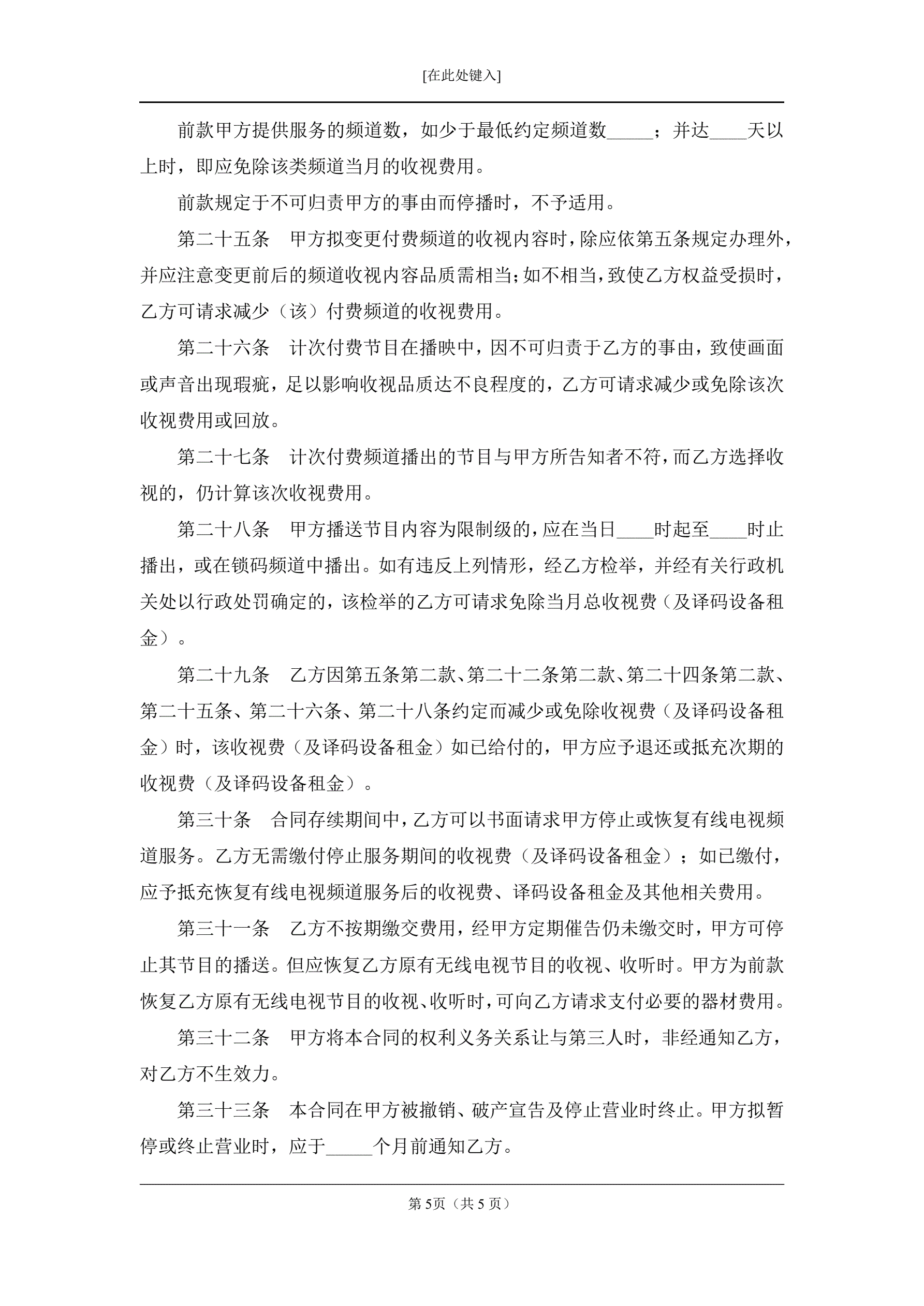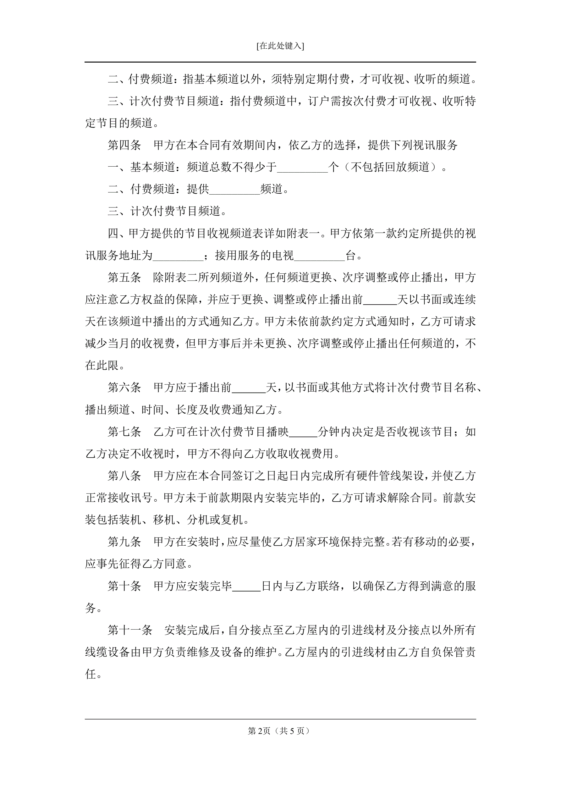 有线电视频道服务合同