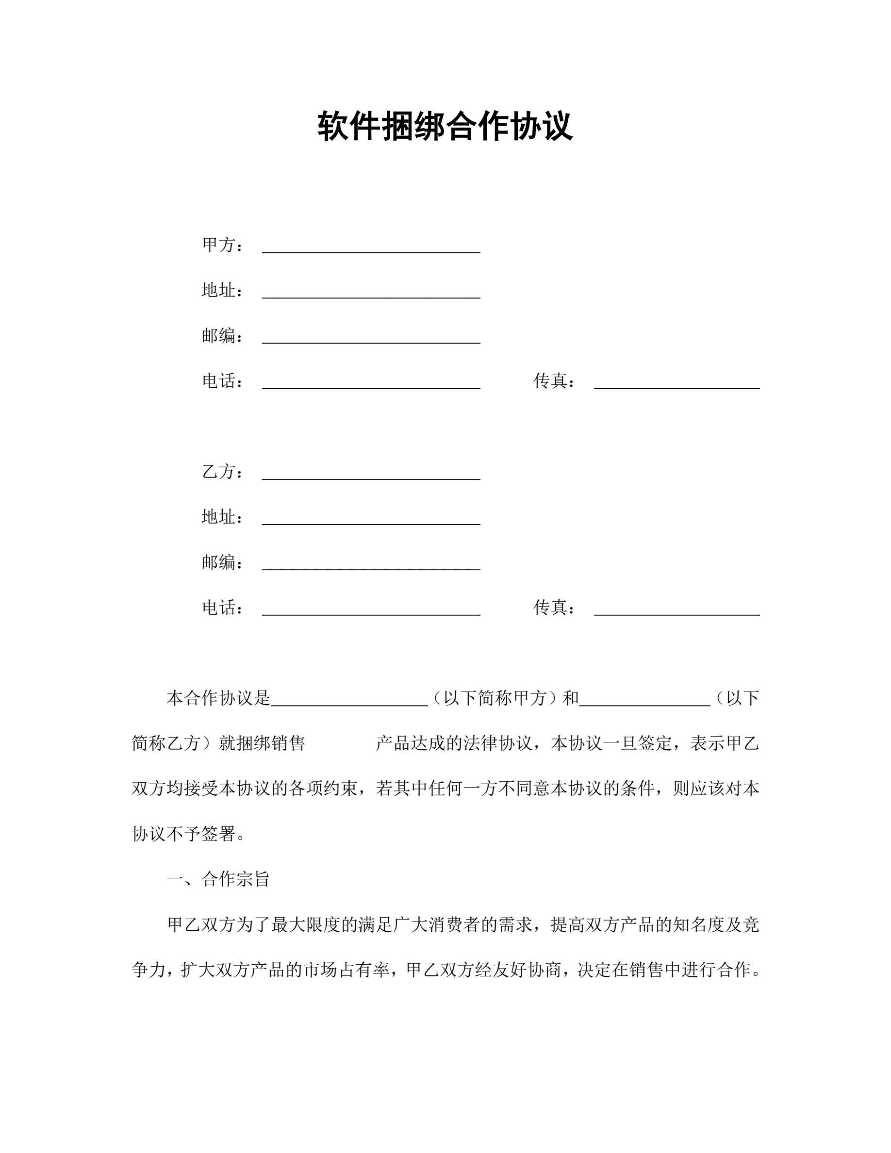 软件捆绑合作协议