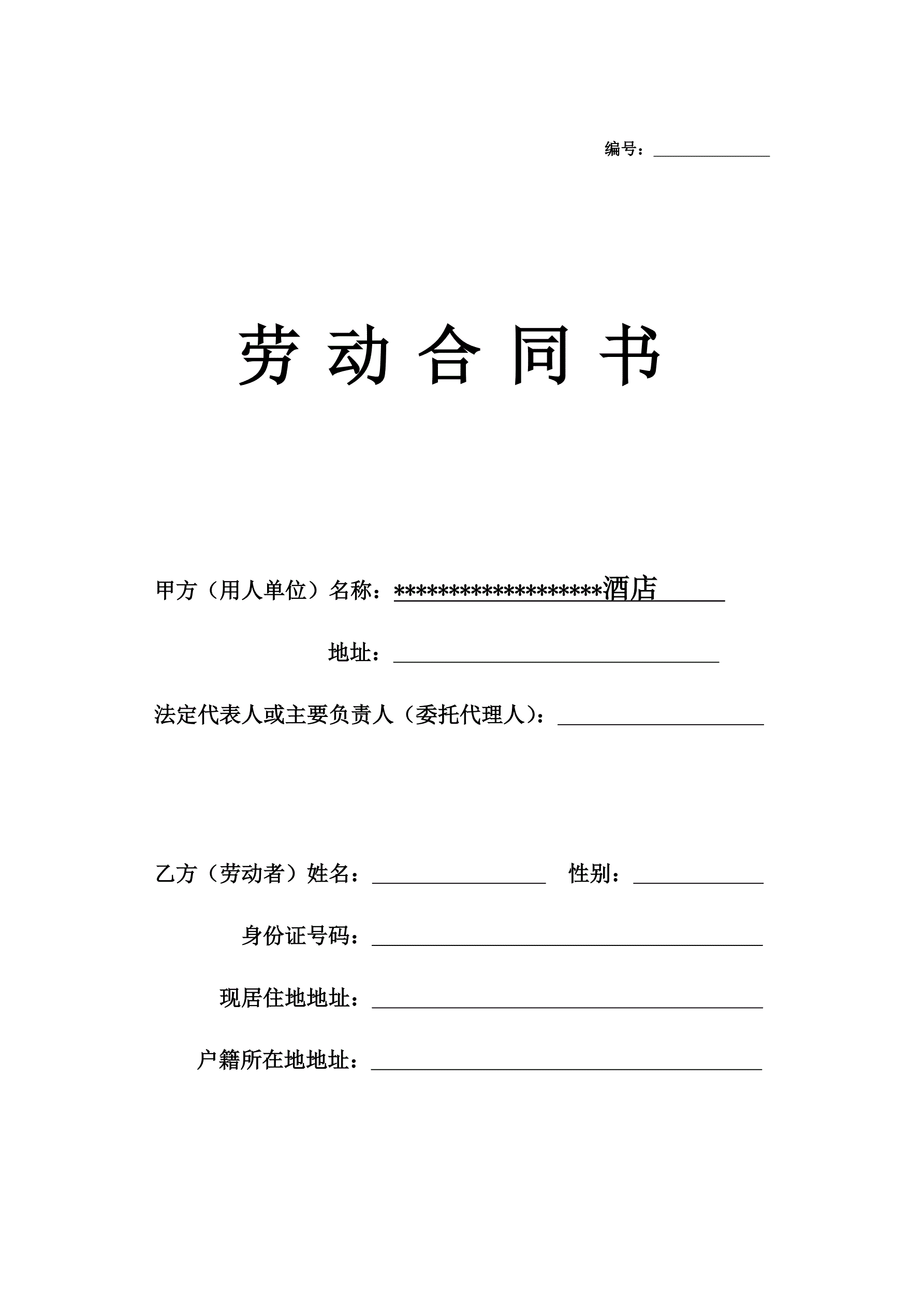 >酒店员工劳动合同模板