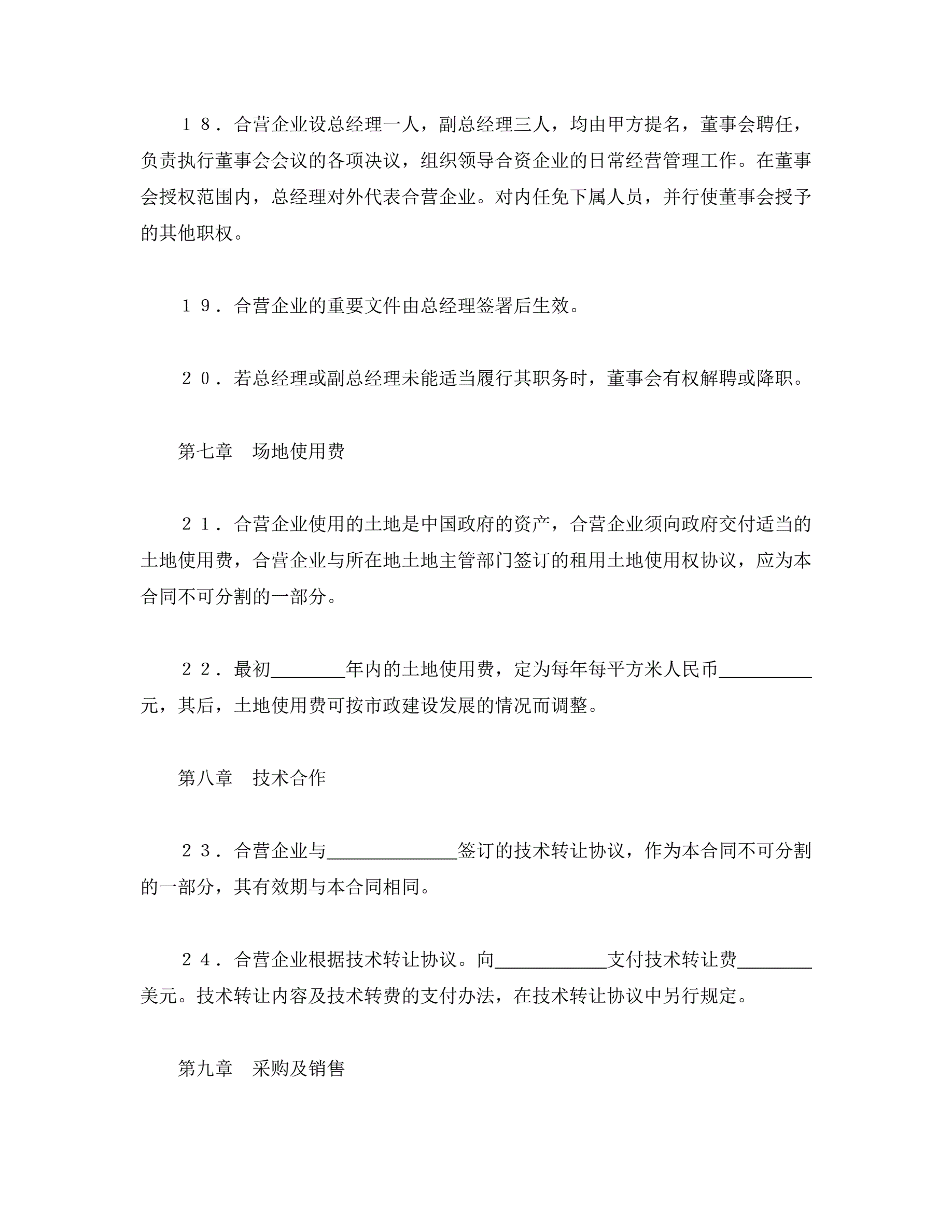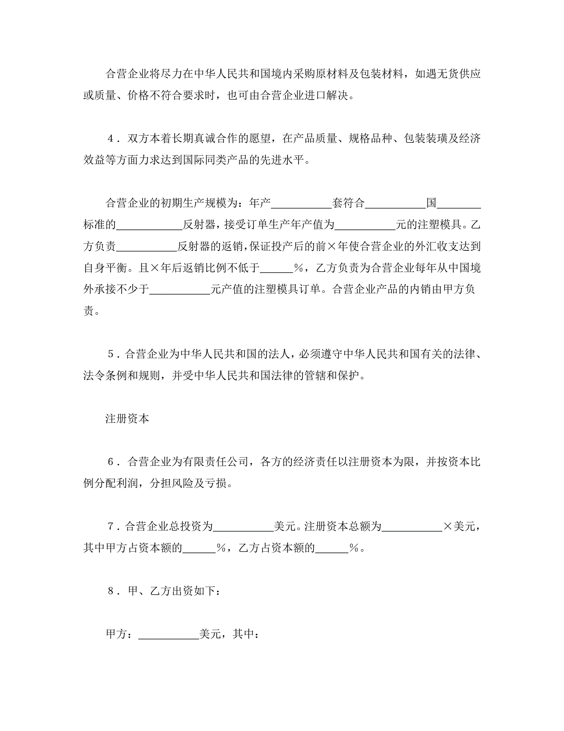 >中外合资经营企业合同(4)