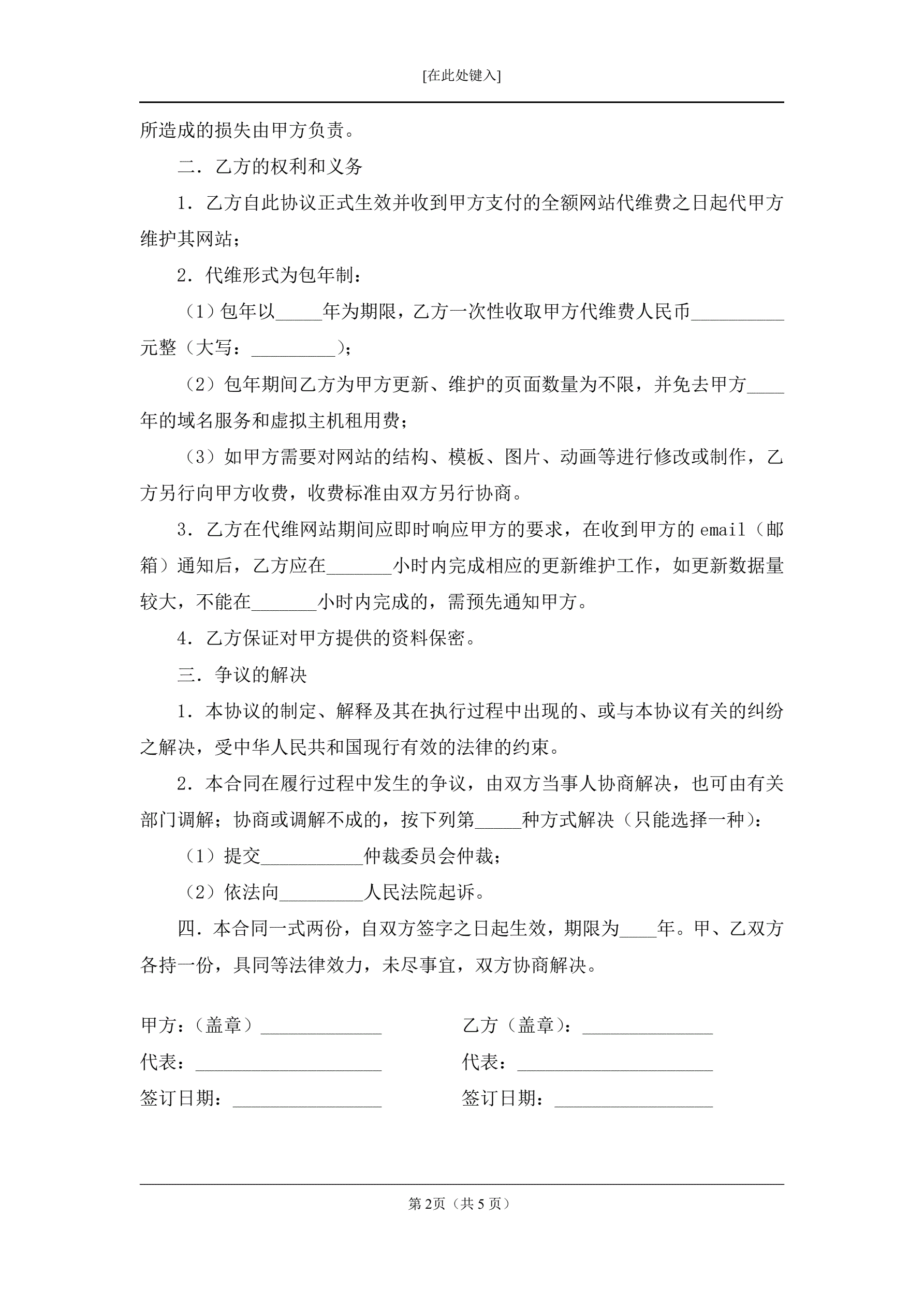 合同名称:网站日常更新及维护委托协议