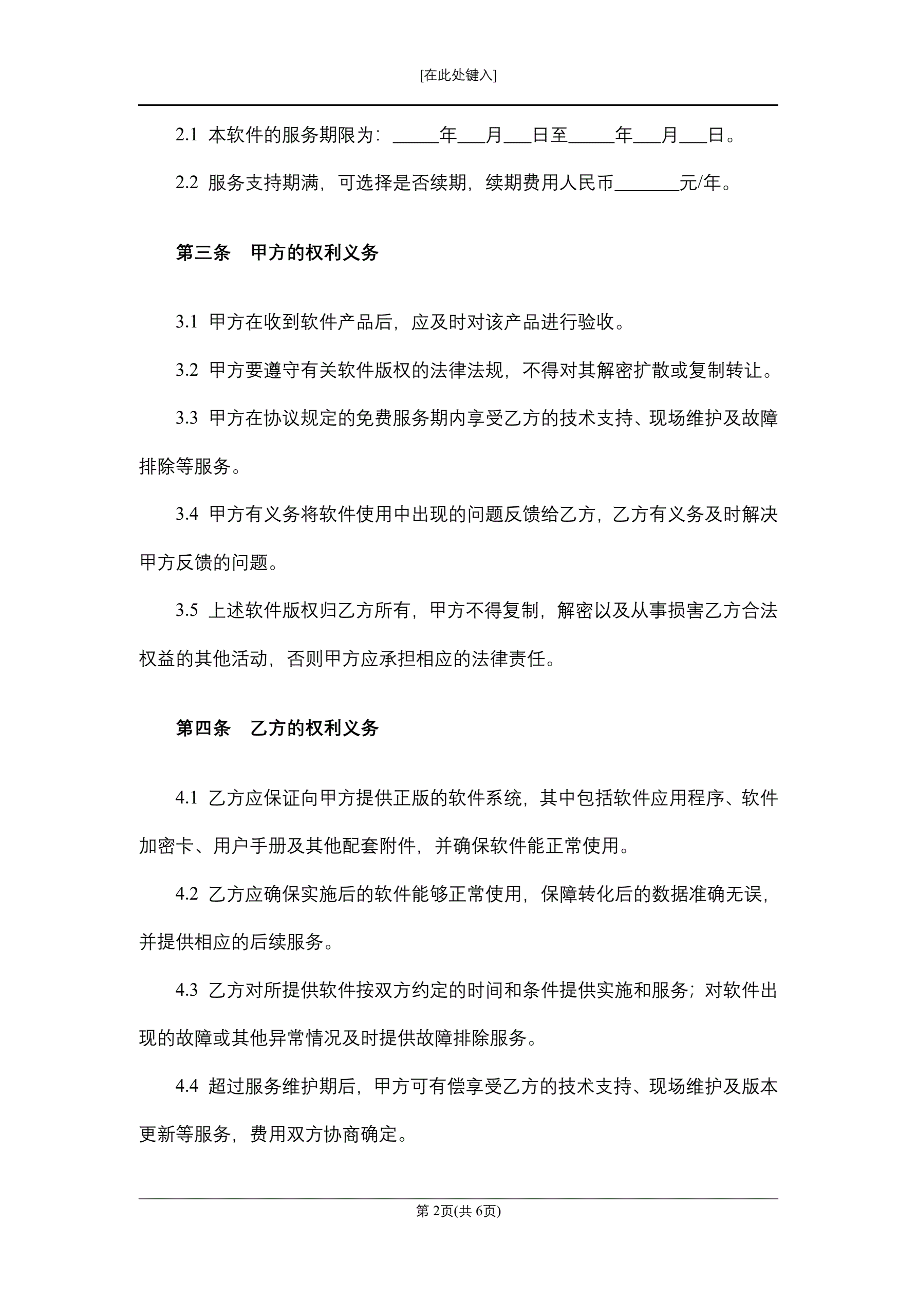 软件系统购销及服务合同