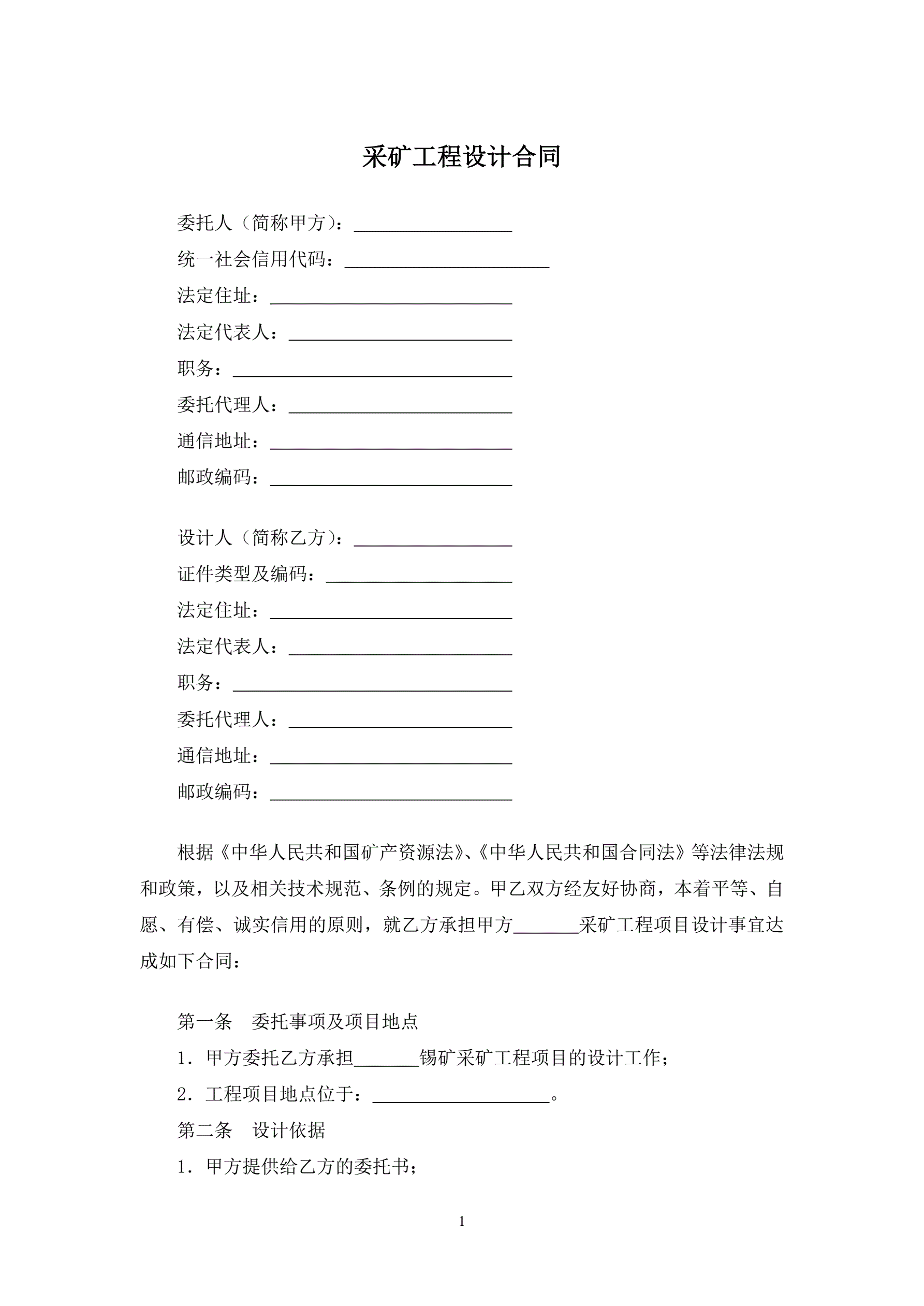 采矿工程设计合同