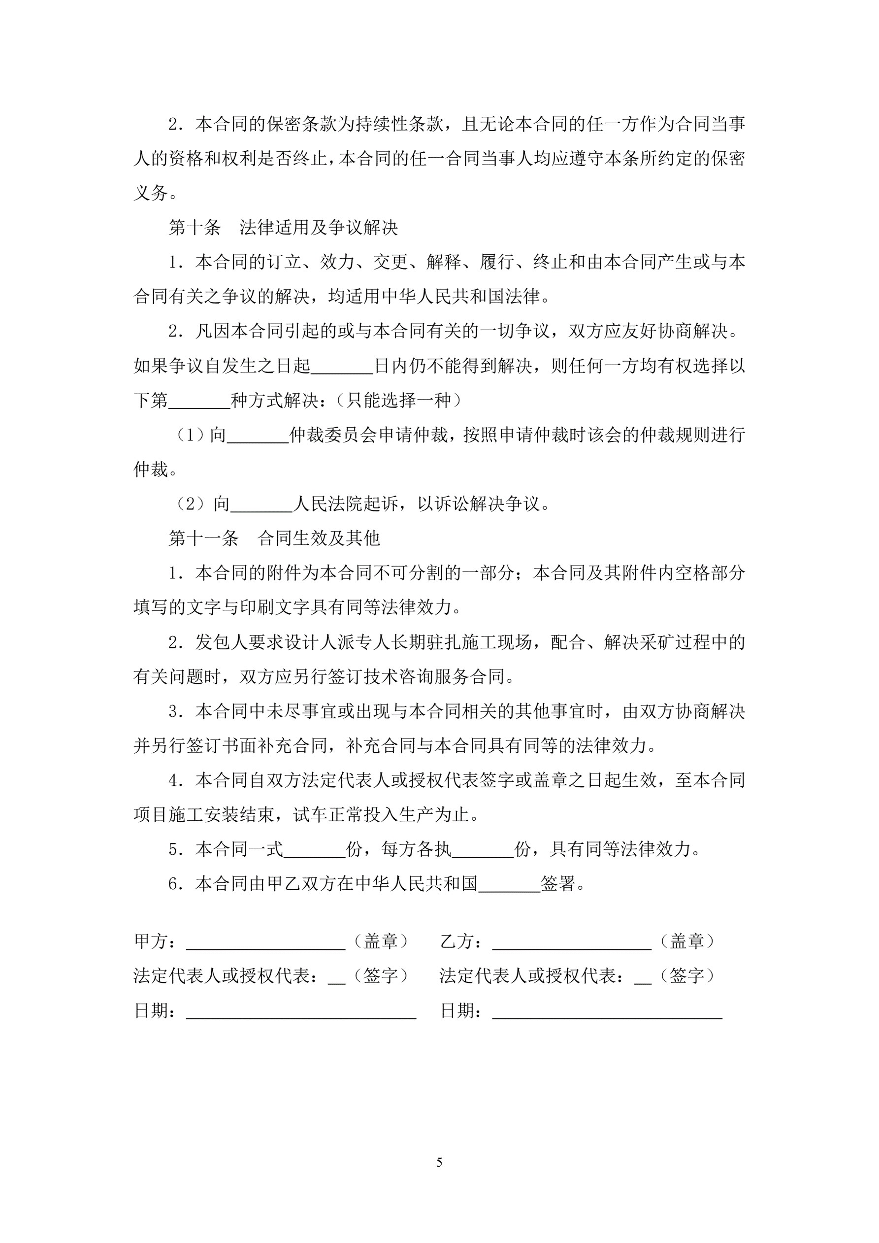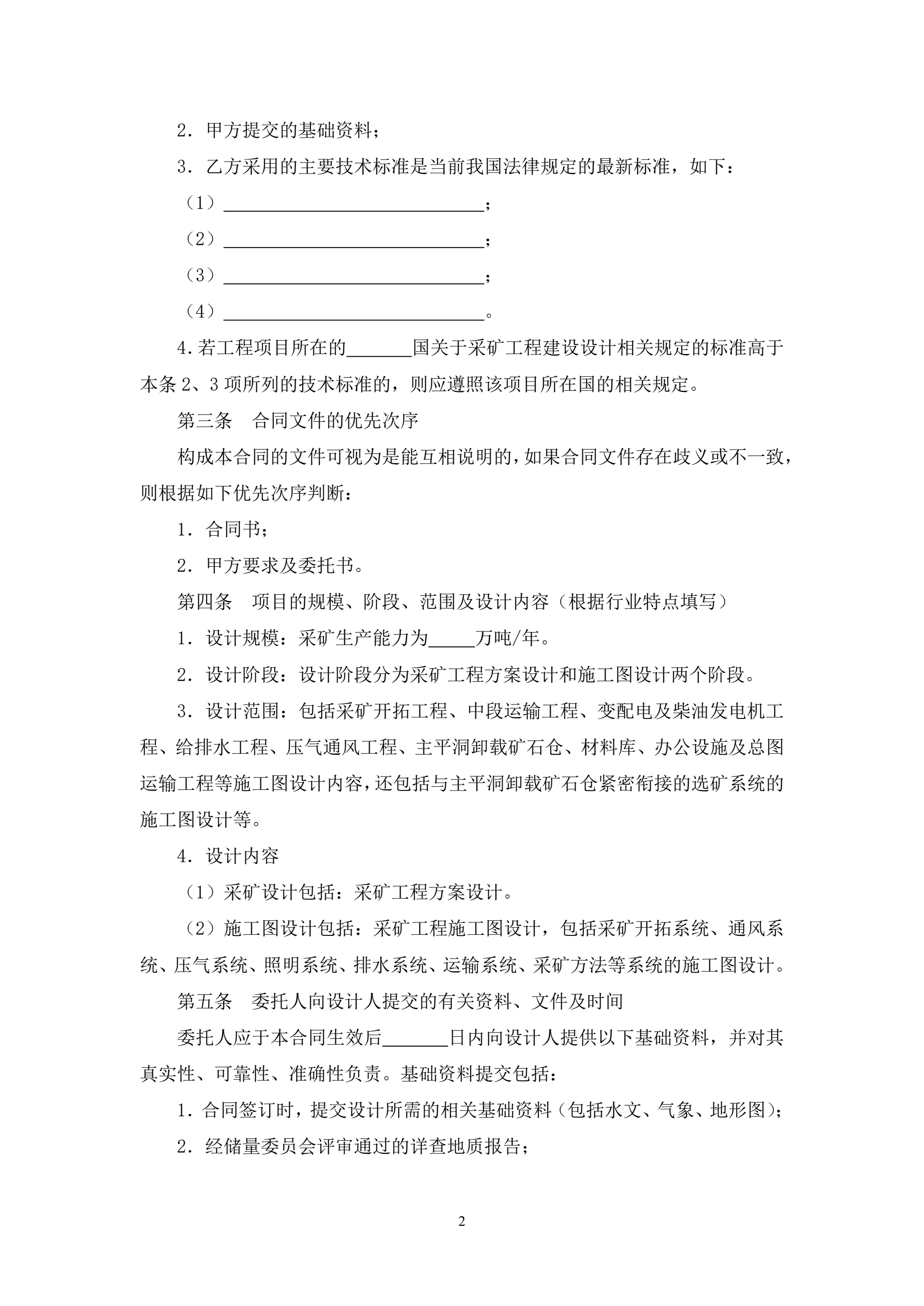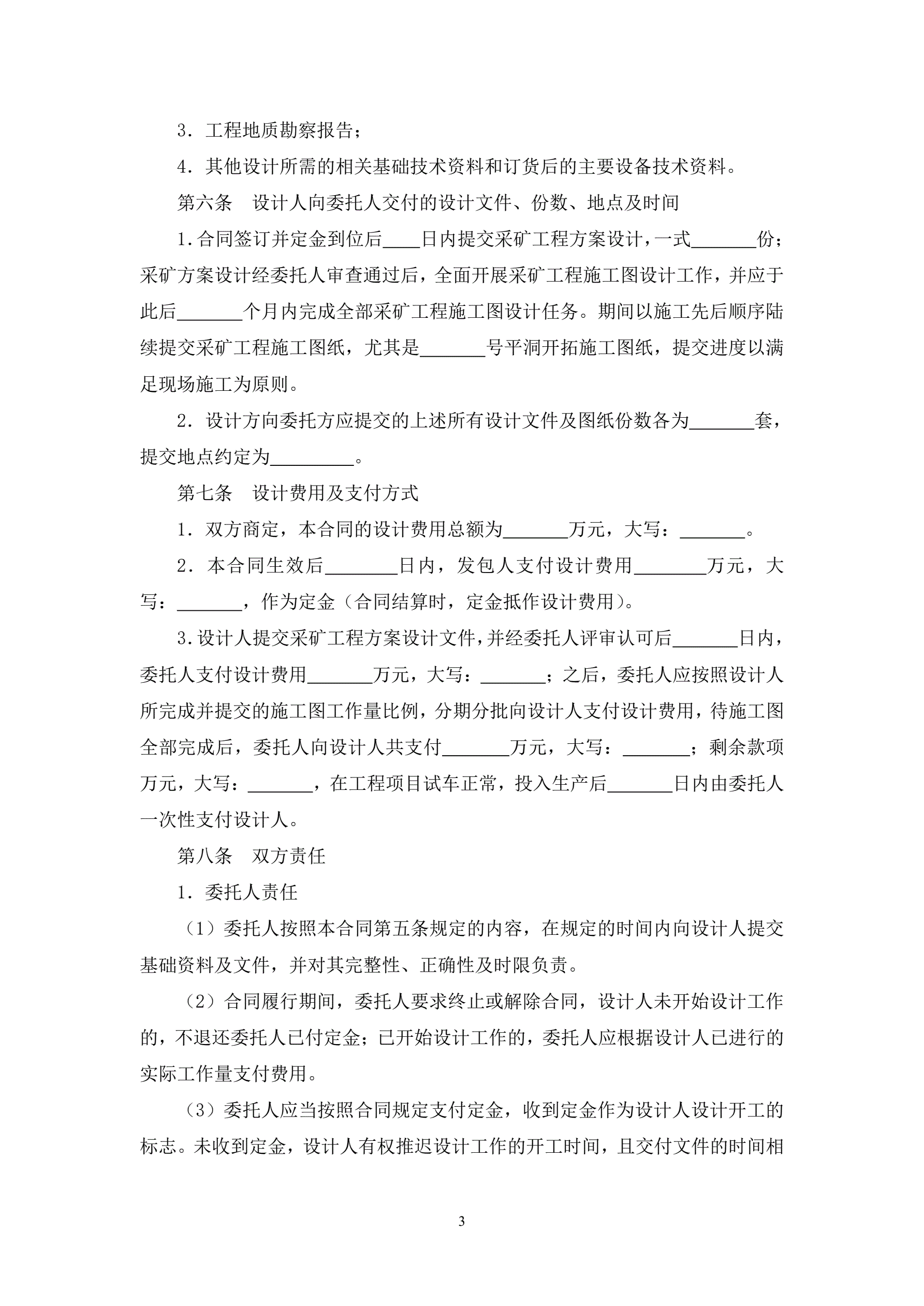 >采矿工程设计合同