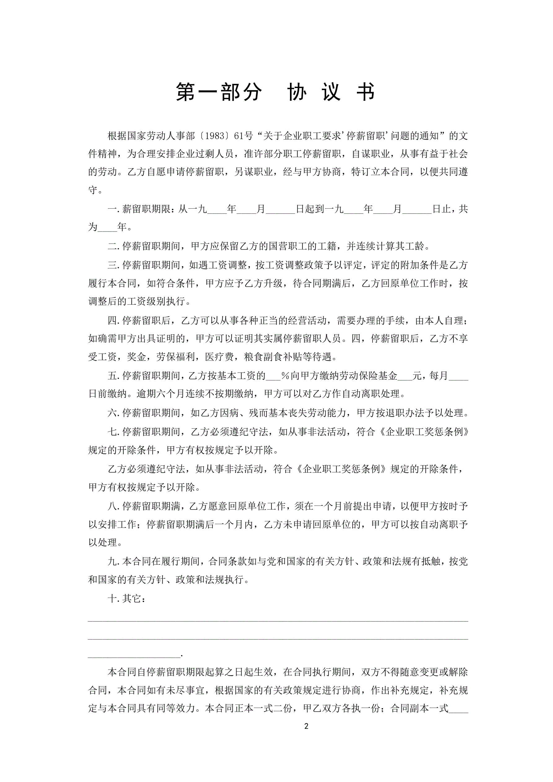 停薪留职合同