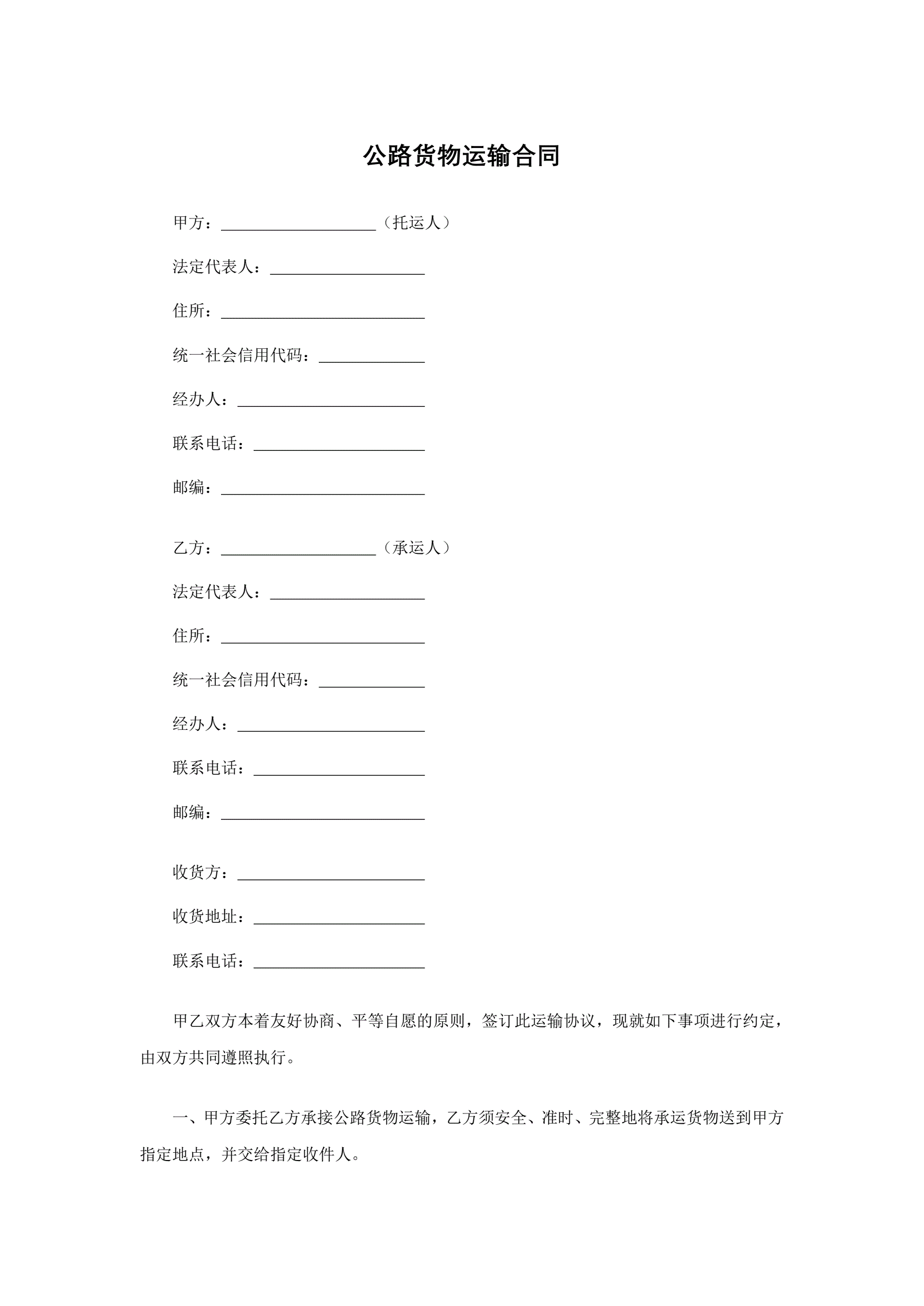 公路货物运输合同