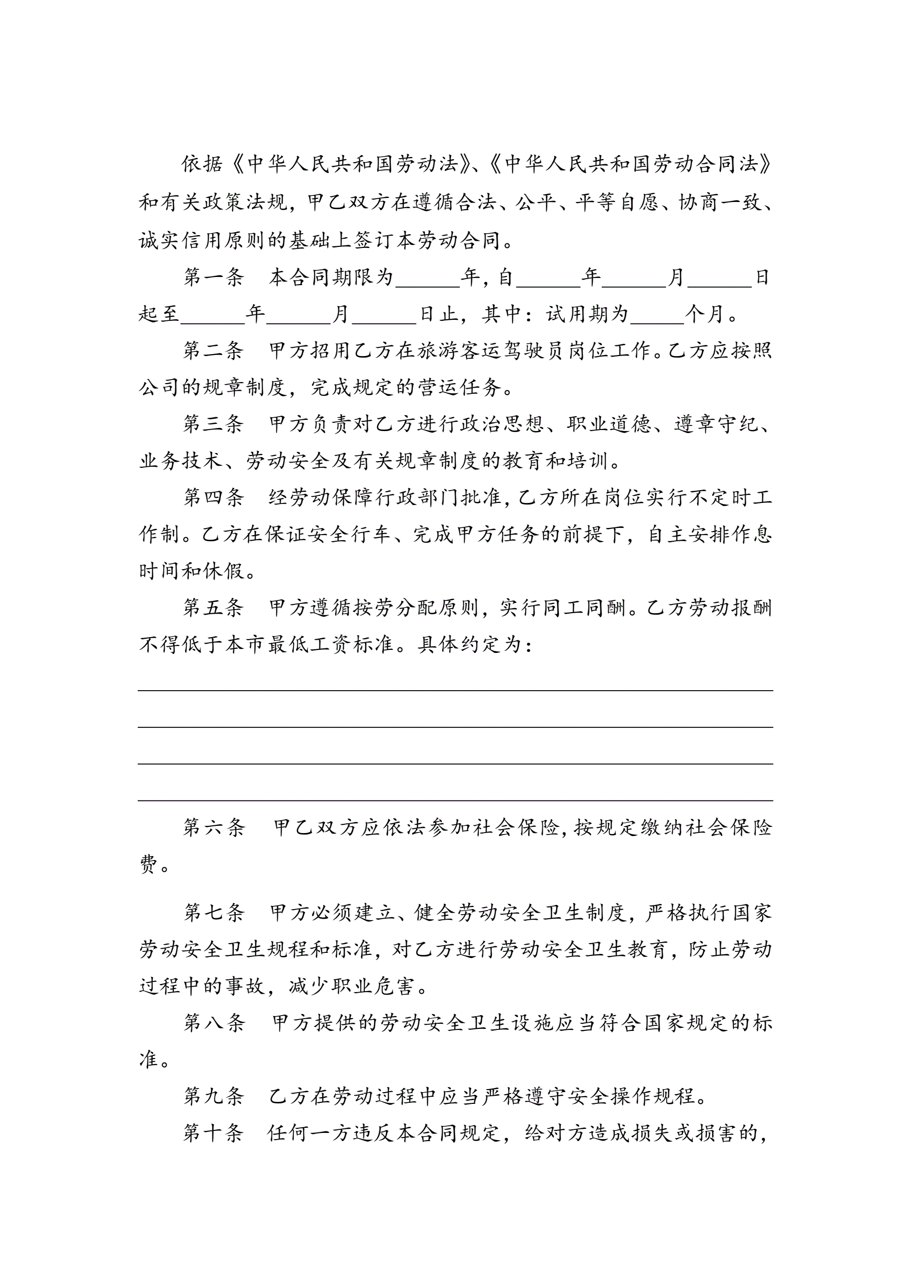 >客车驾驶员劳动合同