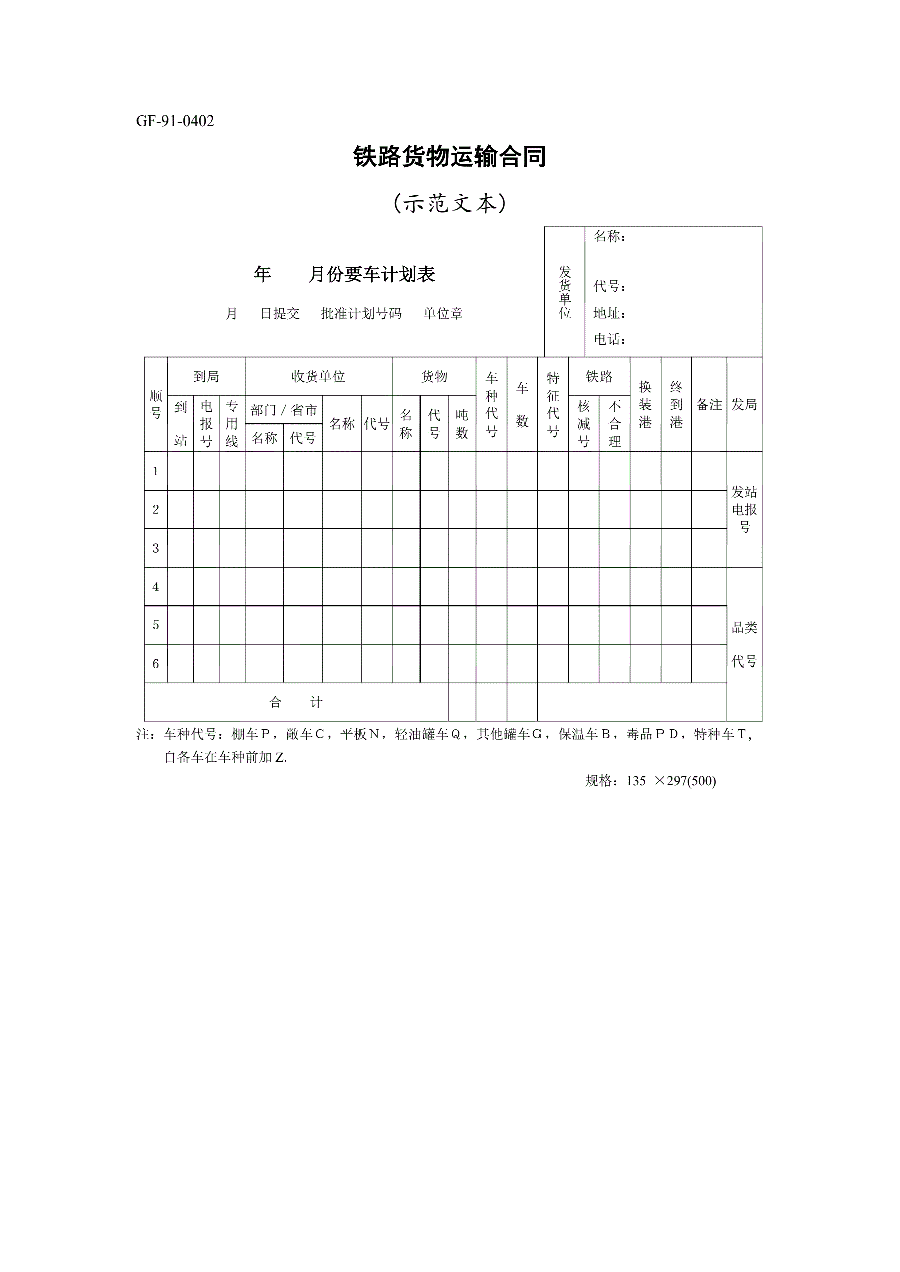 铁路货物运输合同[示范文本]