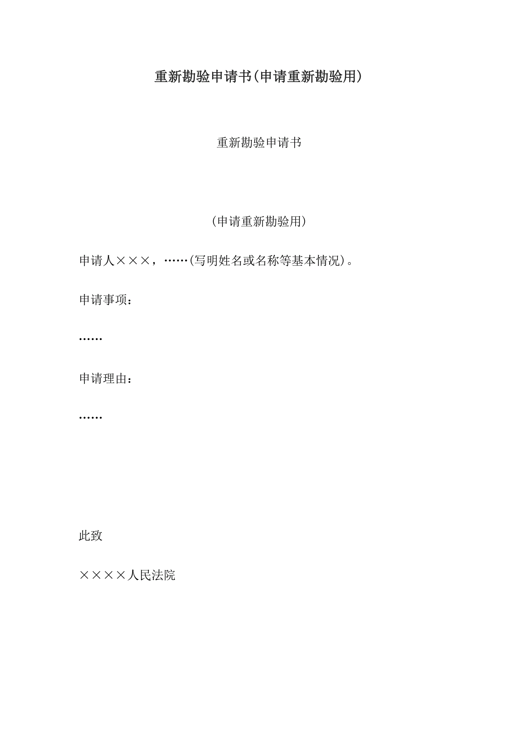 合同名称:重新勘验申请书(申请重新勘验用)