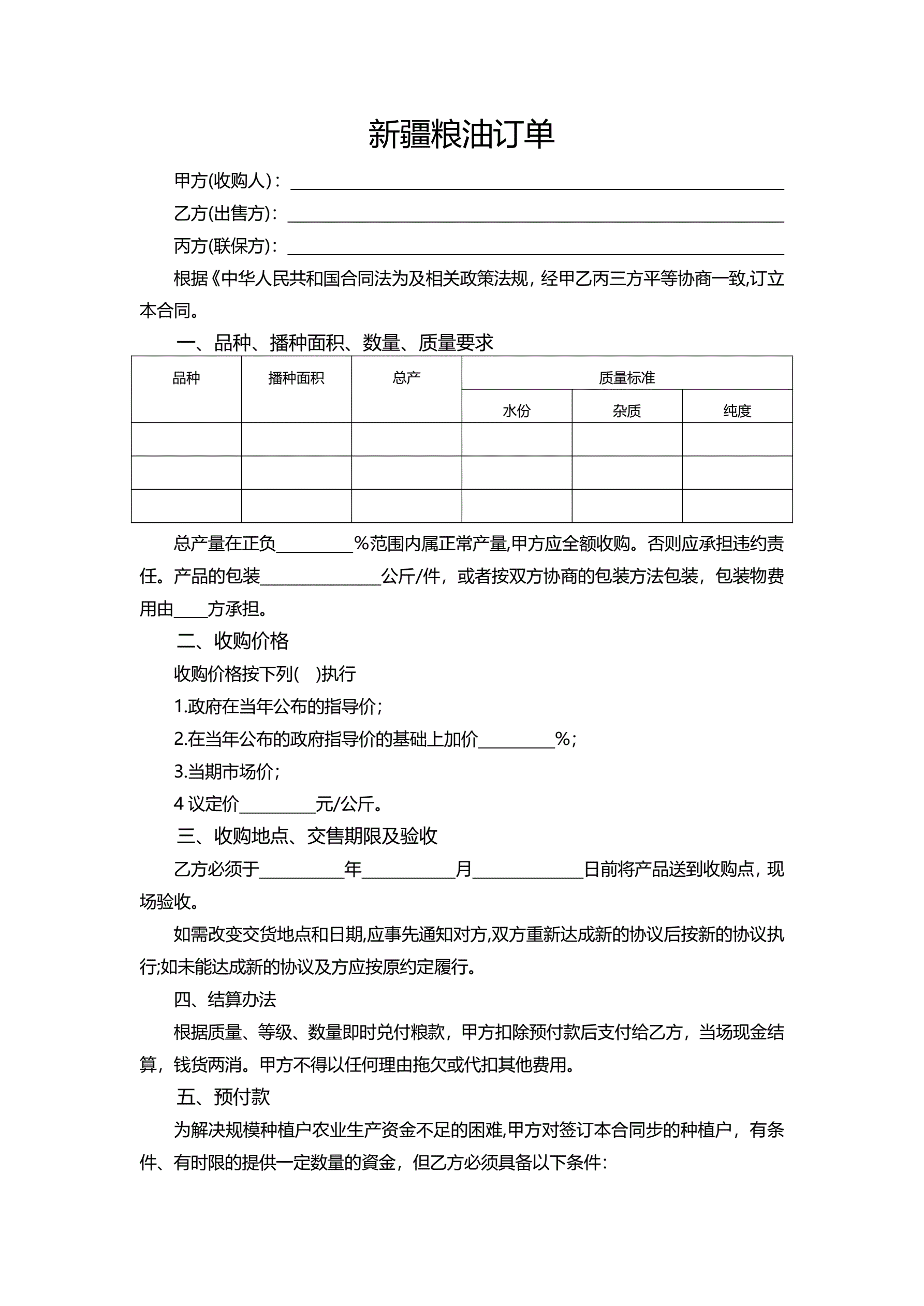 >新疆粮油订单