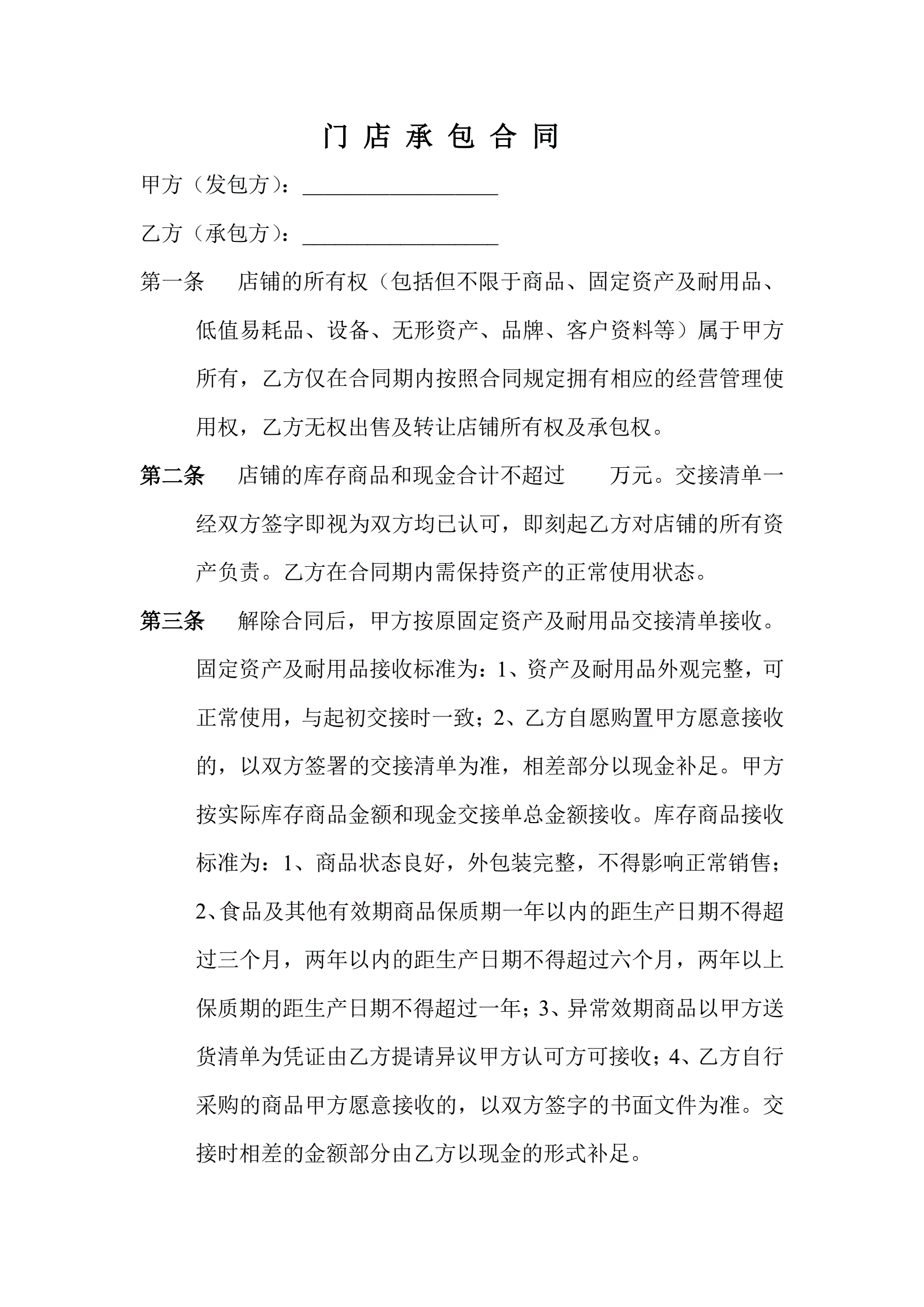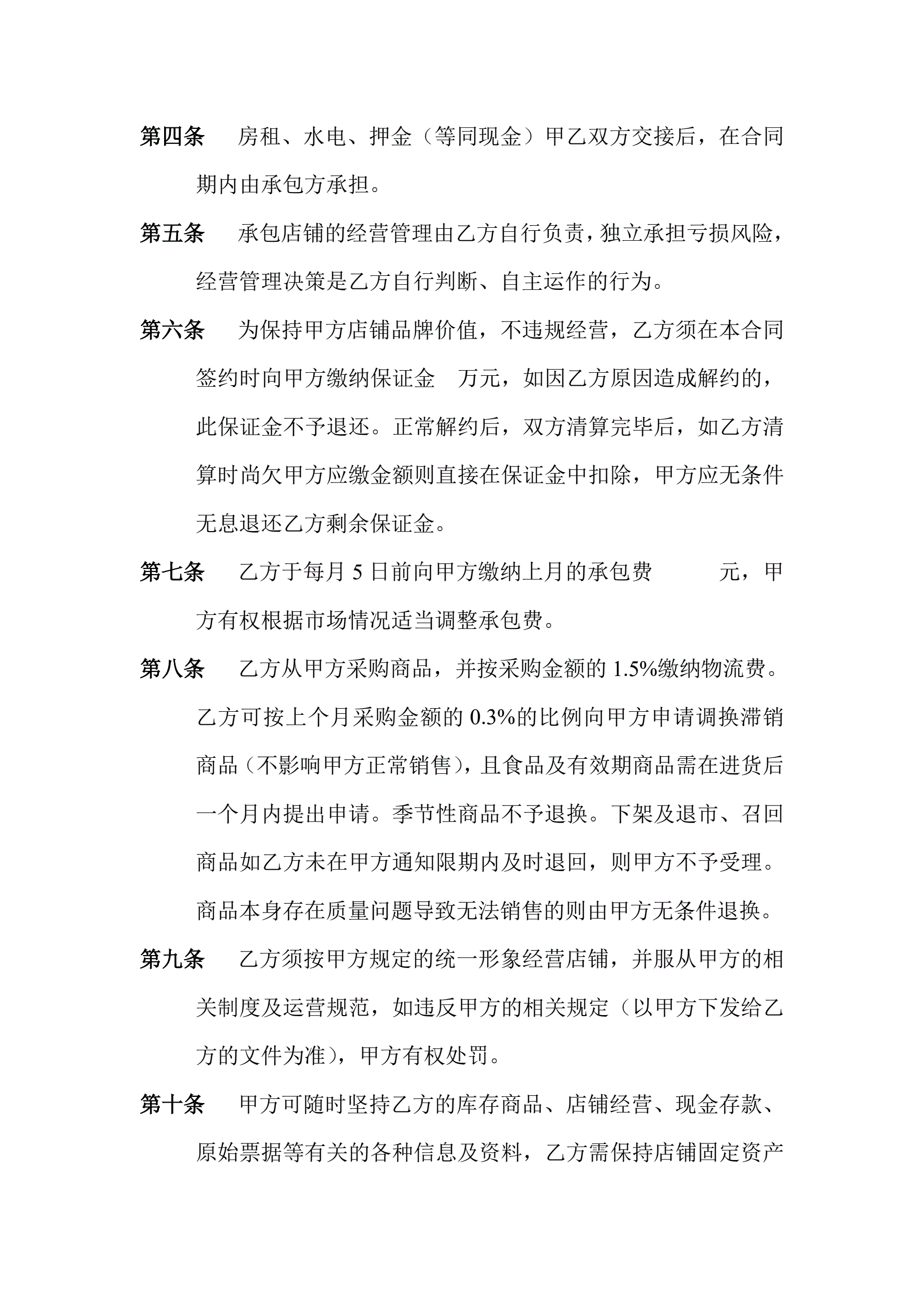 门-店-承-包-合-同