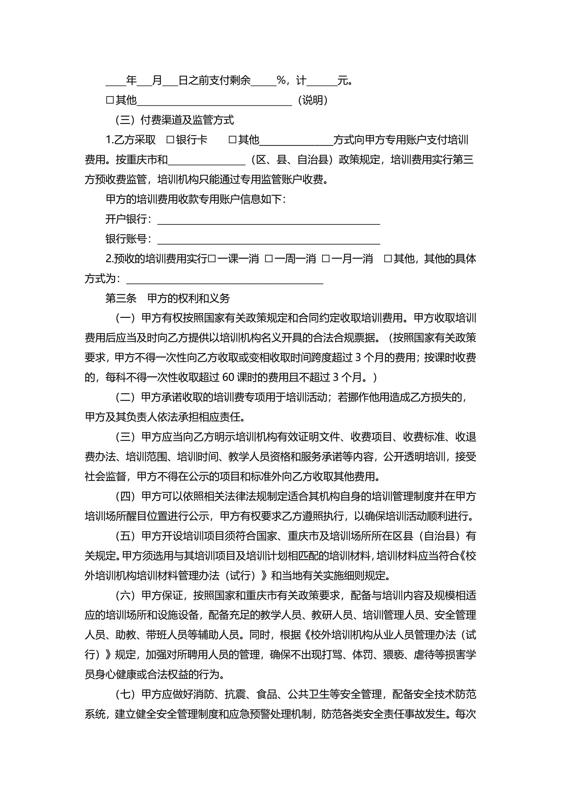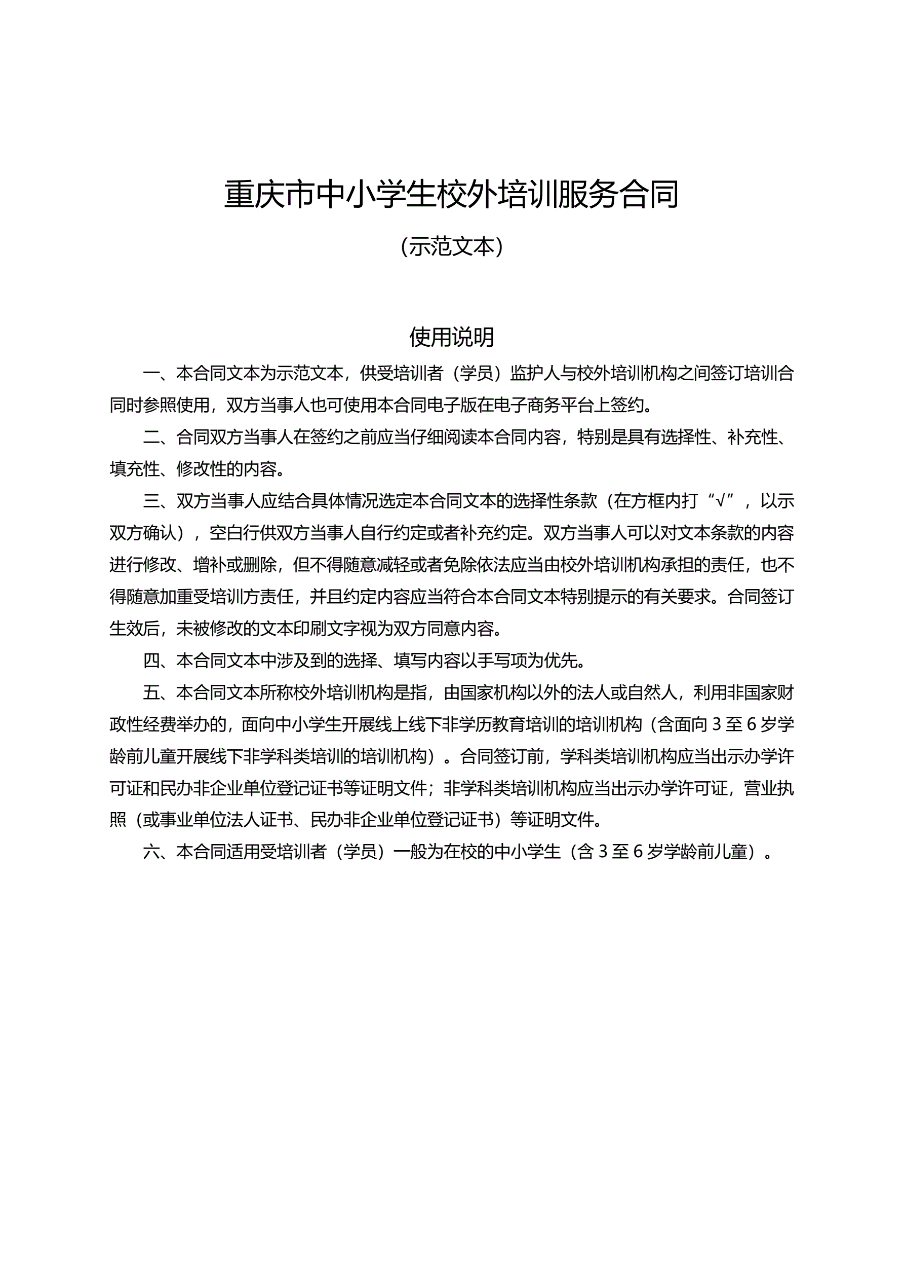 >重庆市中小学生校外培训服务合同示范文本(2021版)