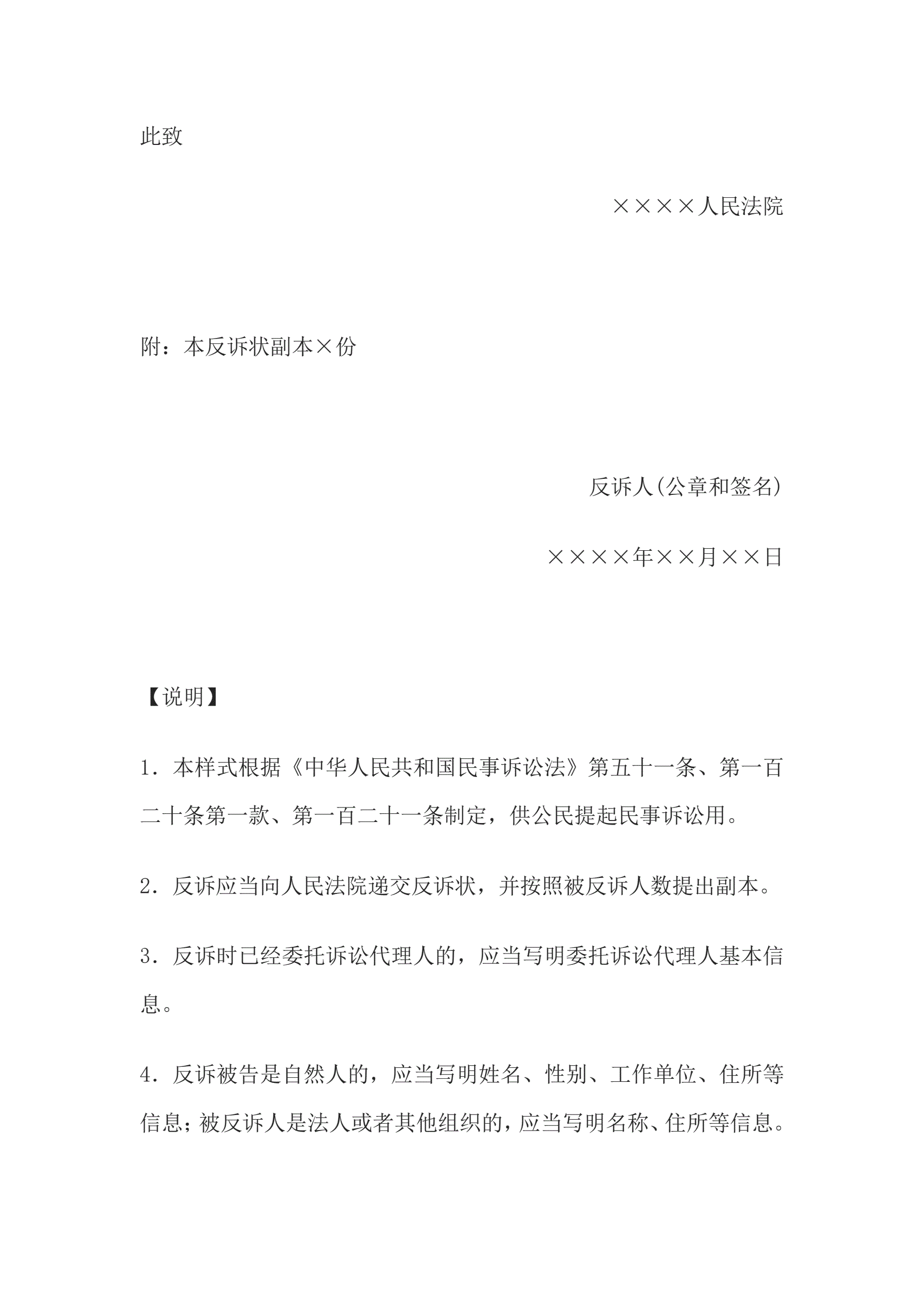 民事反诉状(法人或者其他组织提起民事反诉用)