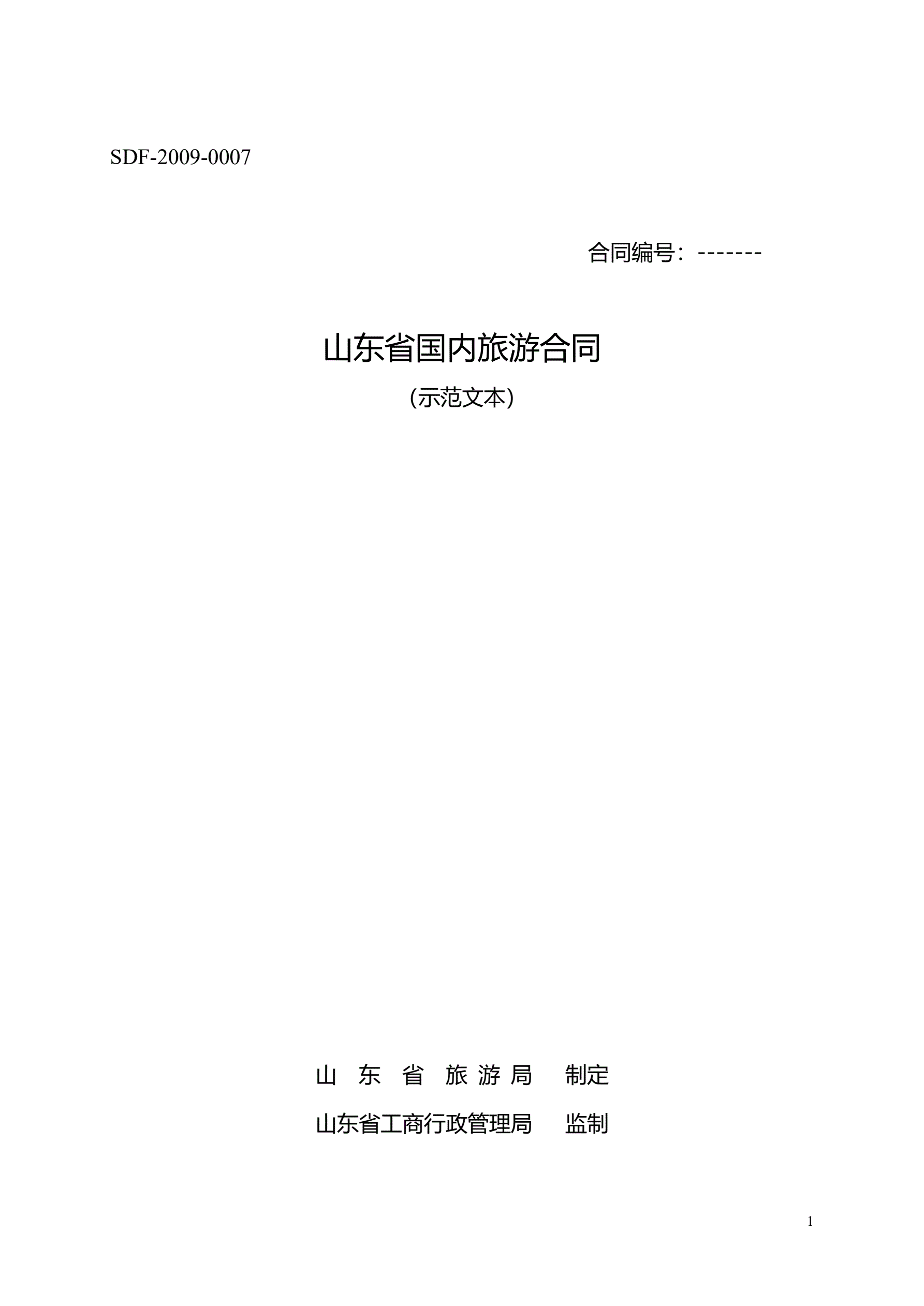 >2009SDF-2009-0007《山东省国内旅游合同示范文本》