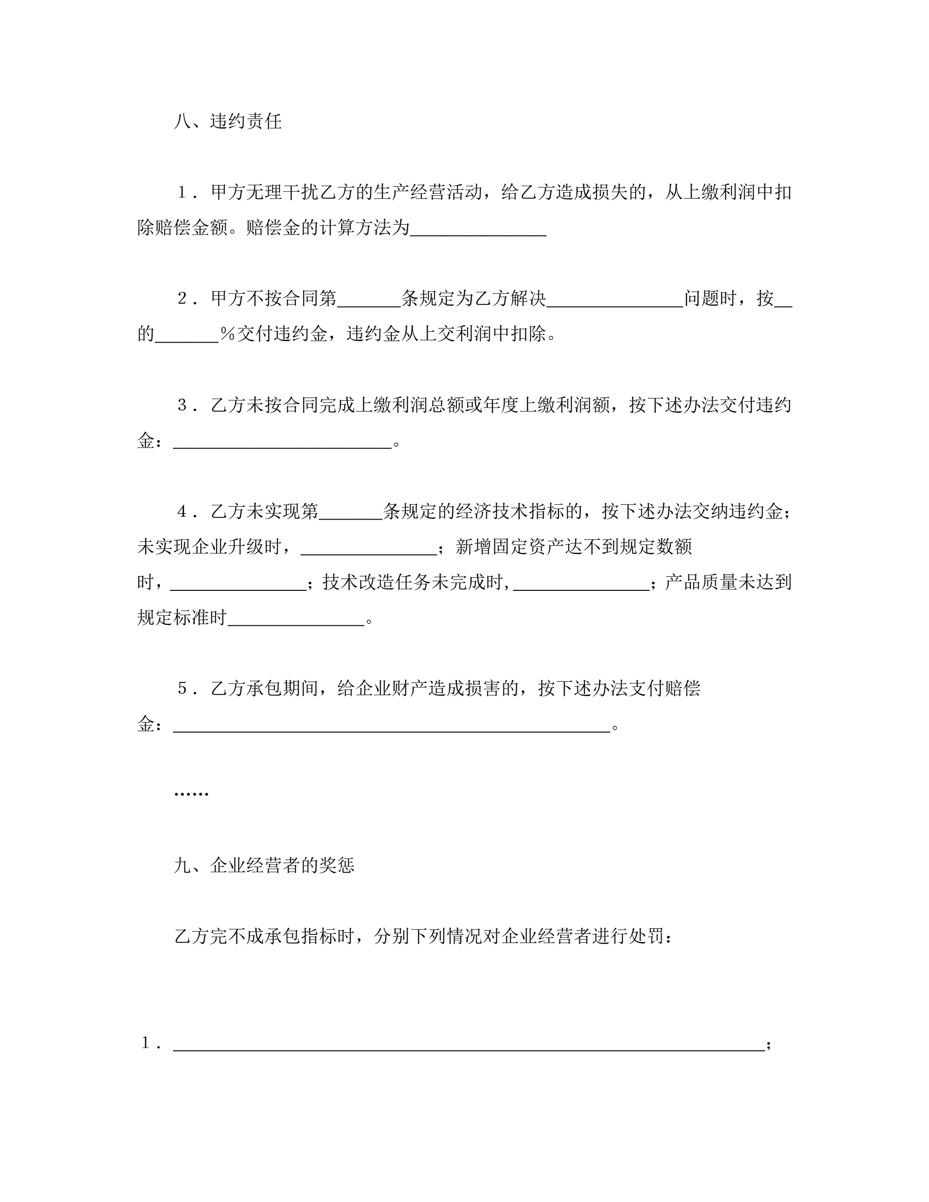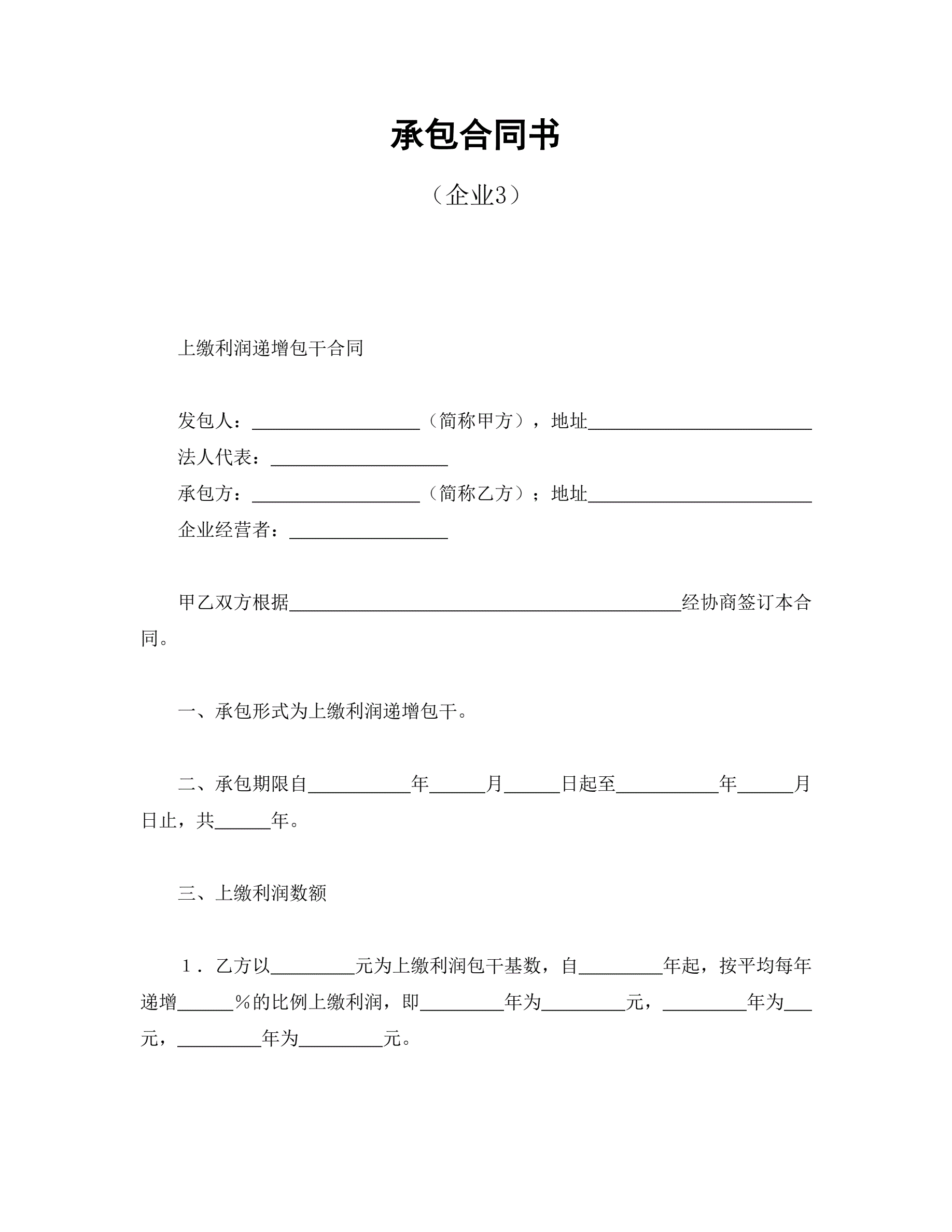 >承包合同书(企业3)
