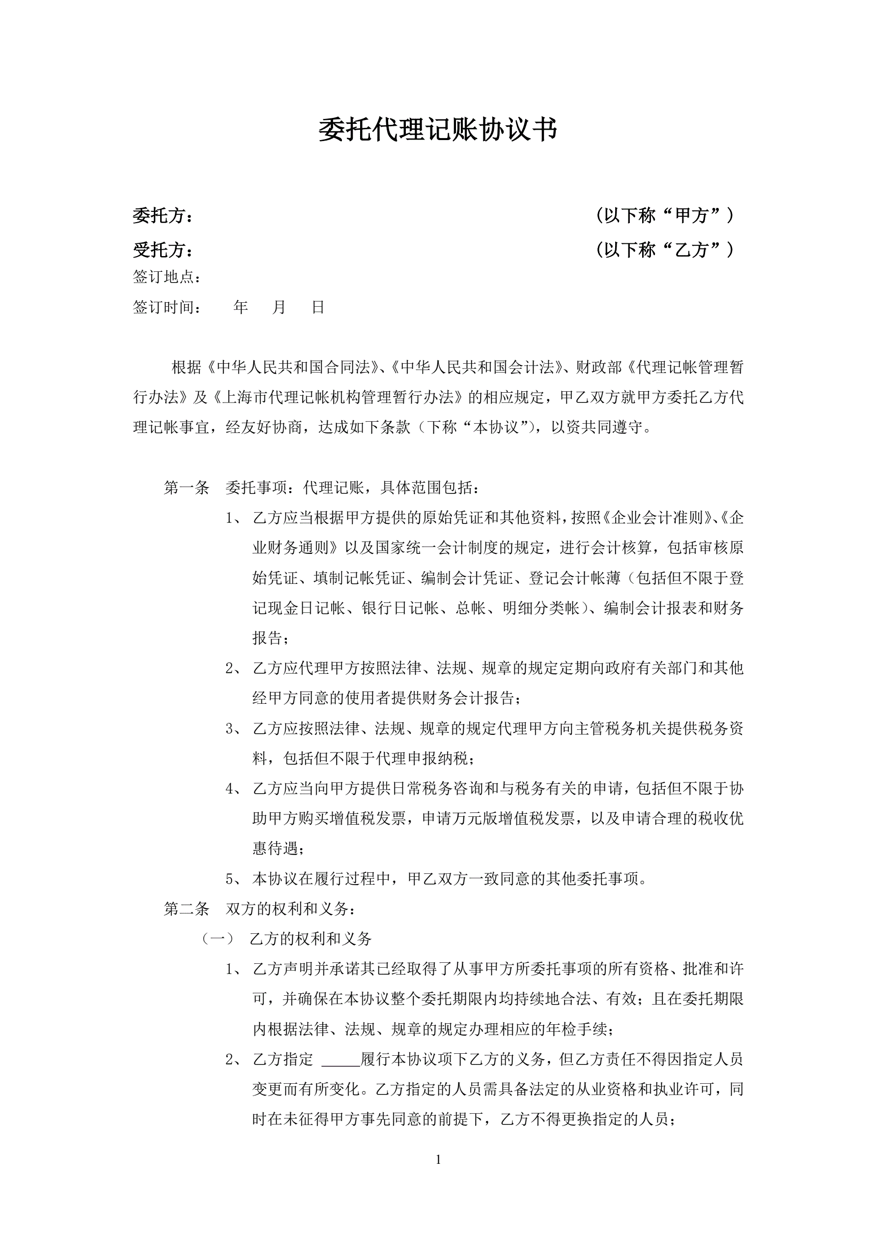 >代理记账协议书