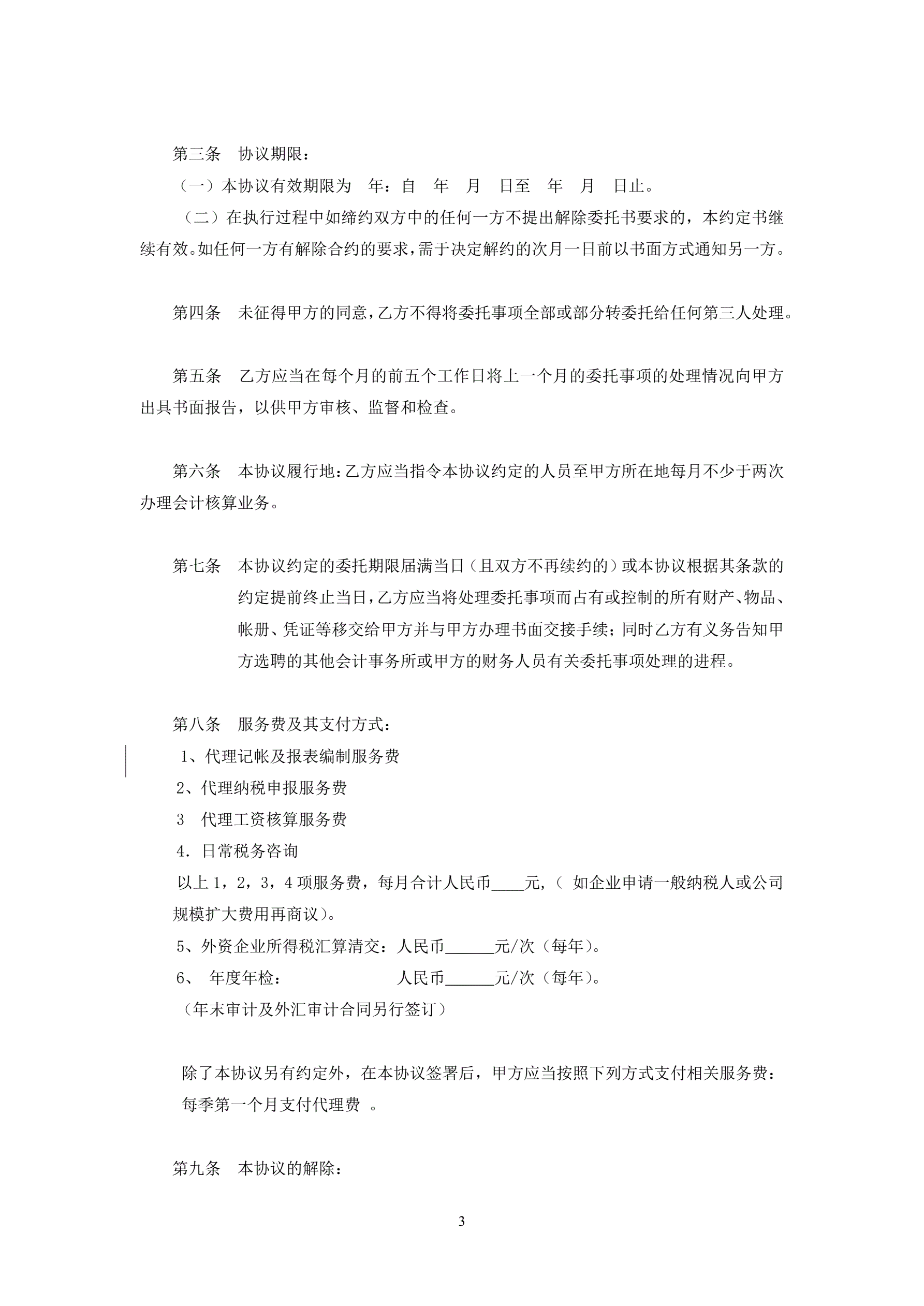 代理记账协议书